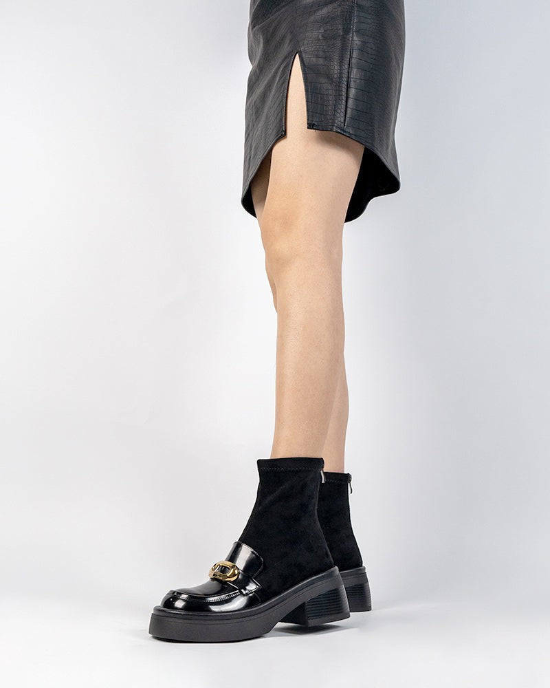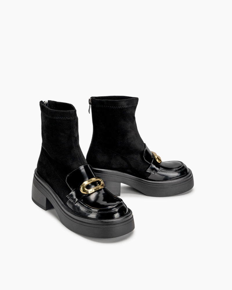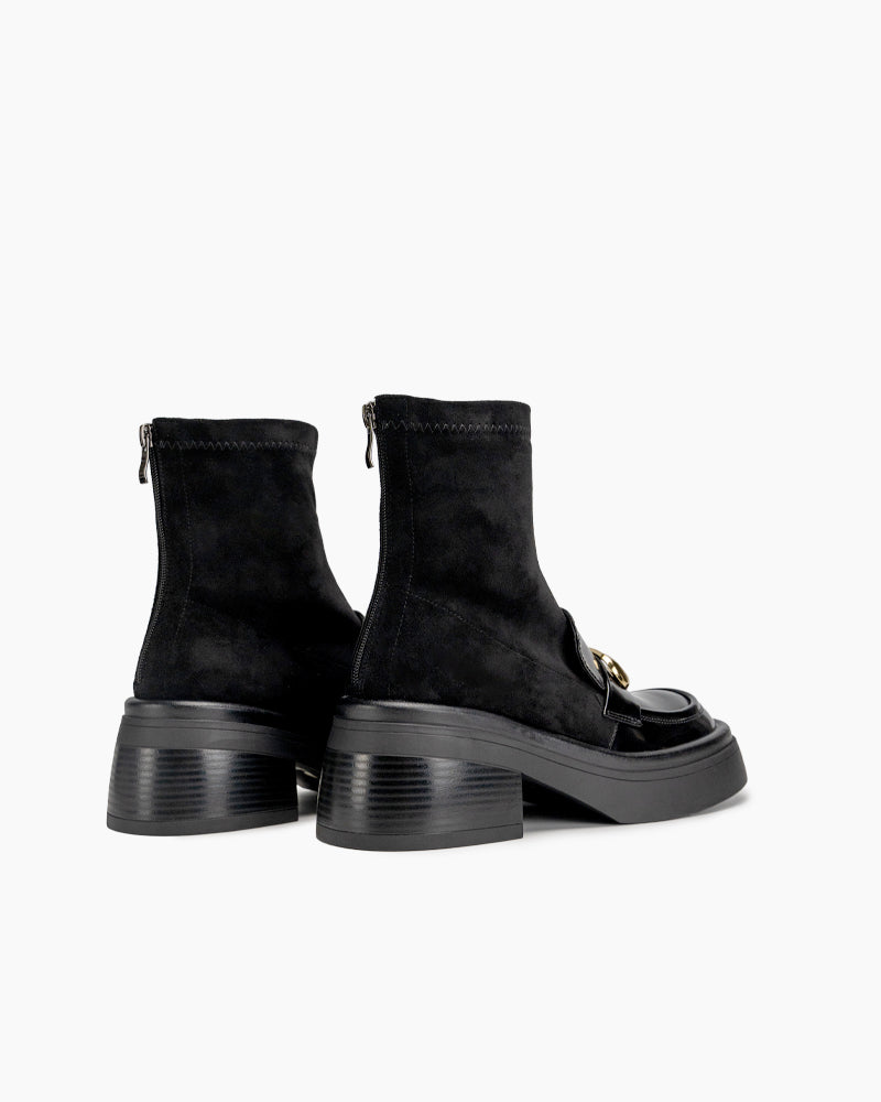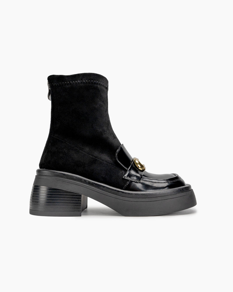 Elastic Chunky Heel Platform Ankle Boots