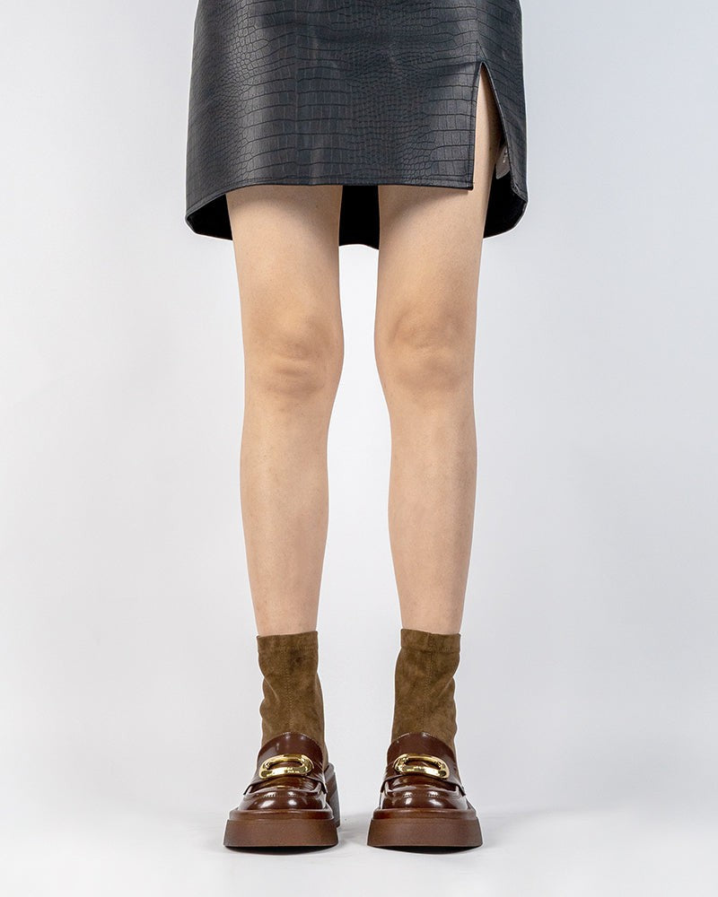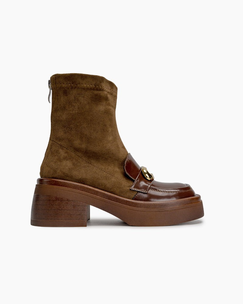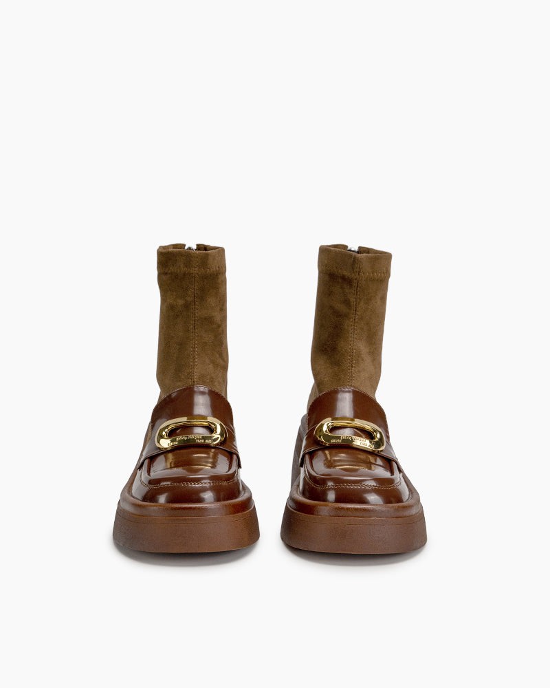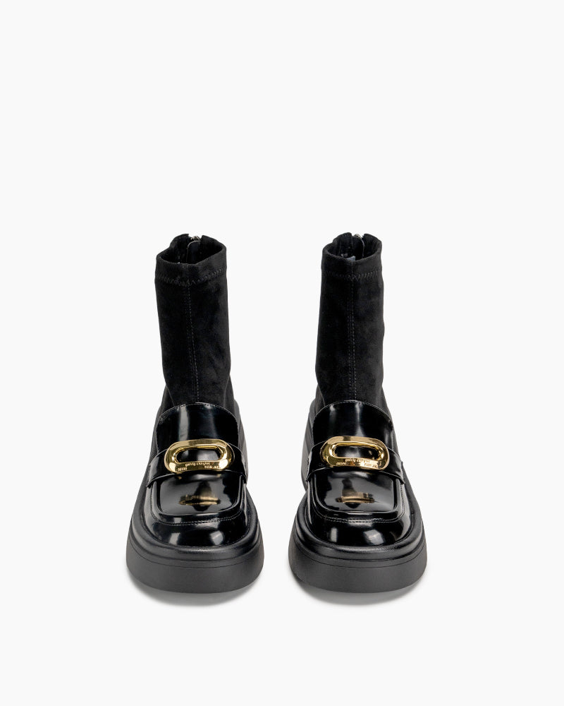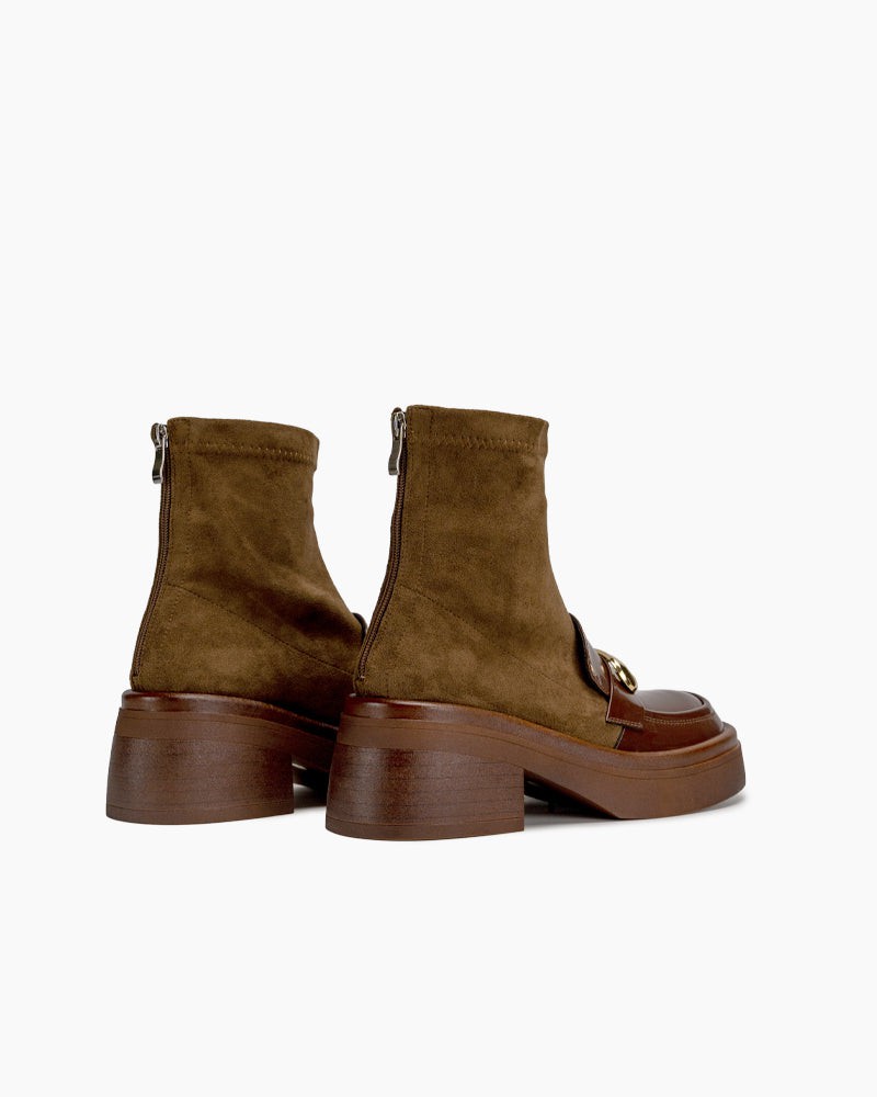 Elastic Chunky Heel Platform Ankle Boots