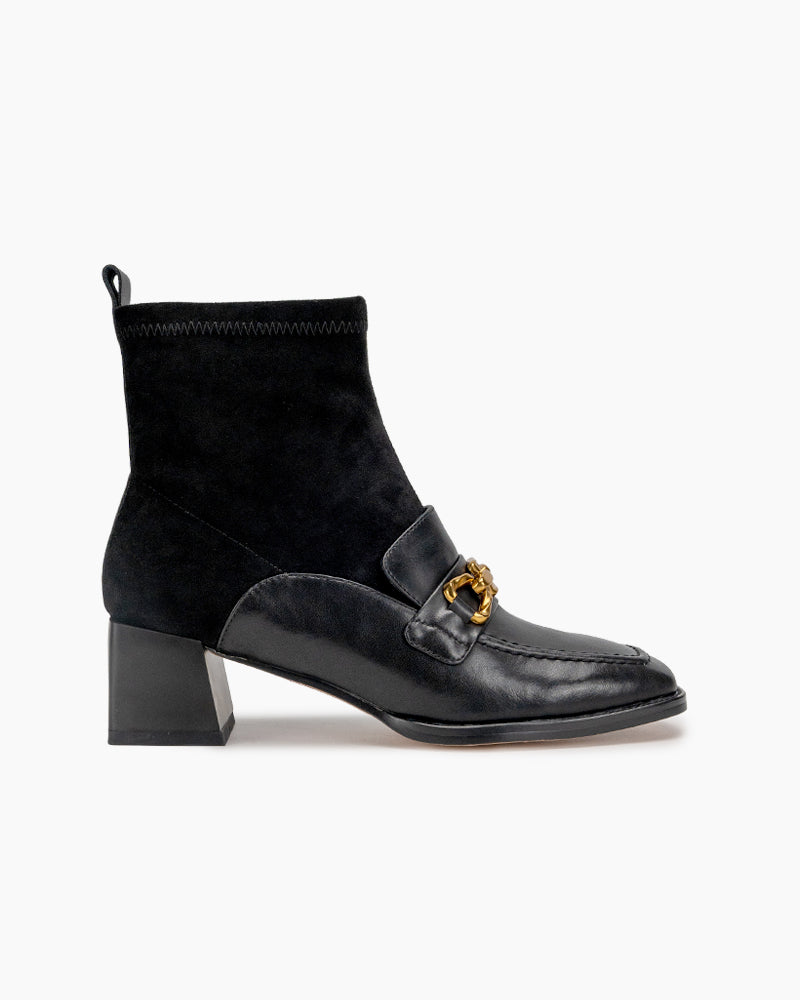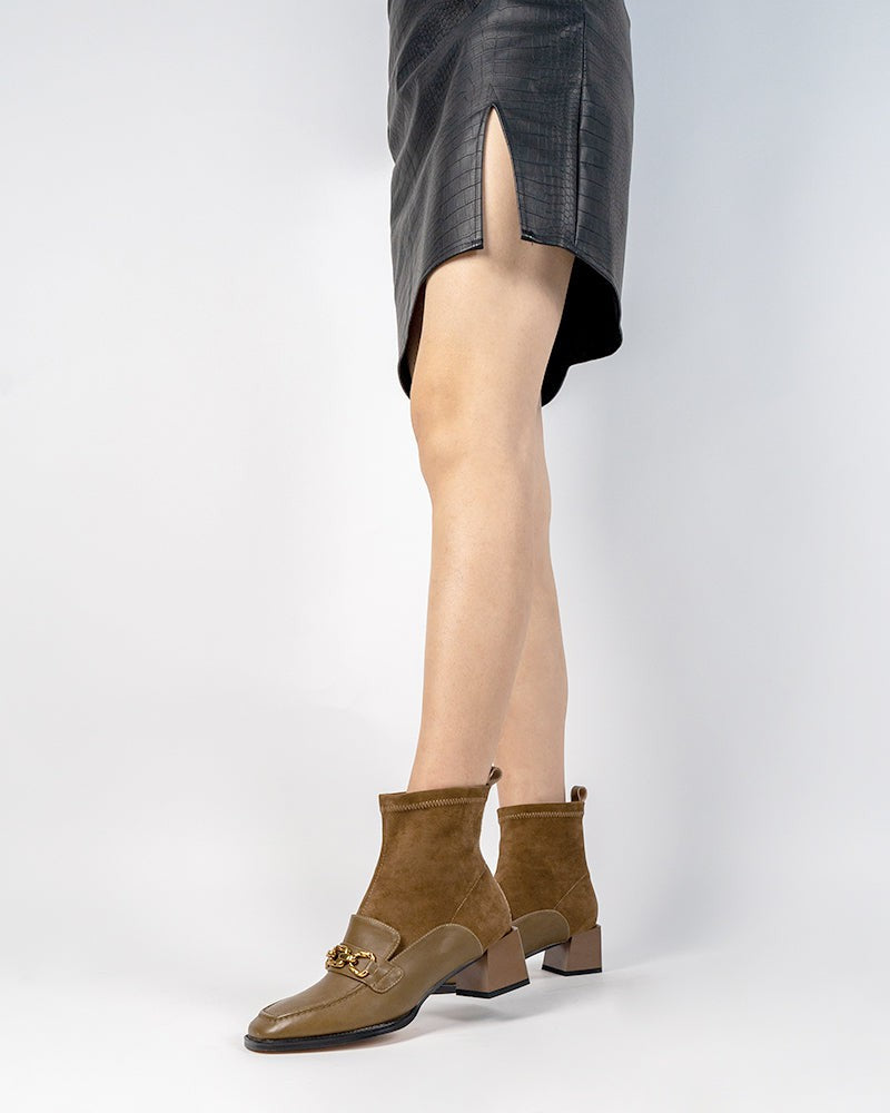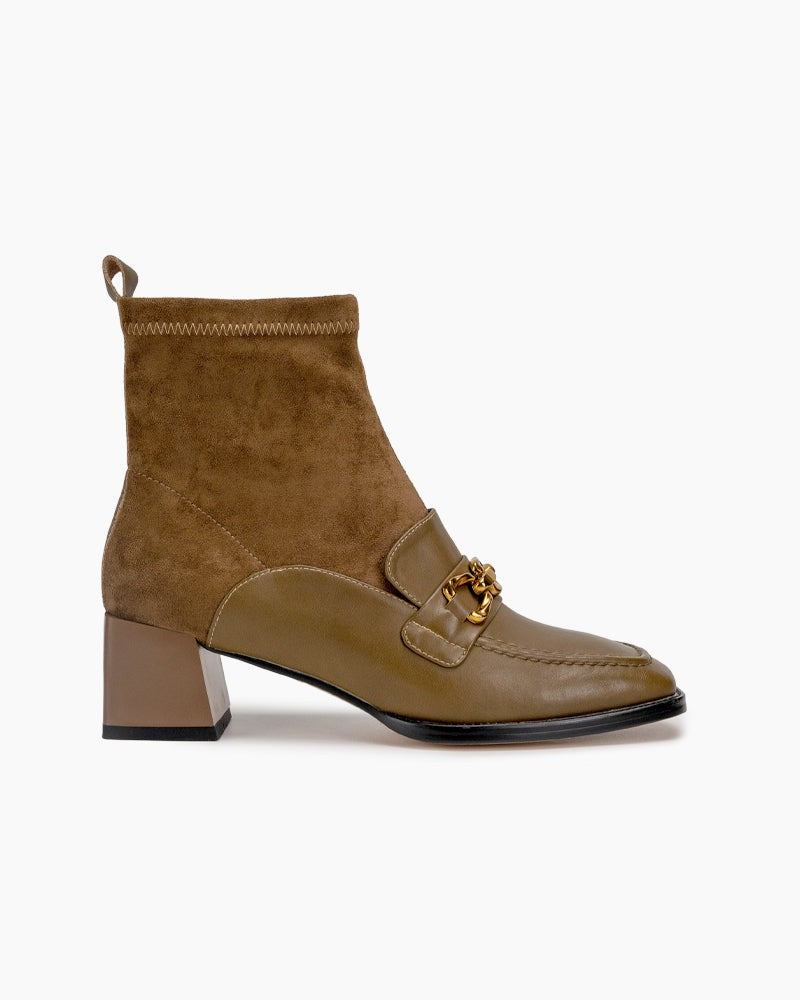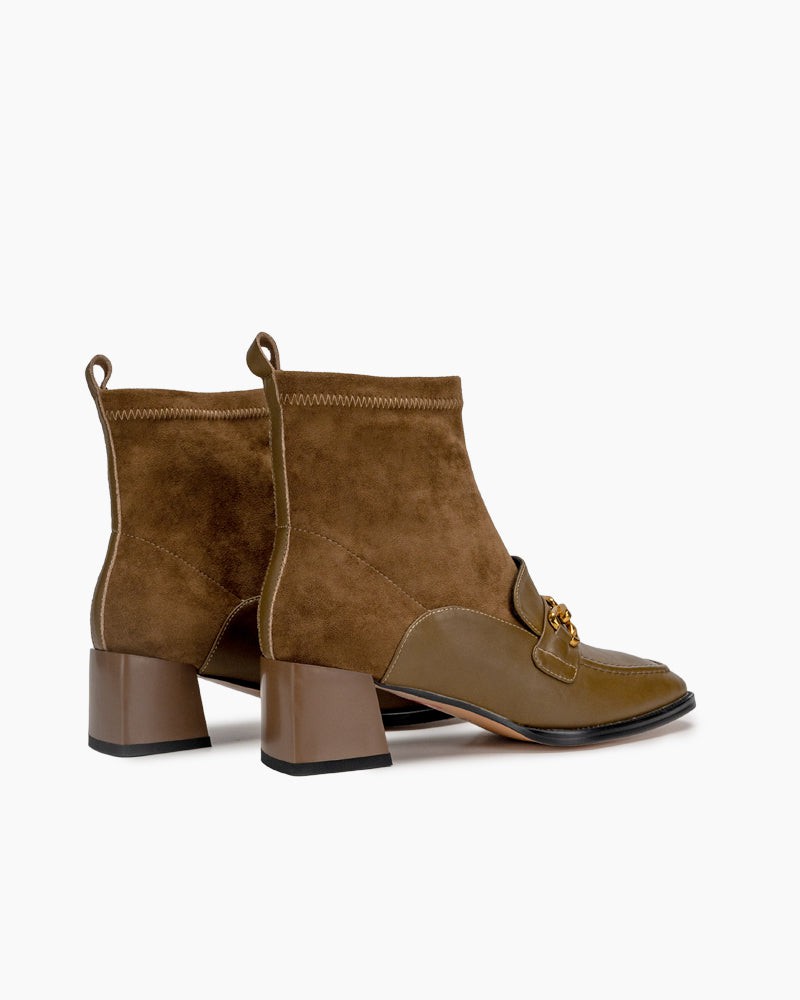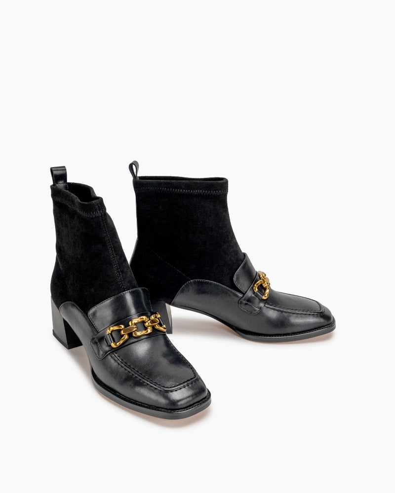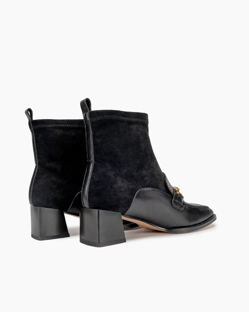 Elastic Slip On Mid Heel Chunky Block Ankle Boots