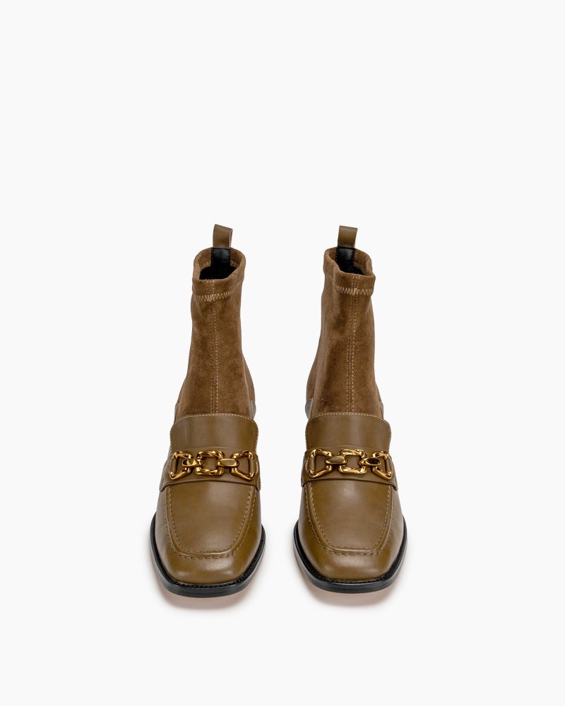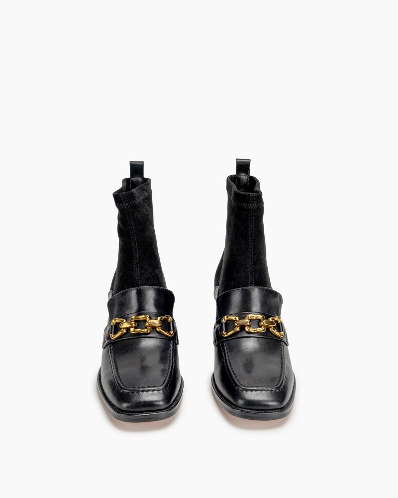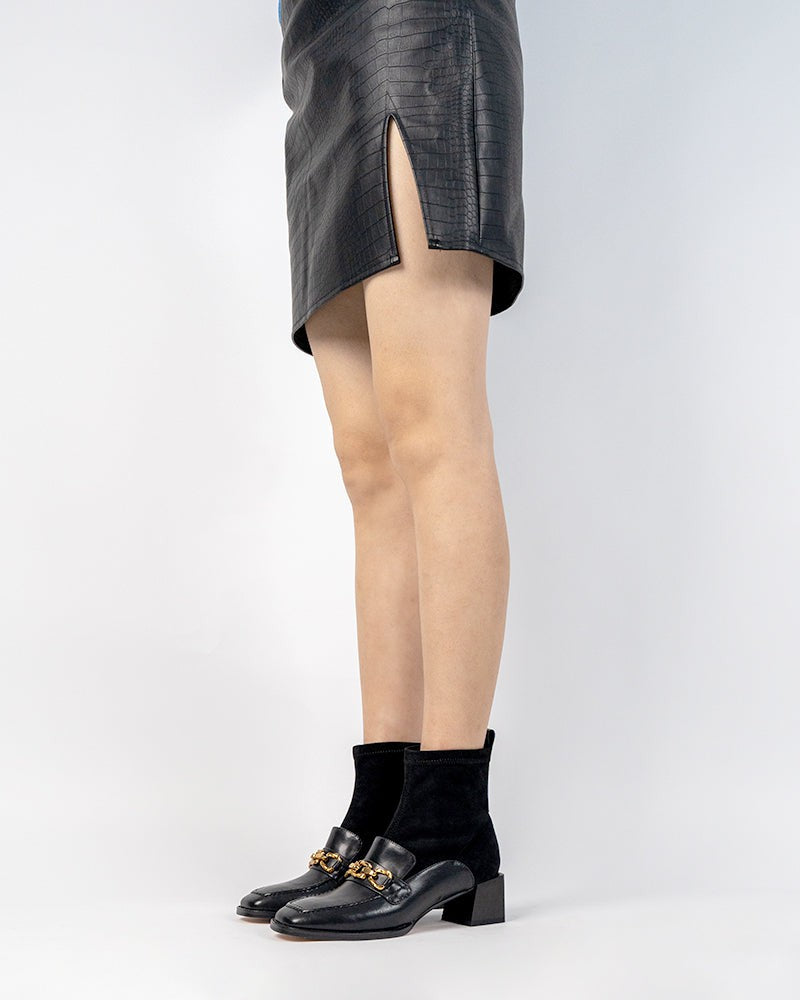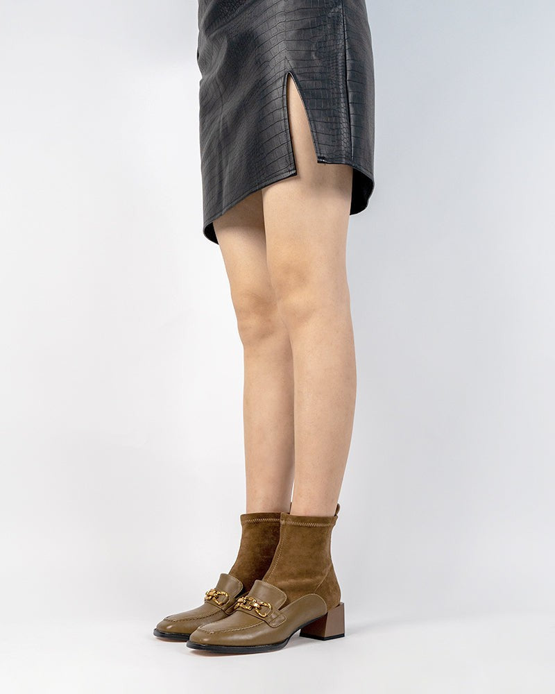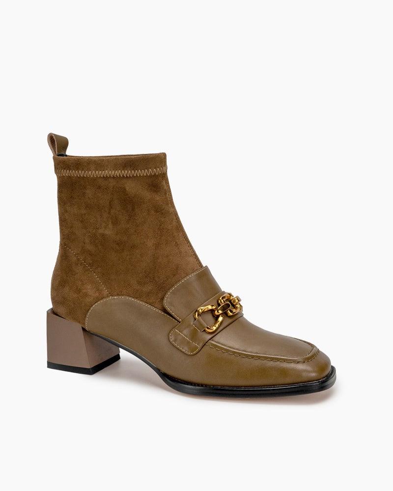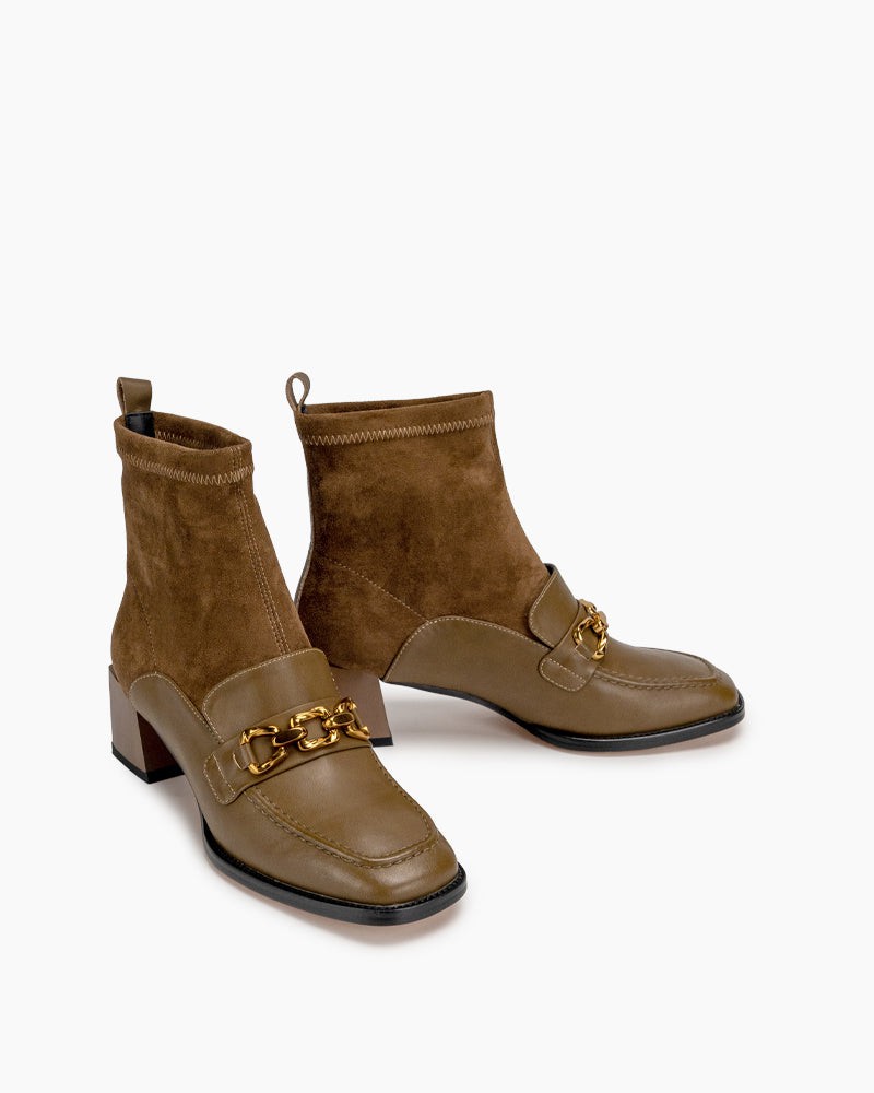 Elastic Slip On Mid Heel Chunky Block Ankle Boots