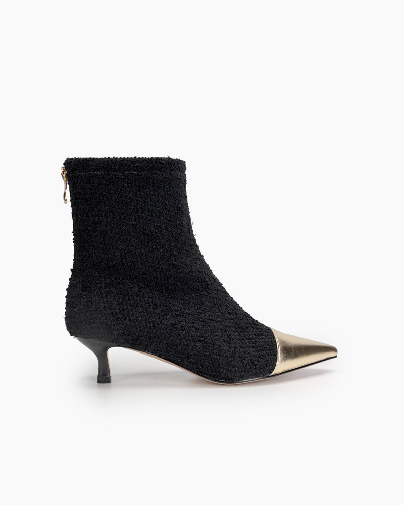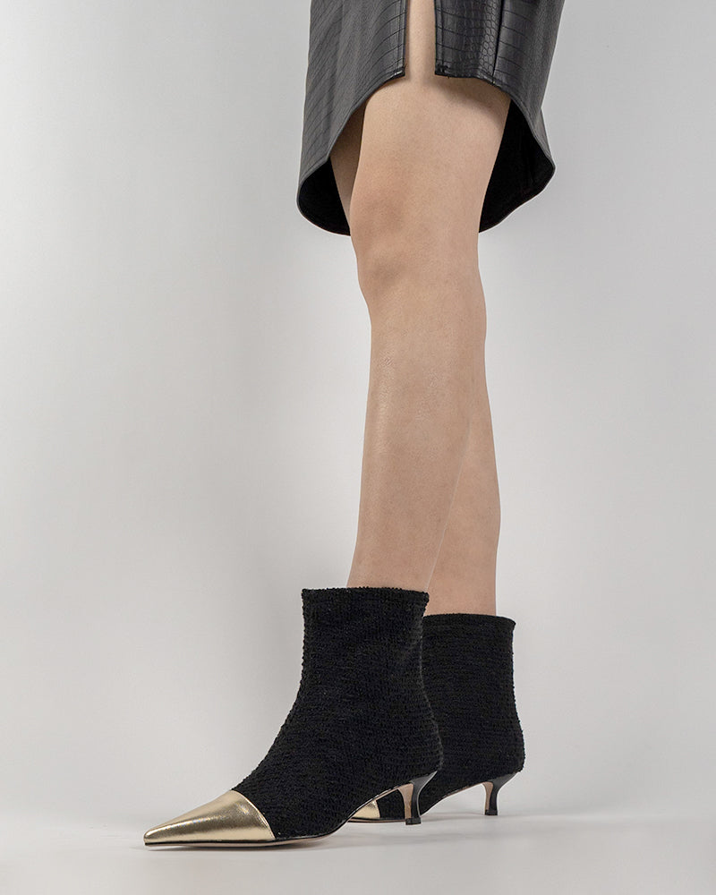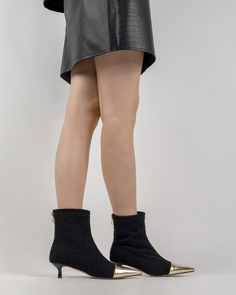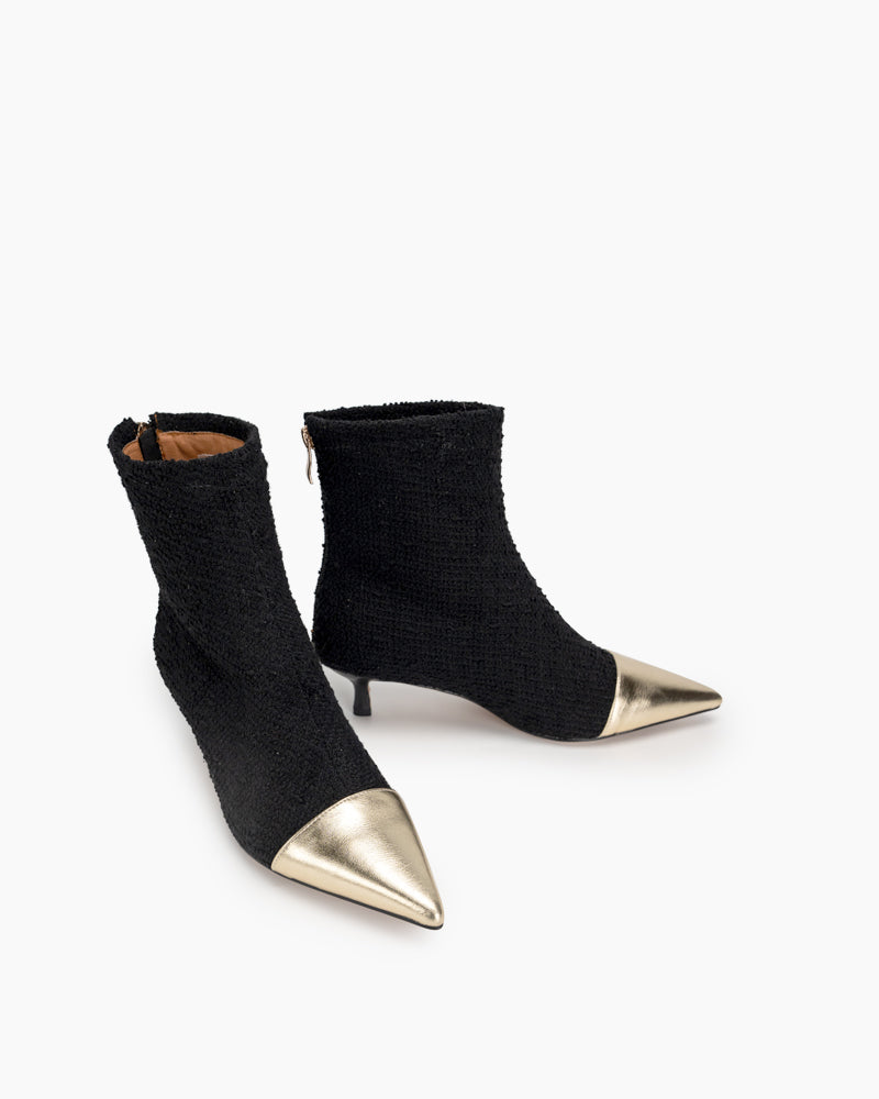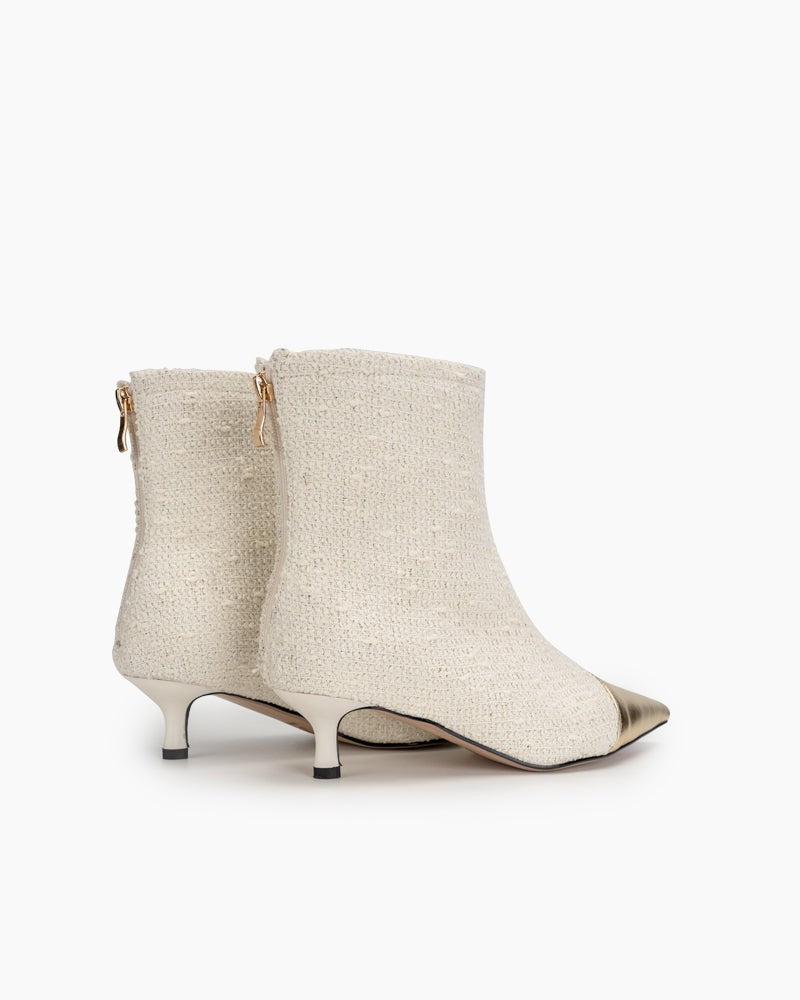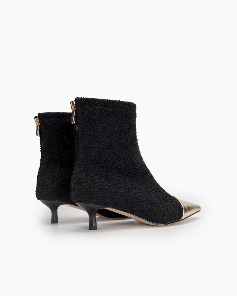 Fabric Weave Stiletto Kitten Heel Pointed Toe Ankle Boots