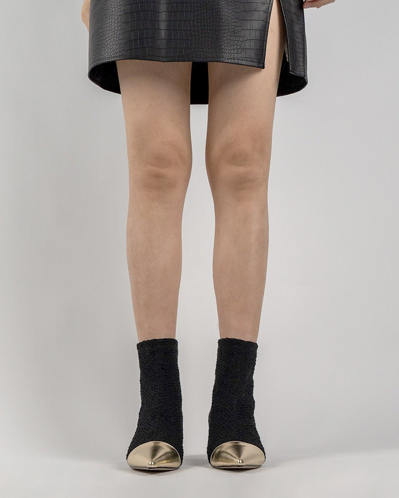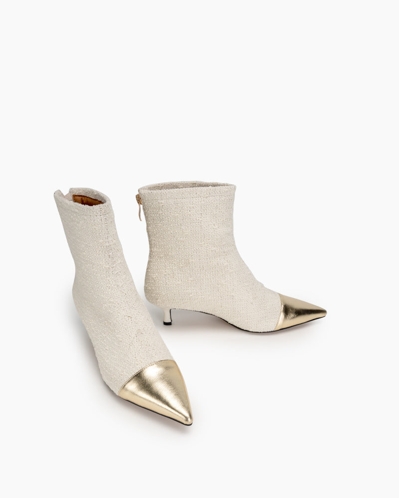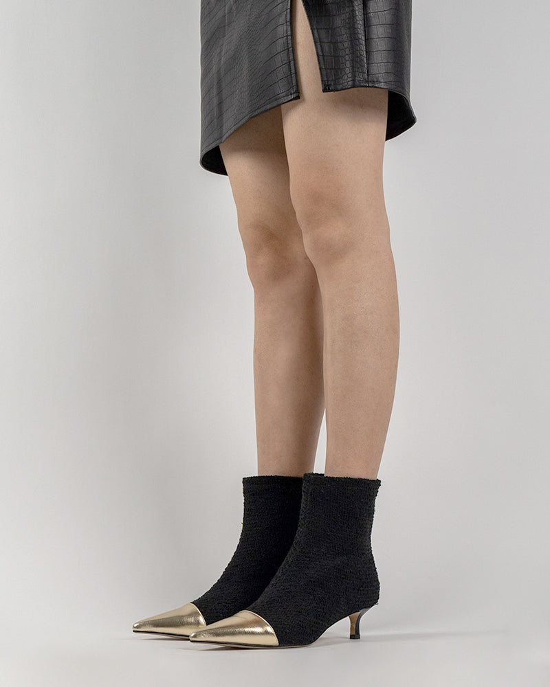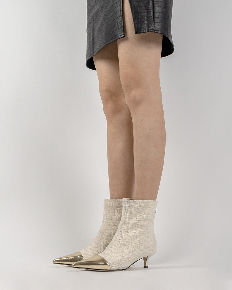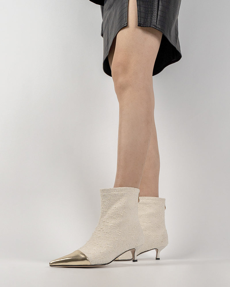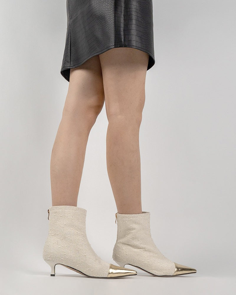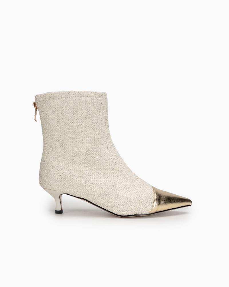 Fabric Weave Stiletto Kitten Heel Pointed Toe Ankle Boots