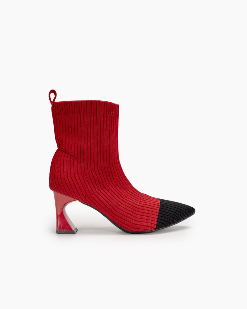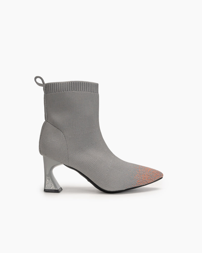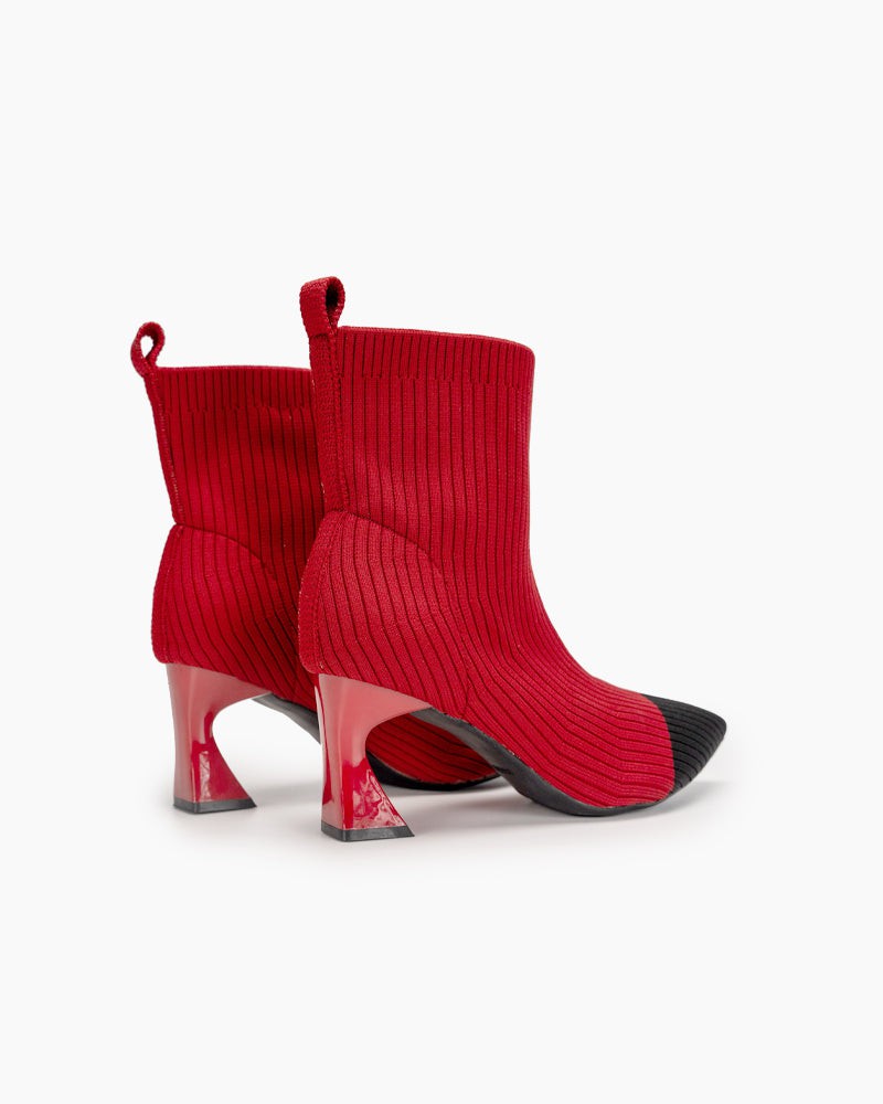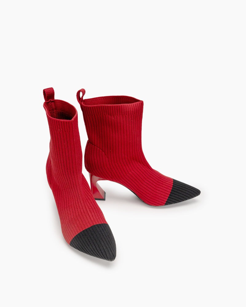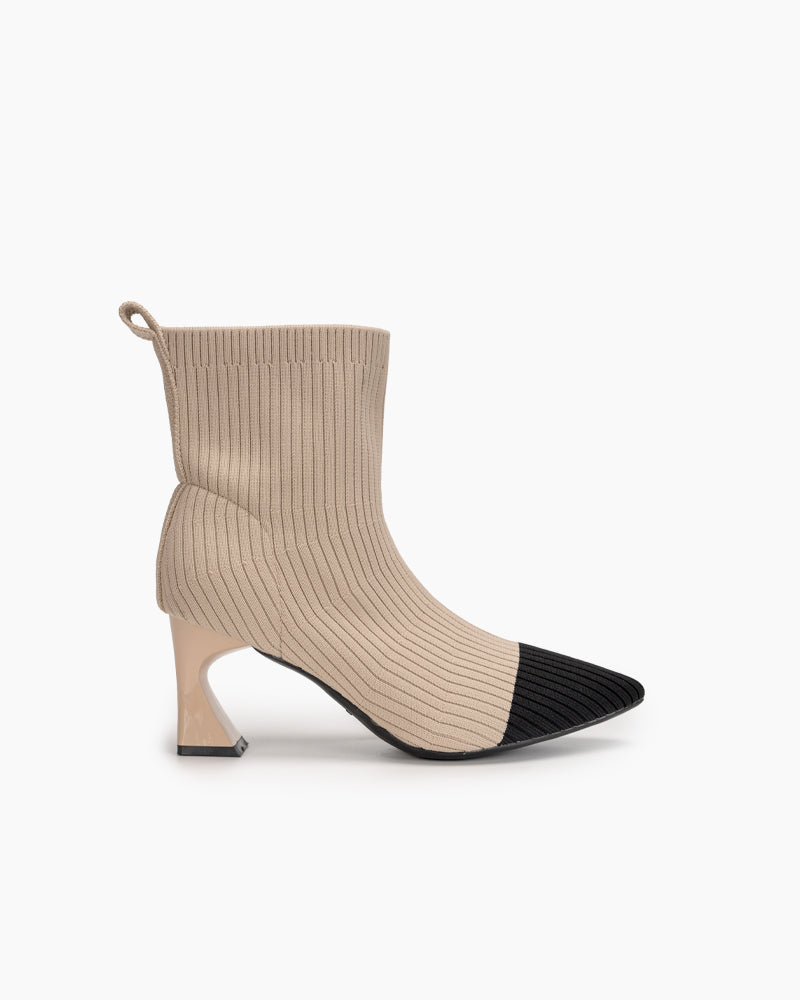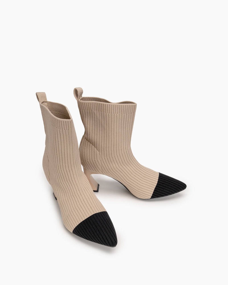 Knit Stretch Mid Calf Slip On Chunky Ankle Booties
