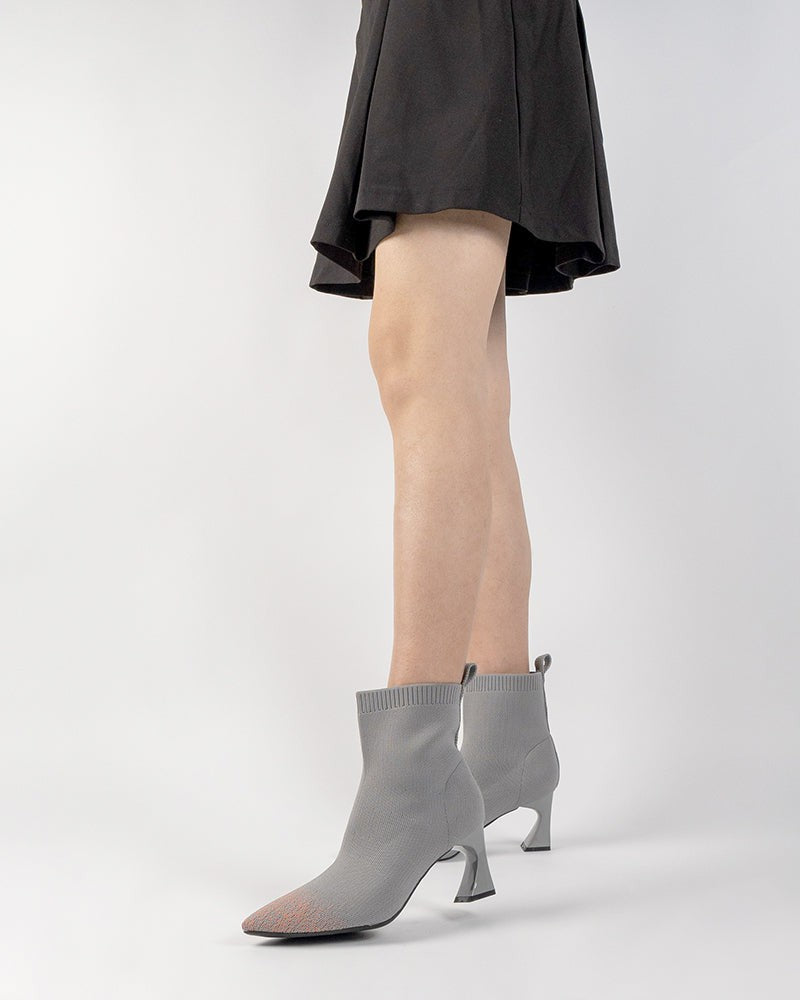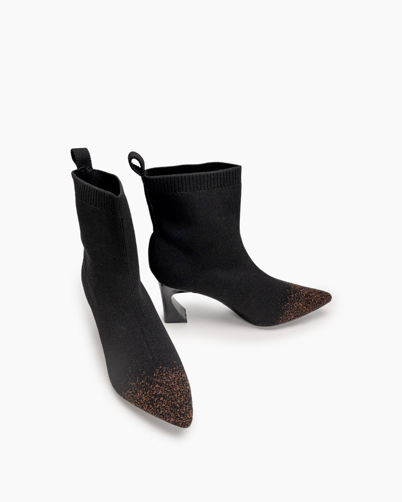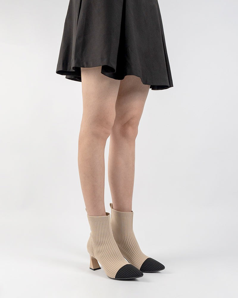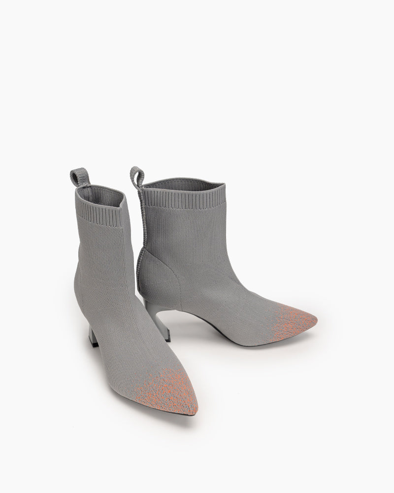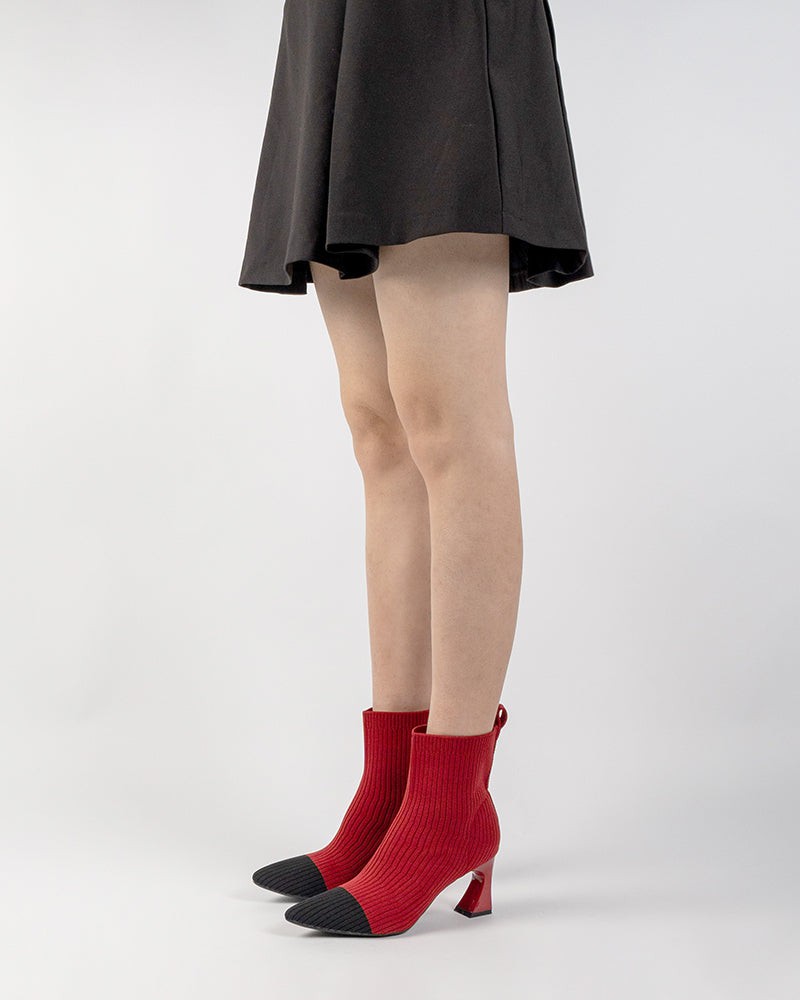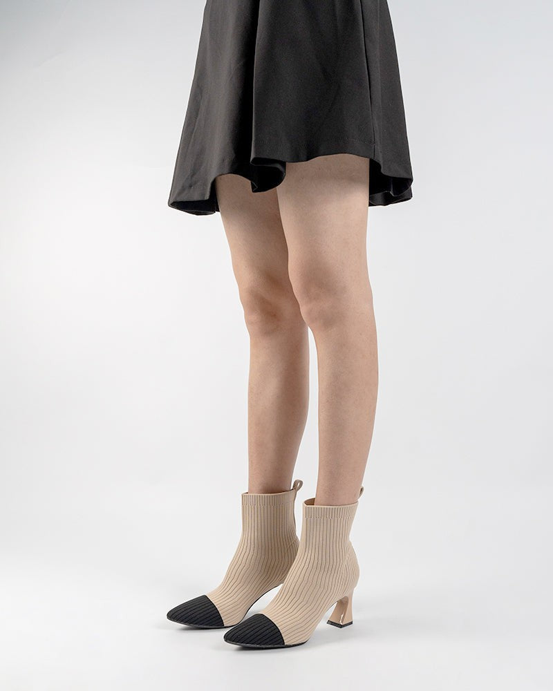 Knit Stretch Mid Calf Slip On Chunky Ankle Booties