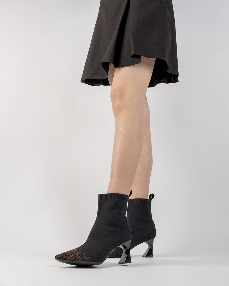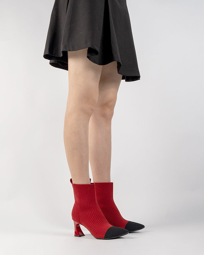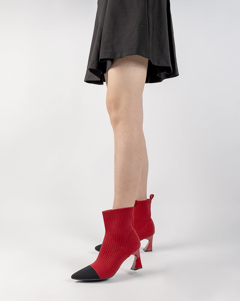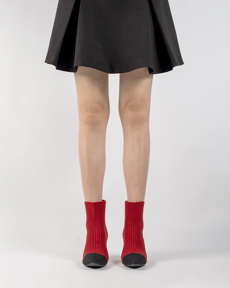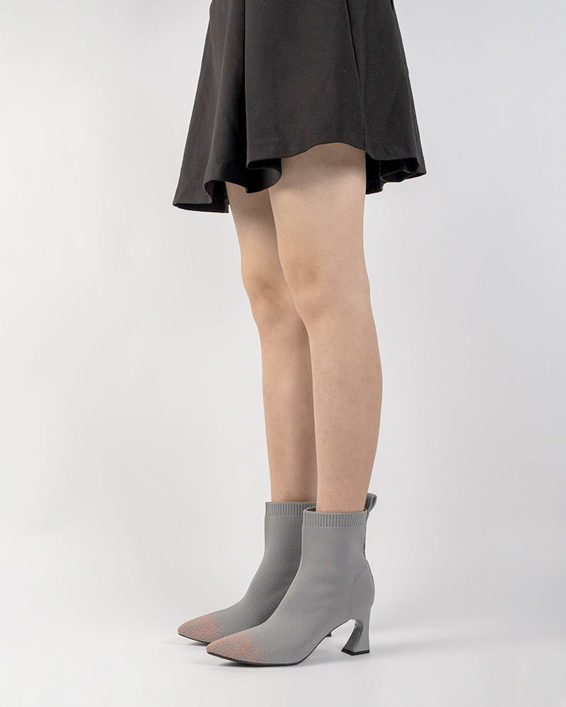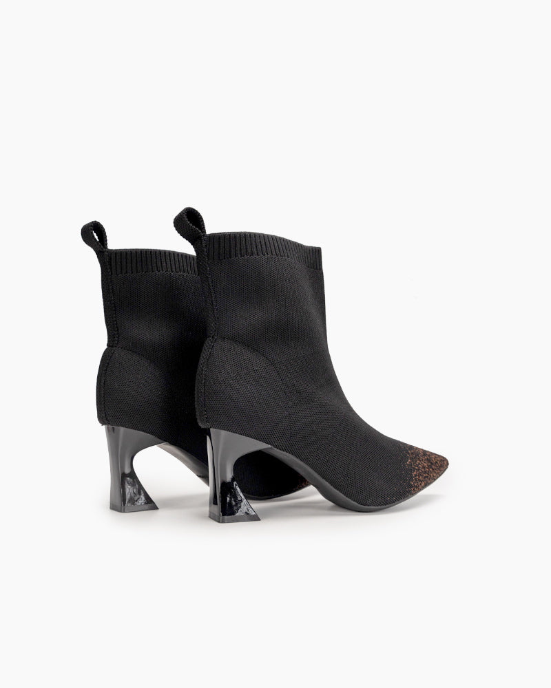 Knit Stretch Mid Calf Slip On Chunky Ankle Booties