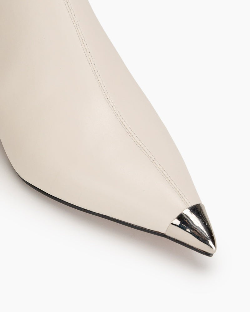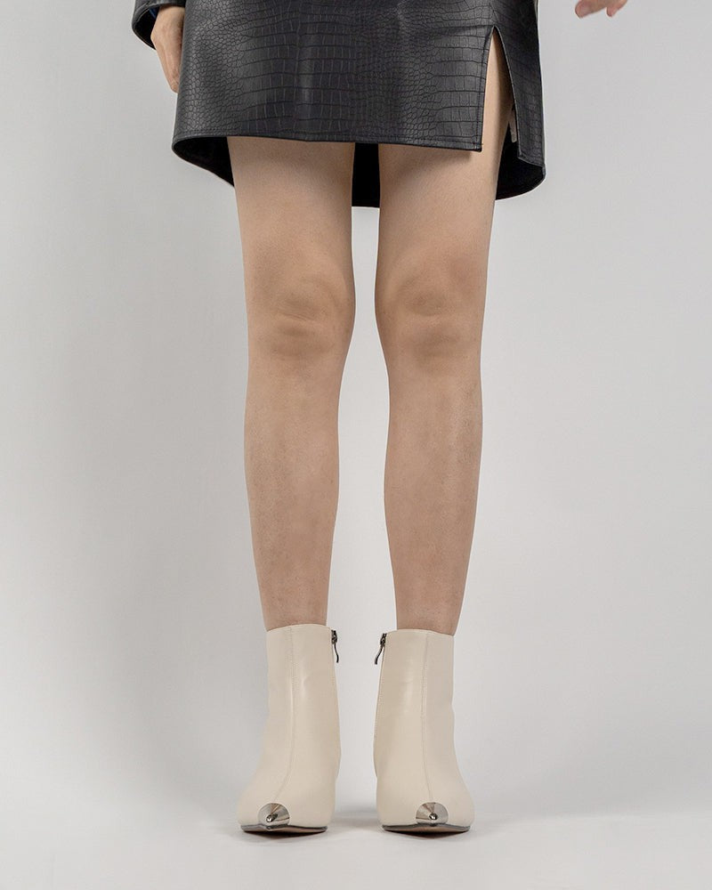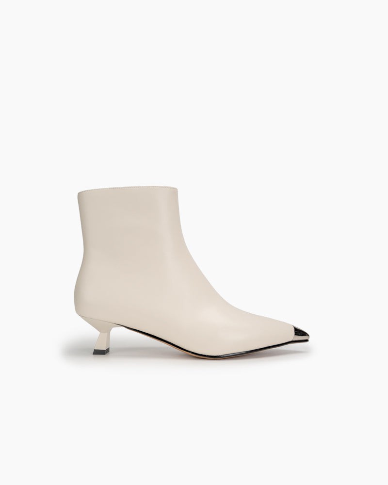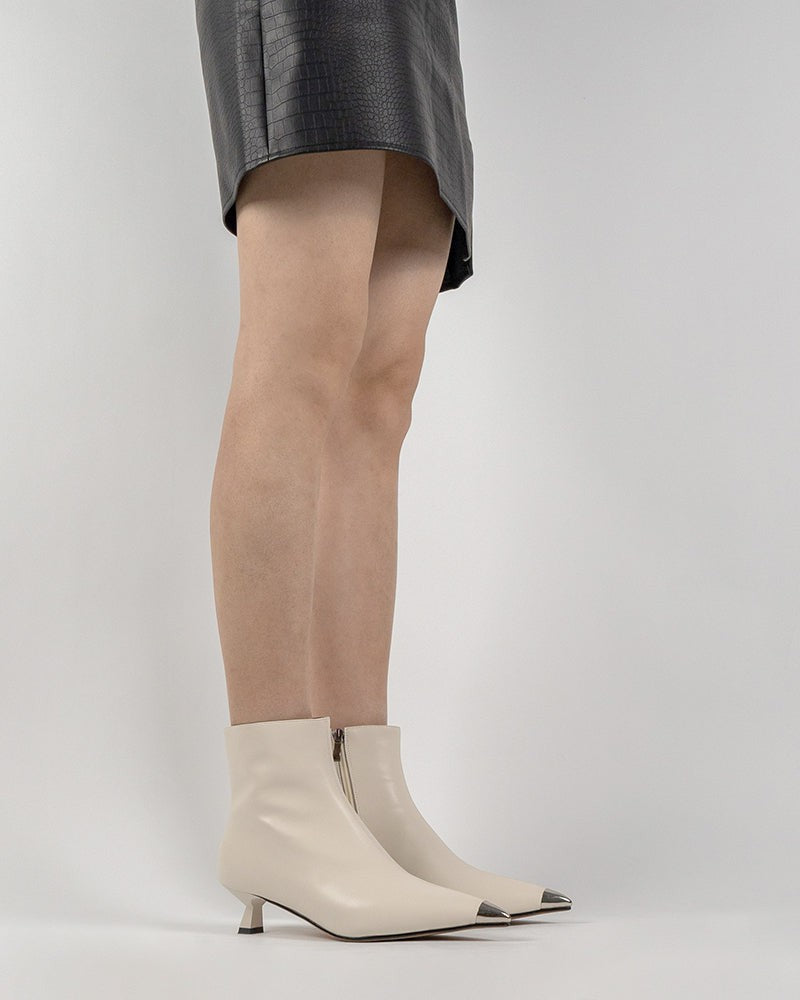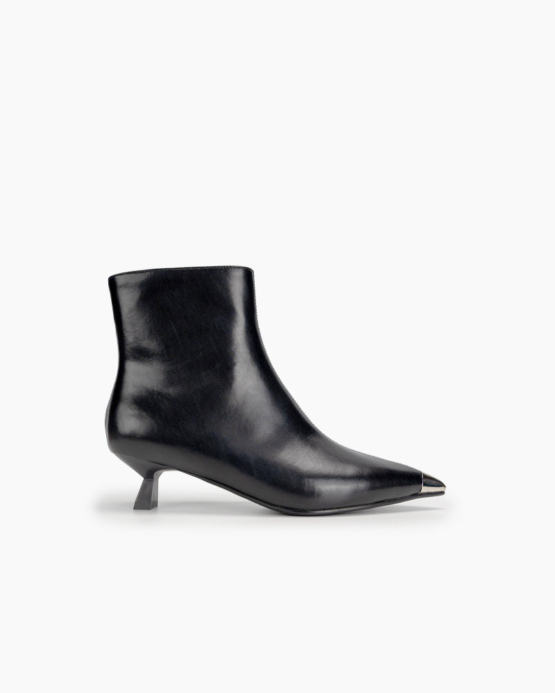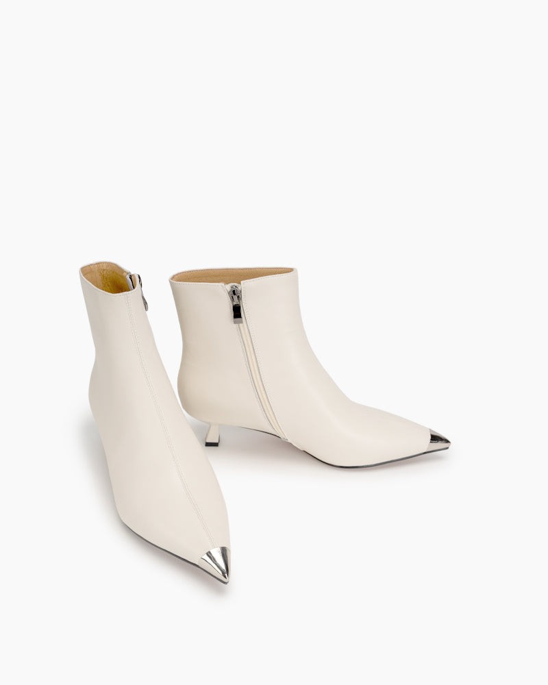 Metal Decoration Leather Kitten Heel Ankle Zipper Boots