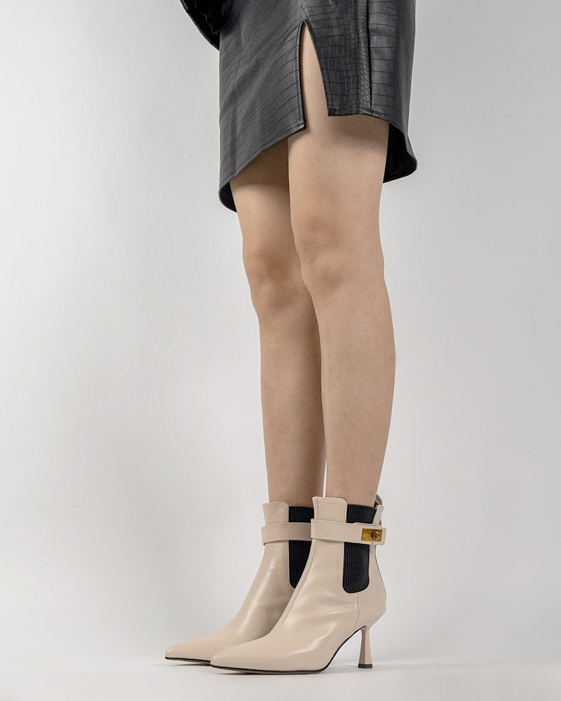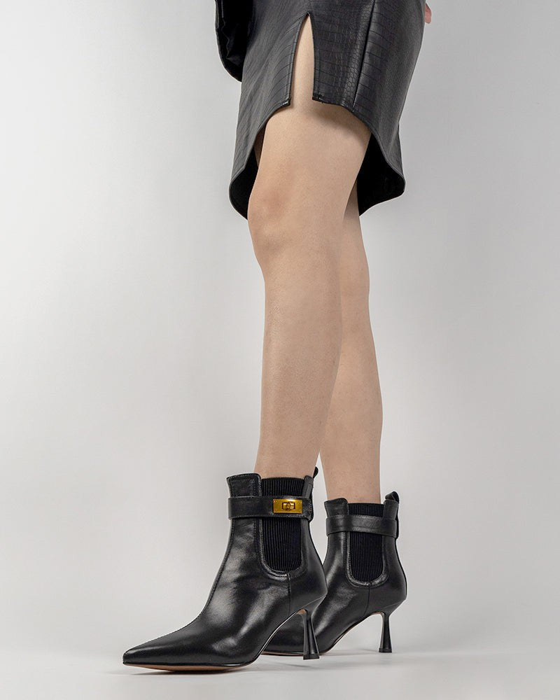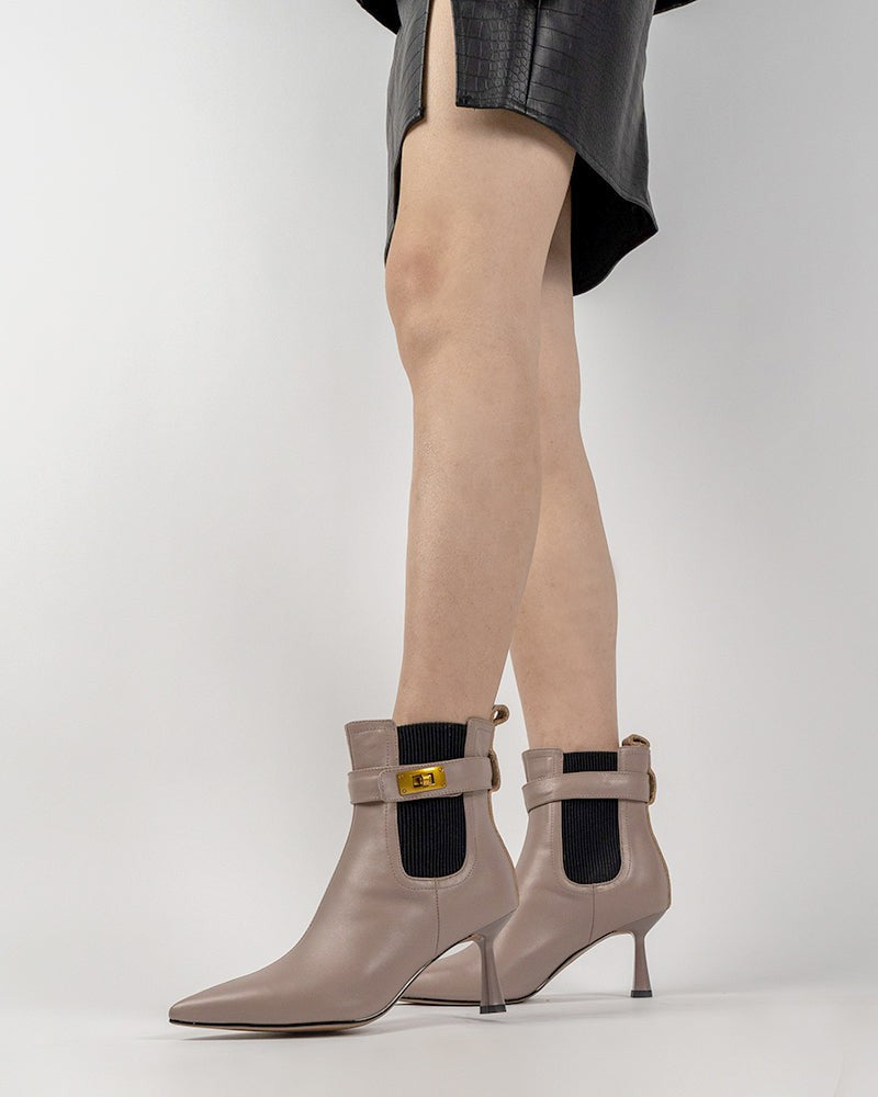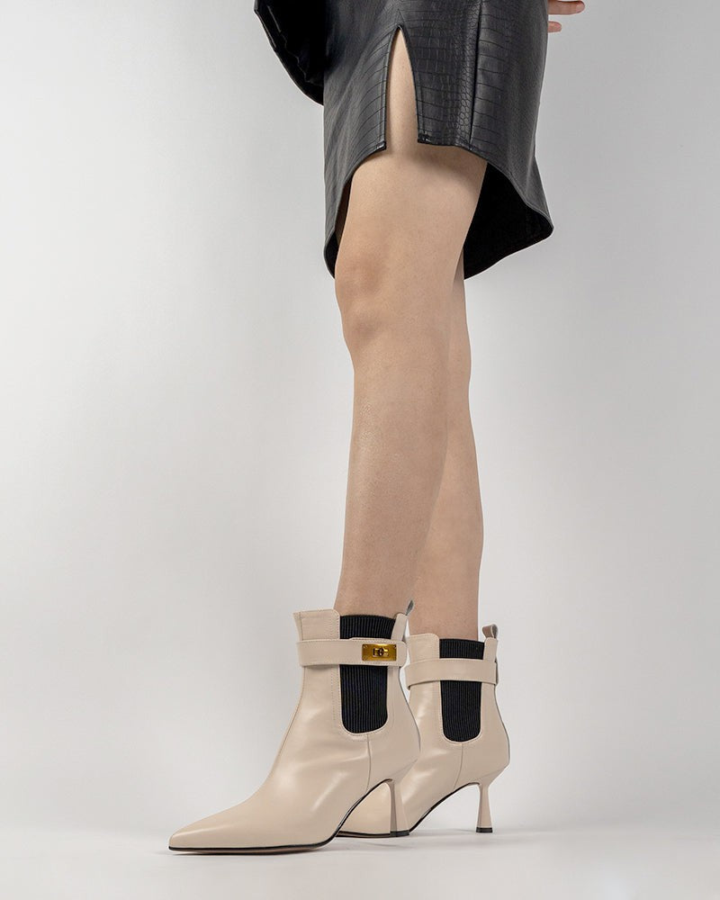 Pointed Toe Elastic Chelsea Stiletto Heel Ankle Boots