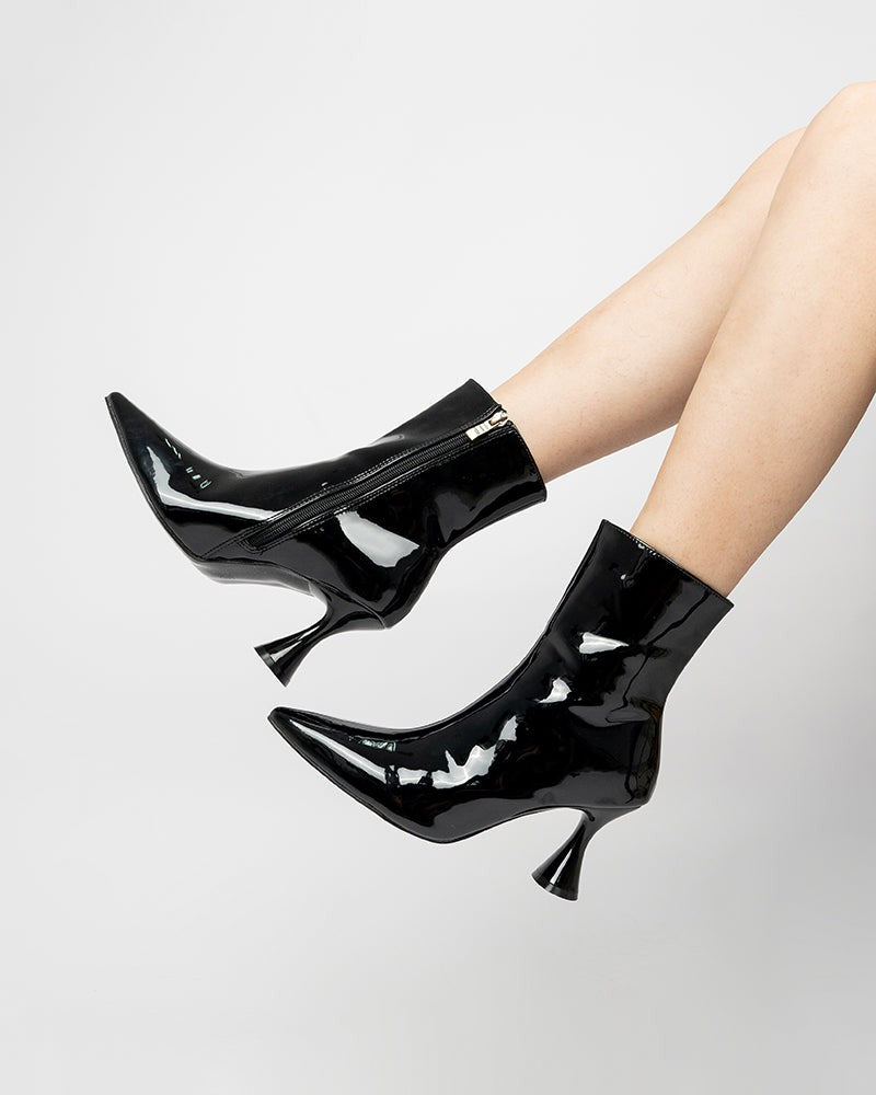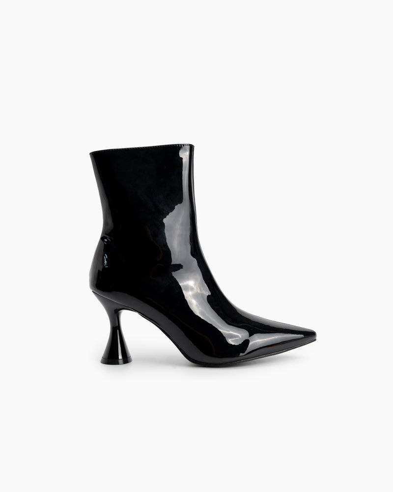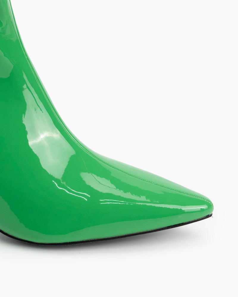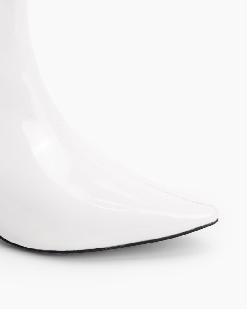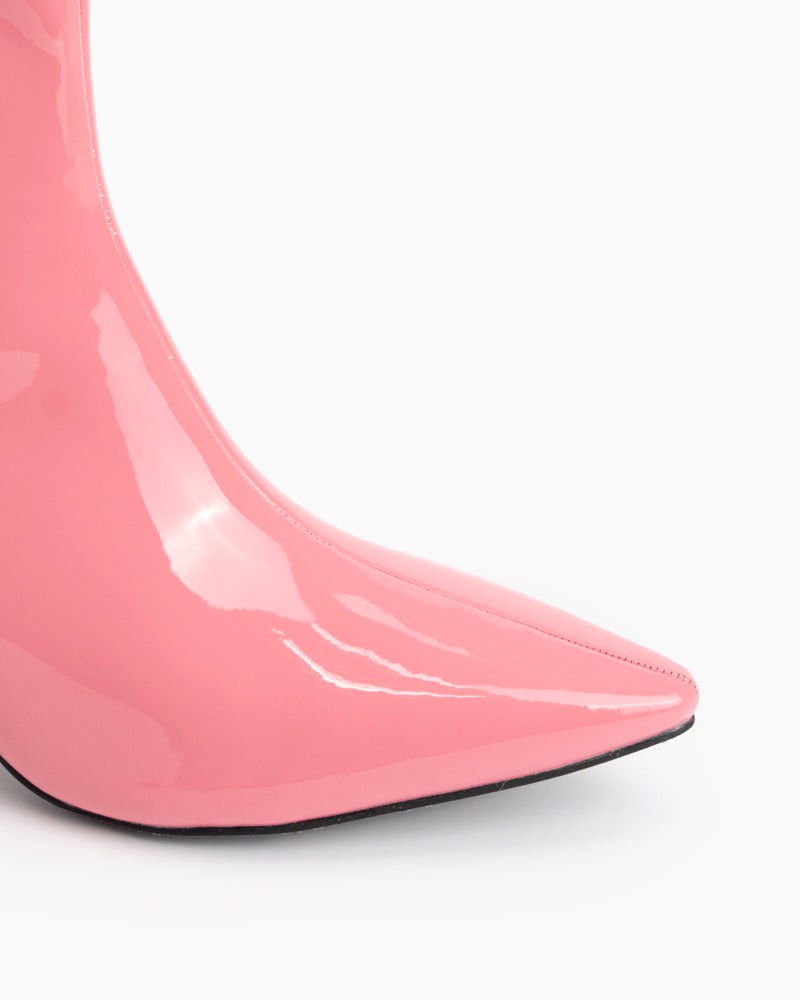 Pointed Toe Patent Leather Slip On Stiletto Boots