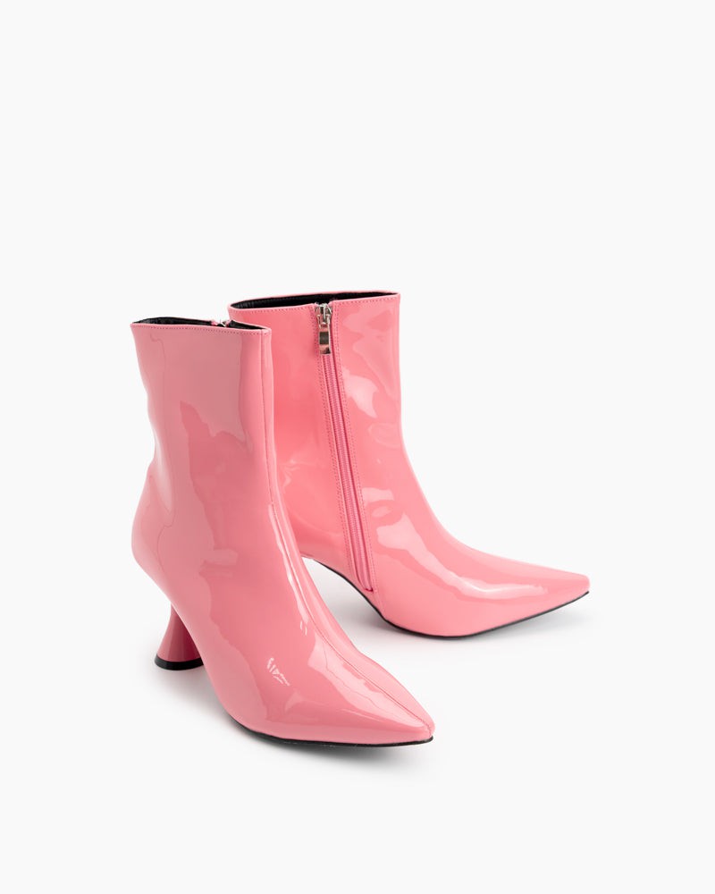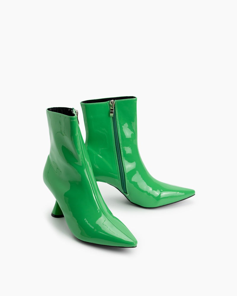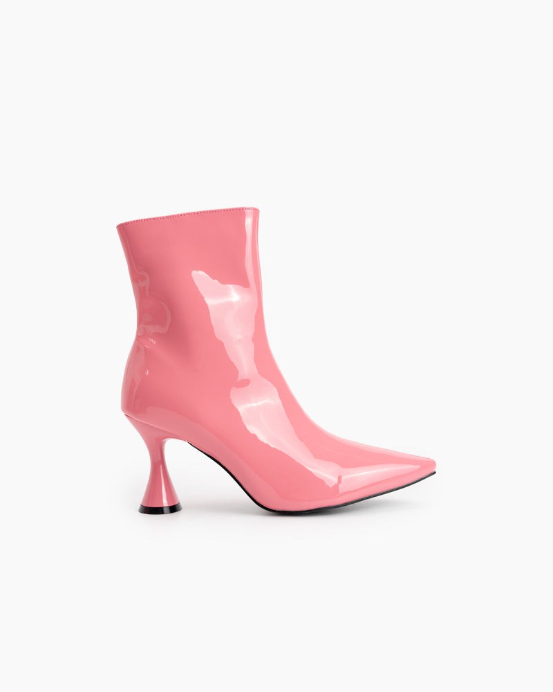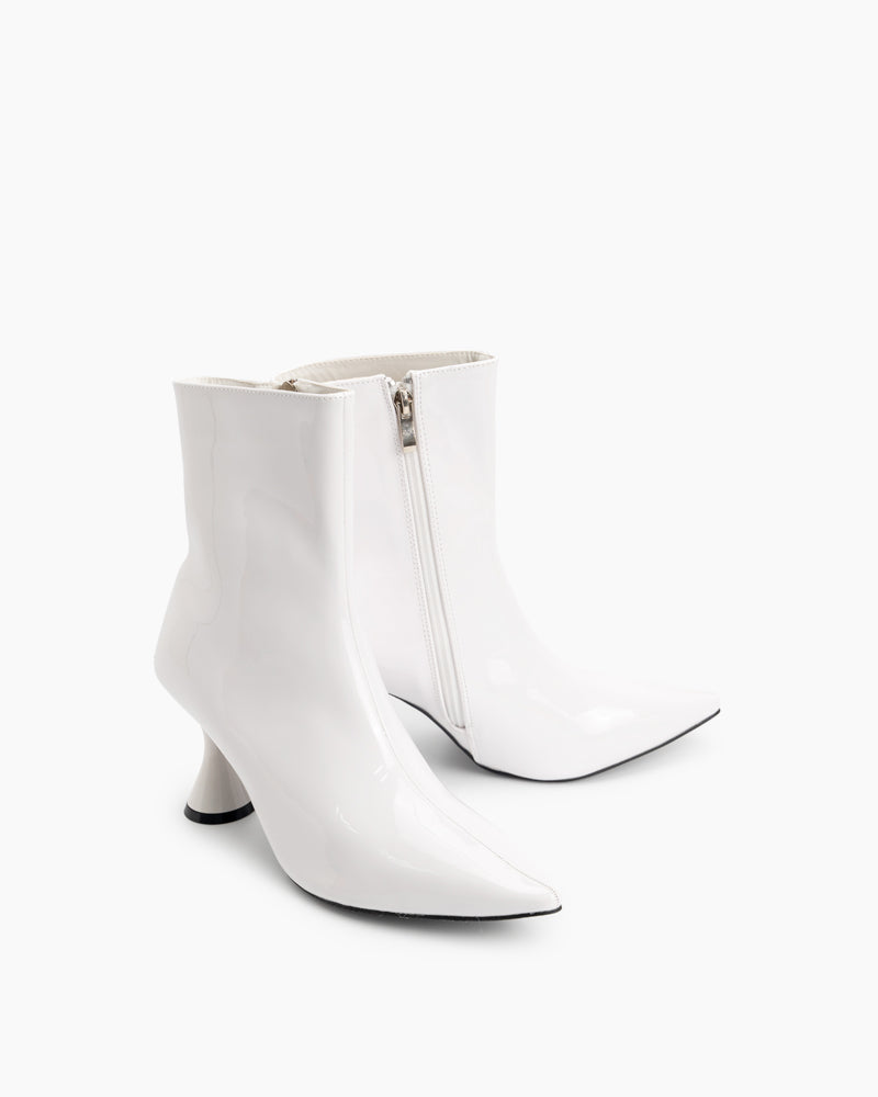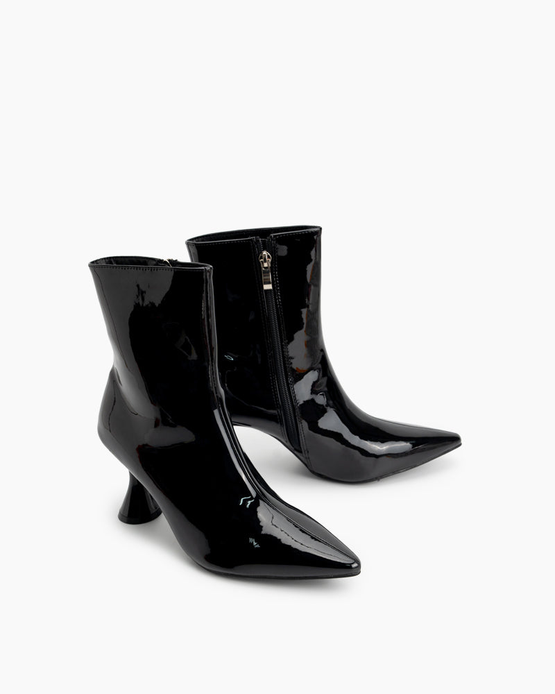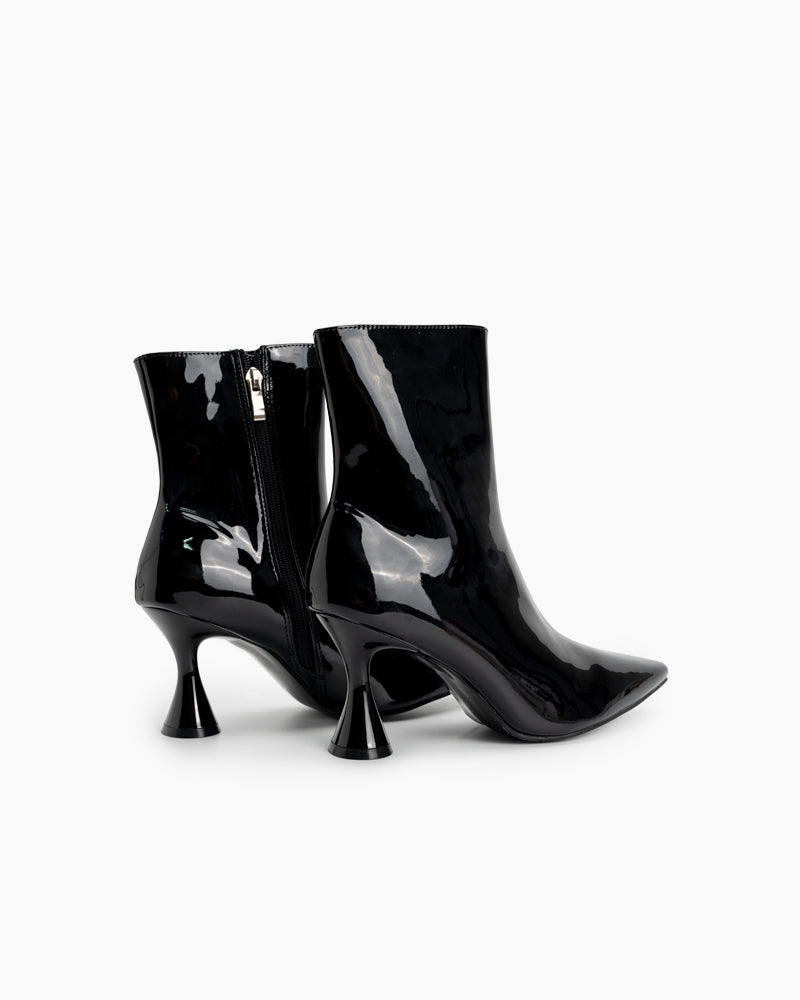 Pointed Toe Patent Leather Slip On Stiletto Boots