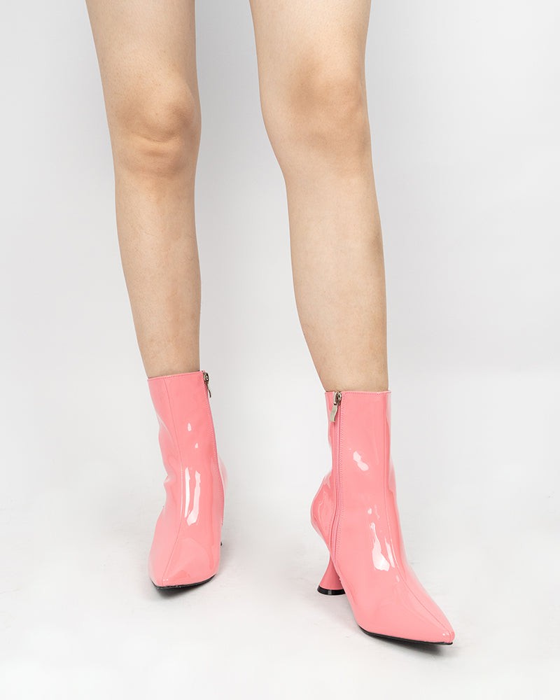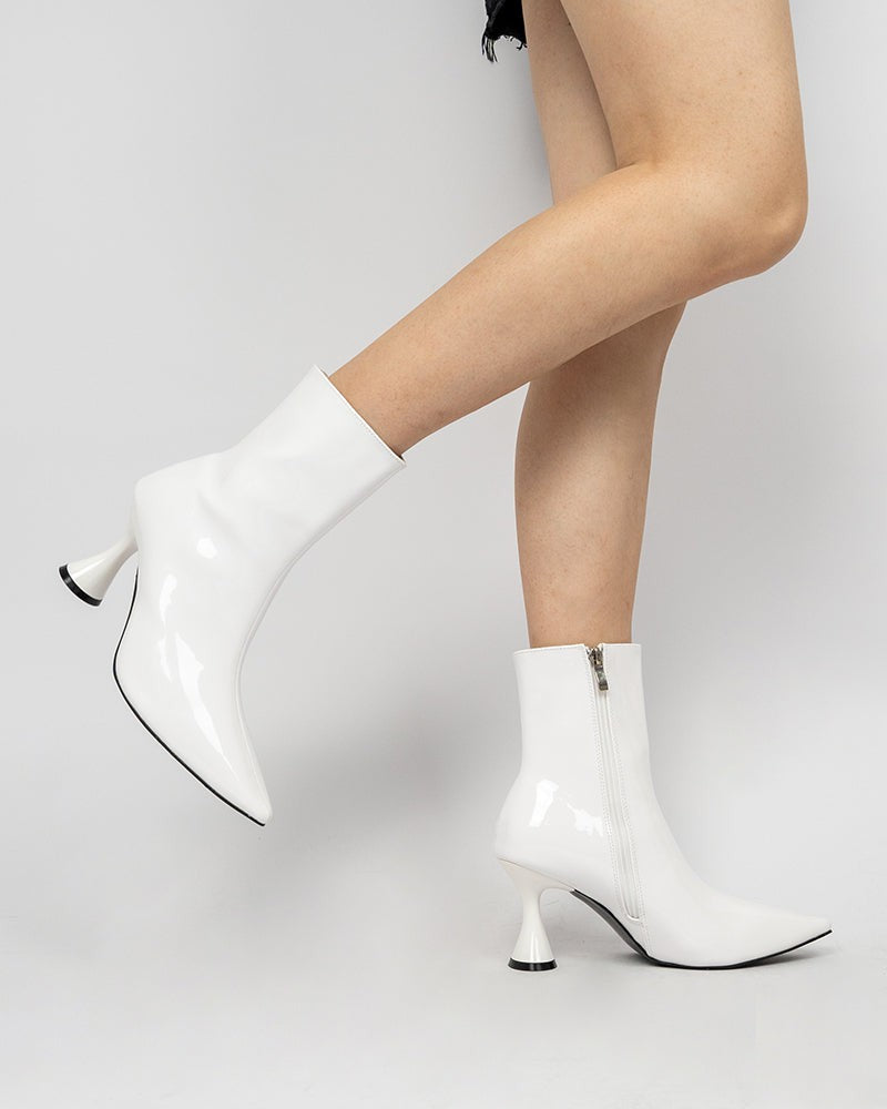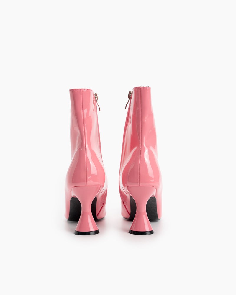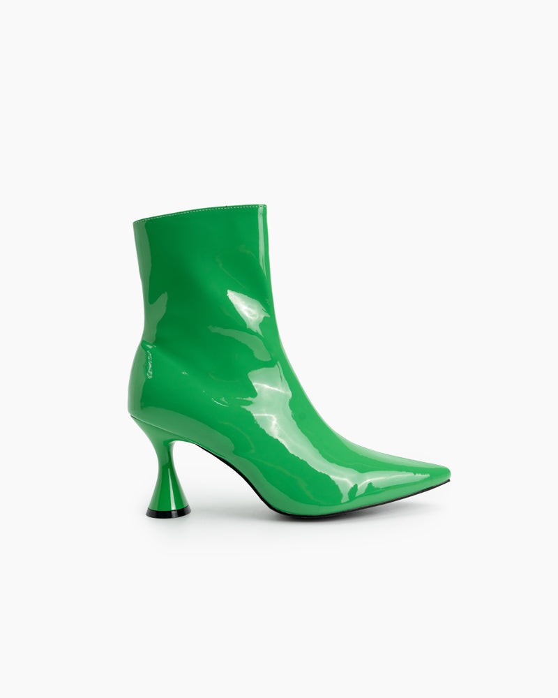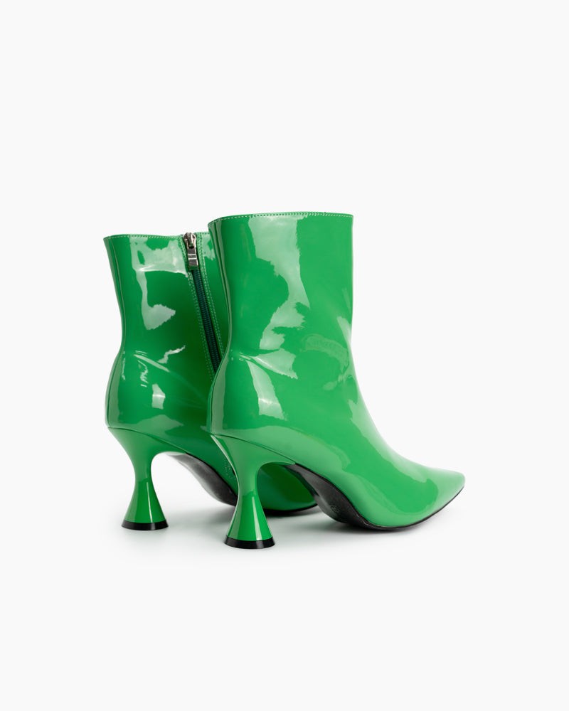 Pointed Toe Patent Leather Slip On Stiletto Boots