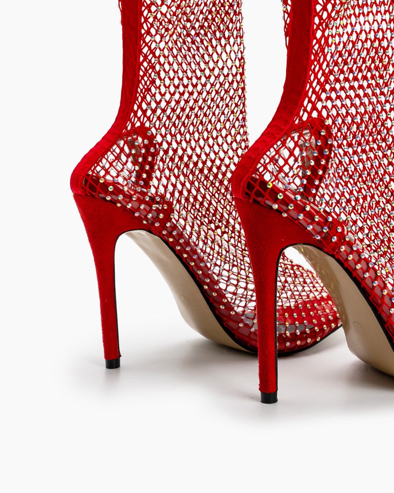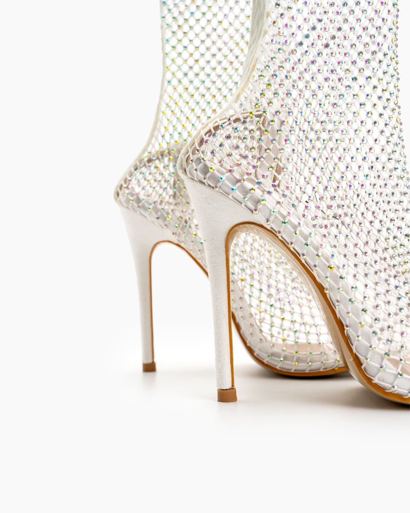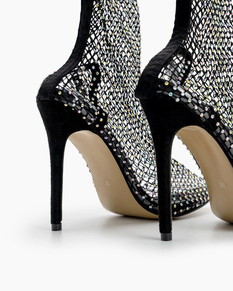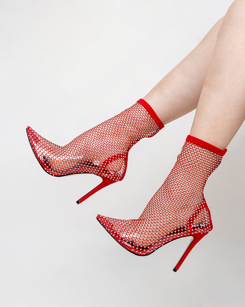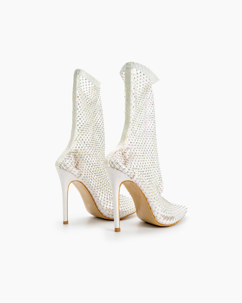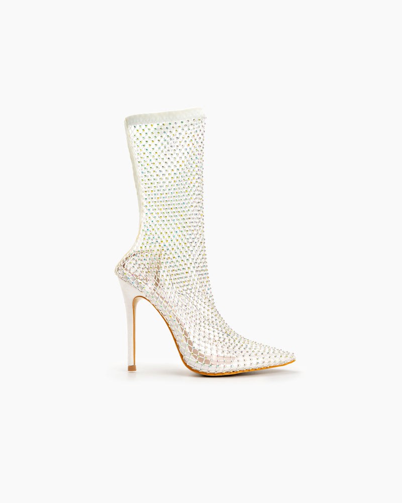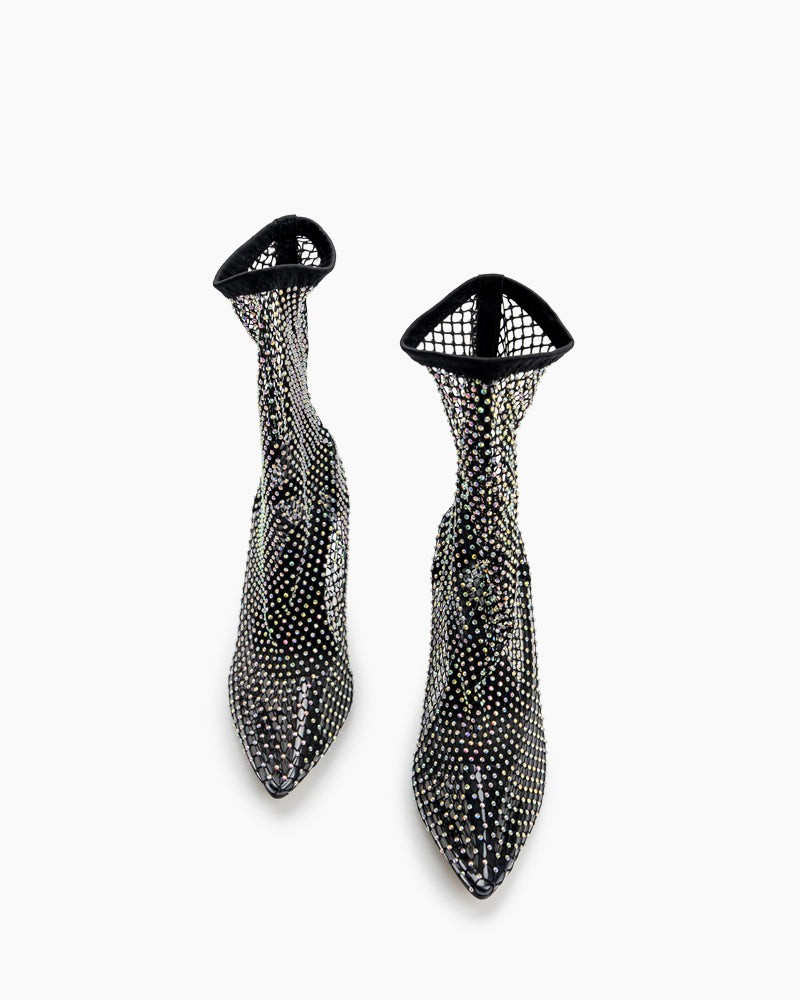 Pointed Toe Rhinestone Fishnet Stiletto Sock Boots