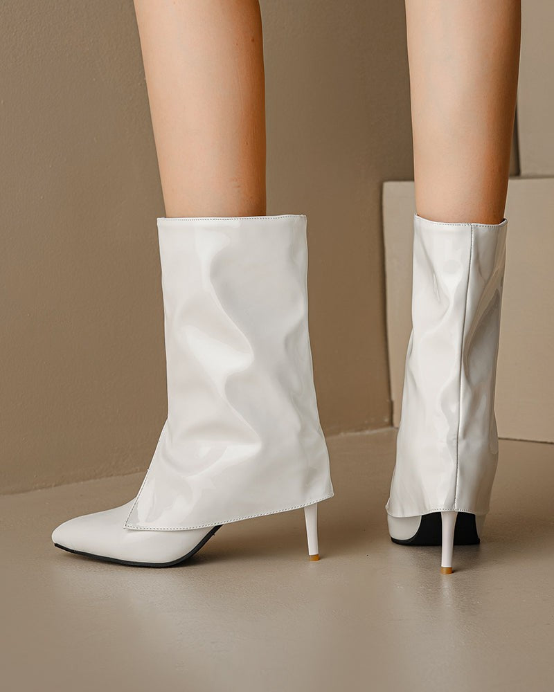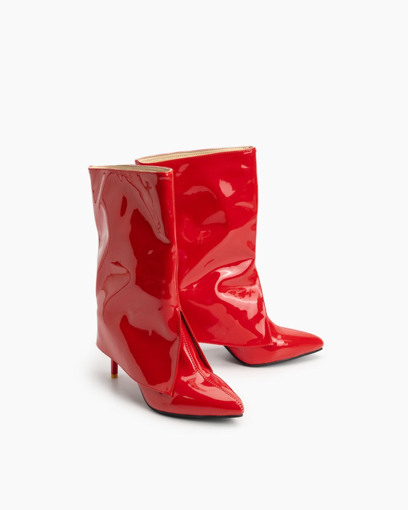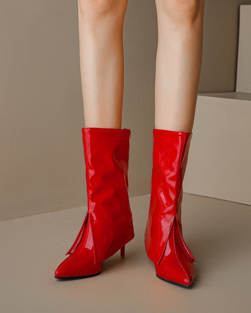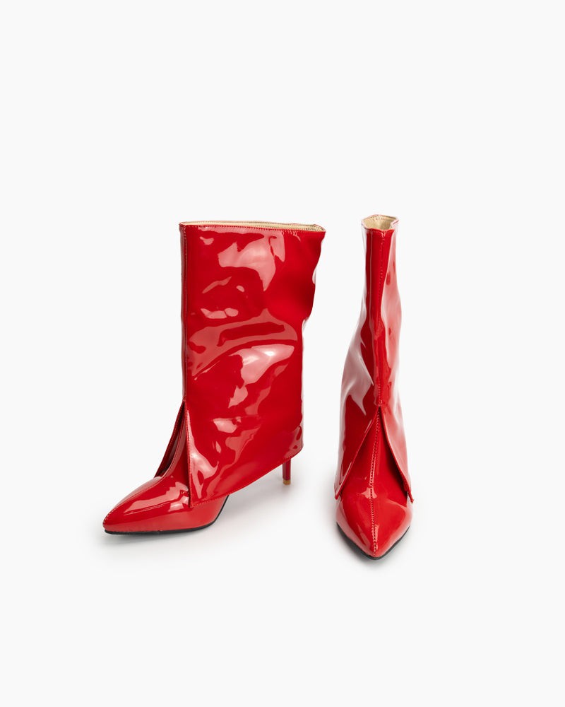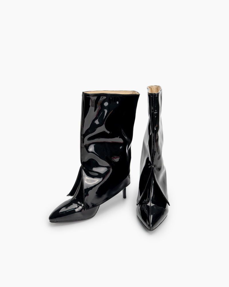 Pointed Toe Stiletto Patent Leather Ankle Boots