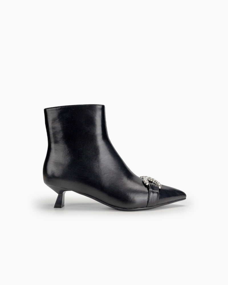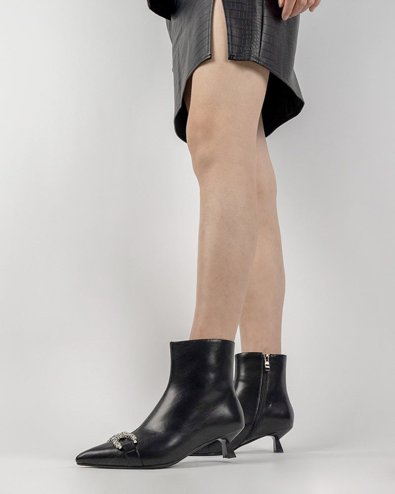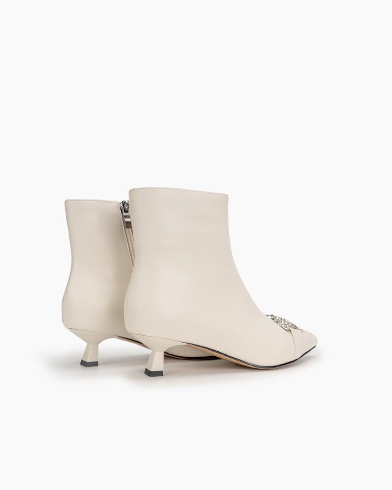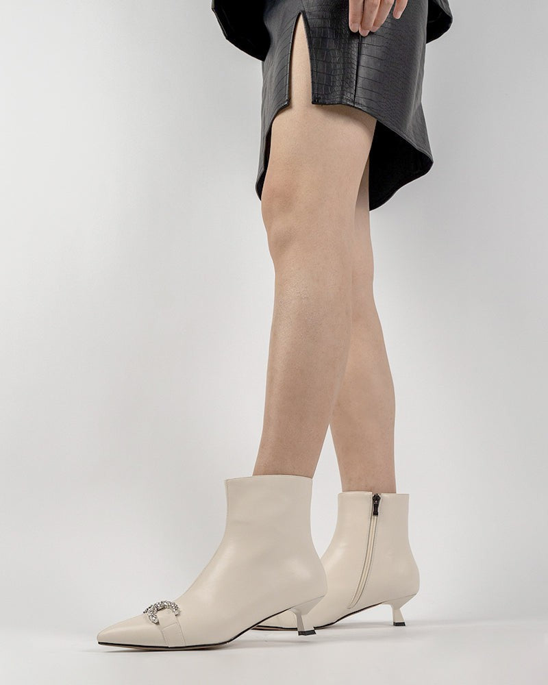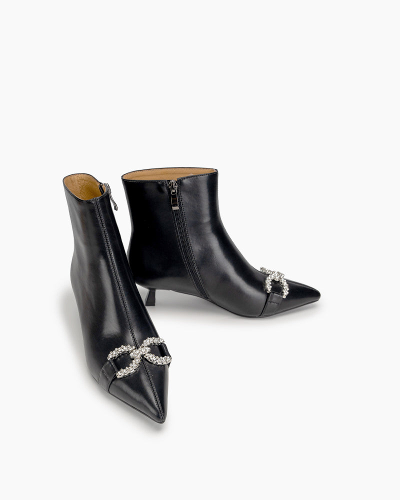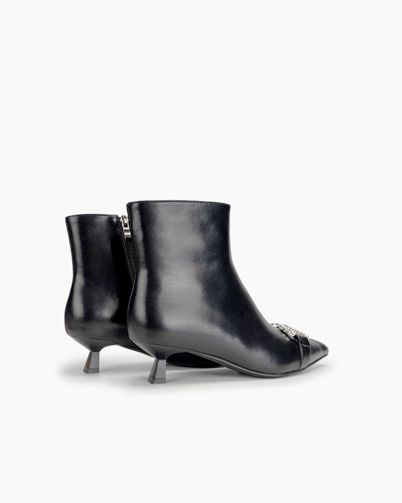 Rhinestone Decoration Leather Kitten Heel Ankle Zipper Boots