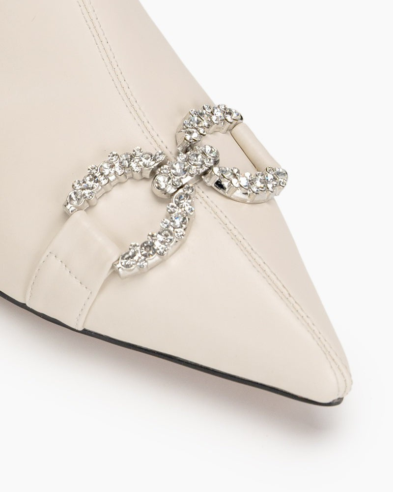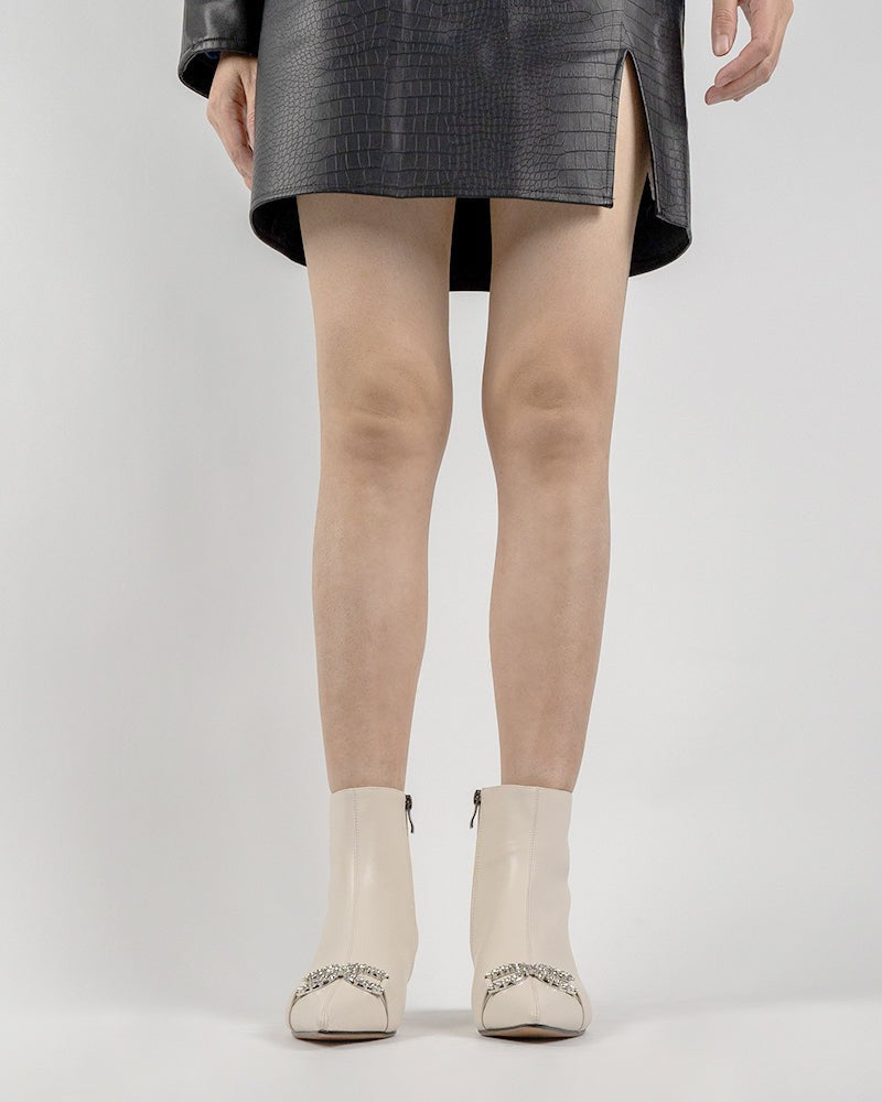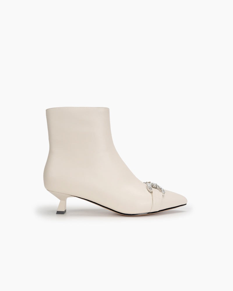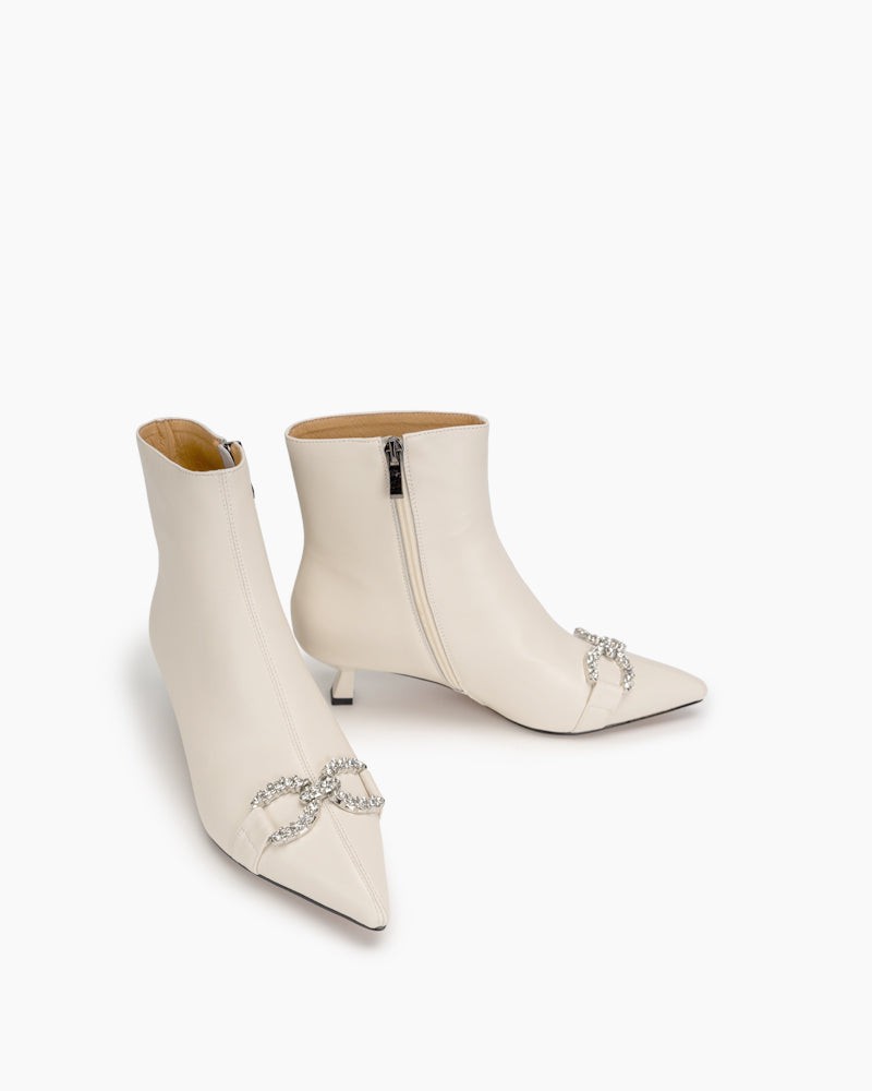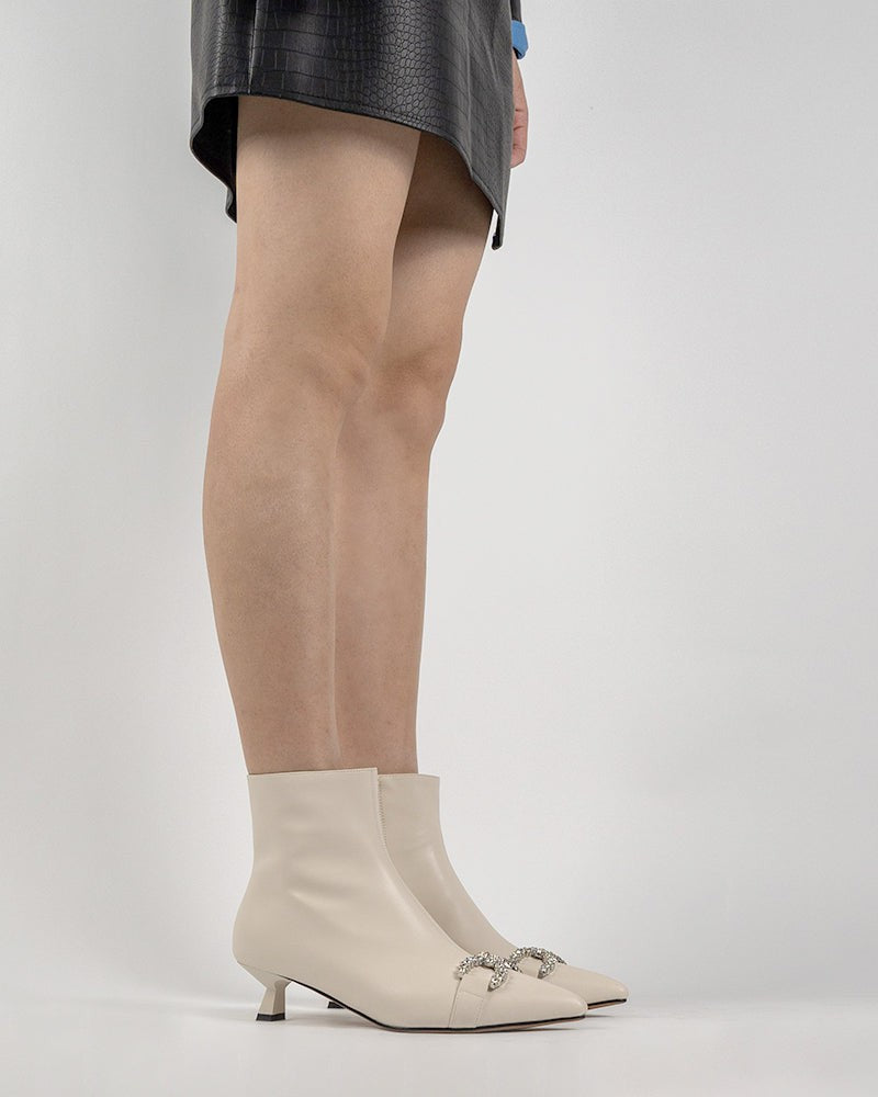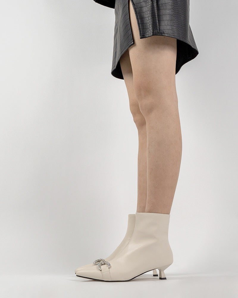 Rhinestone Decoration Leather Kitten Heel Ankle Zipper Boots
