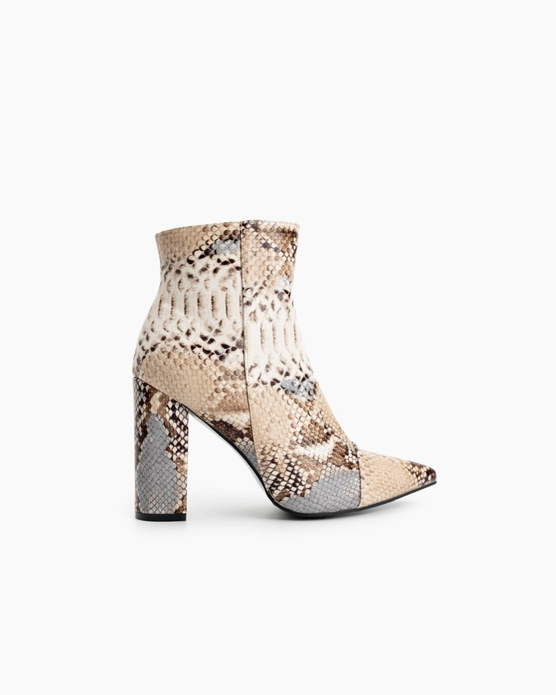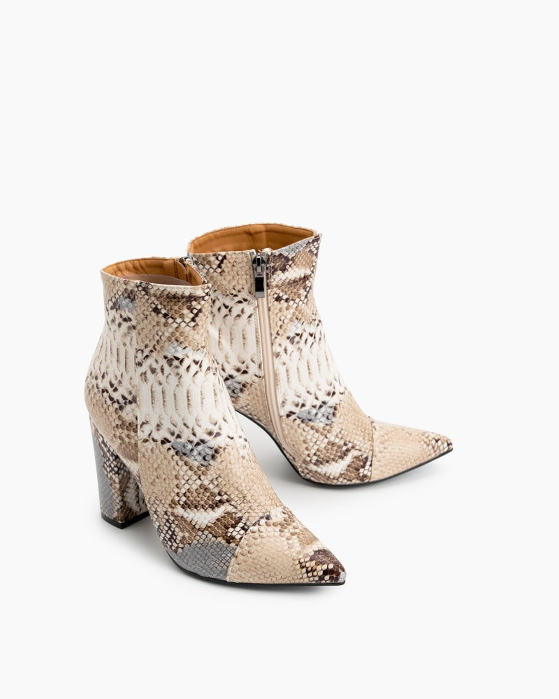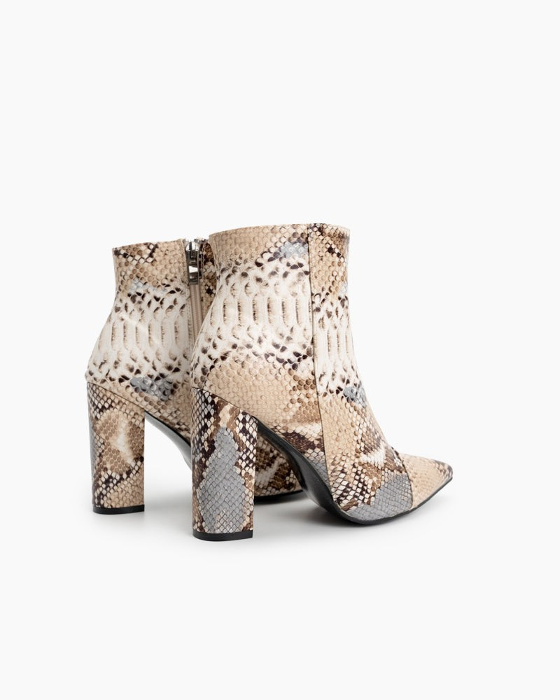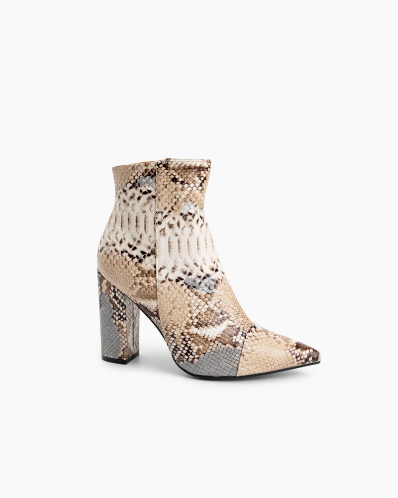 Snake Print Chunky Block Mid Heels Ankle Boots