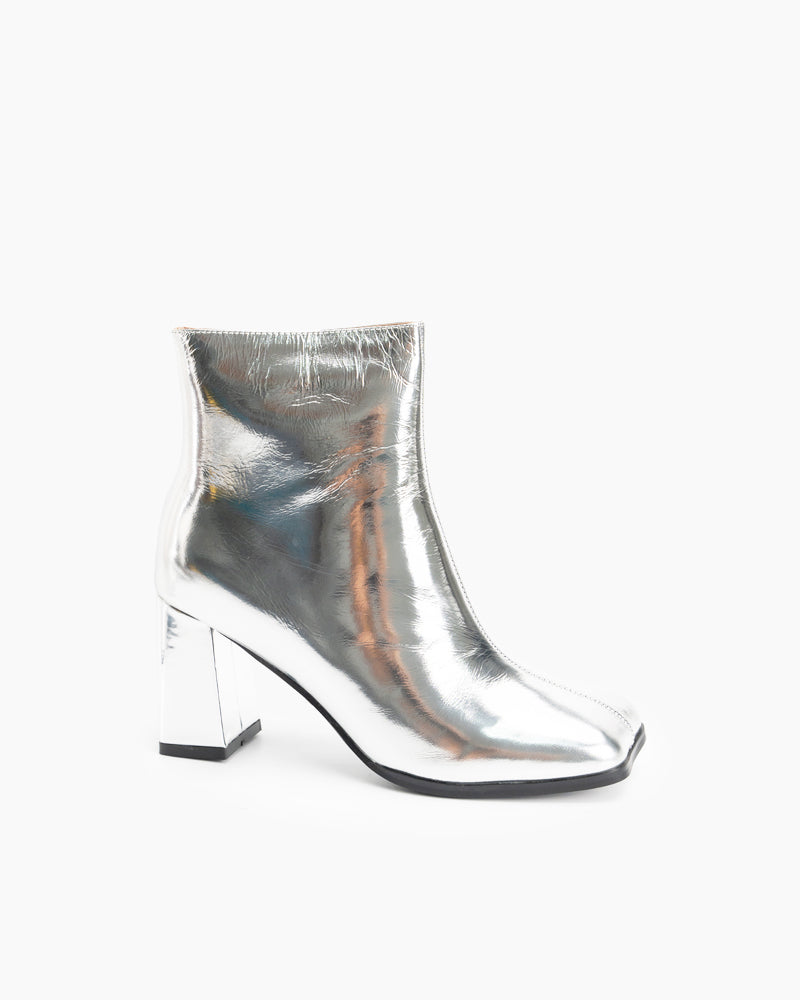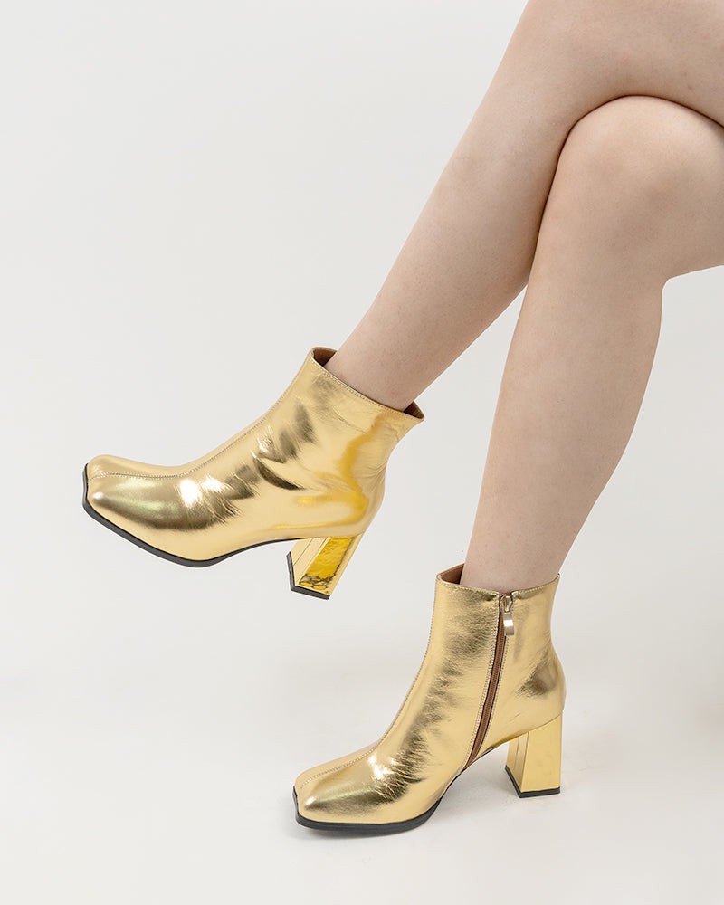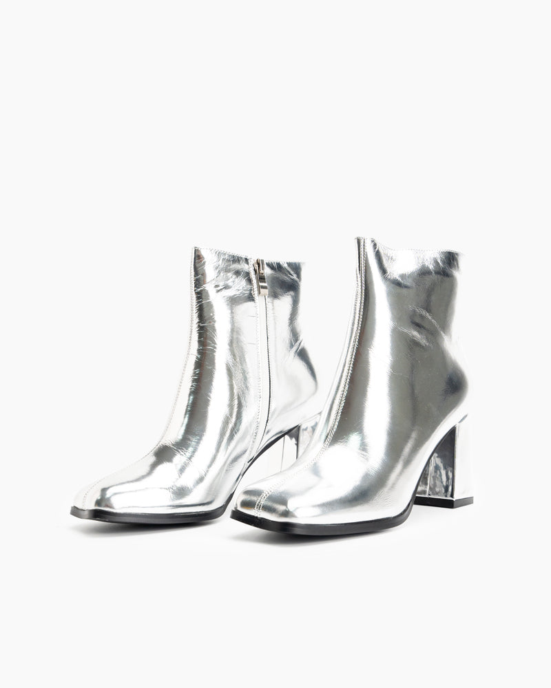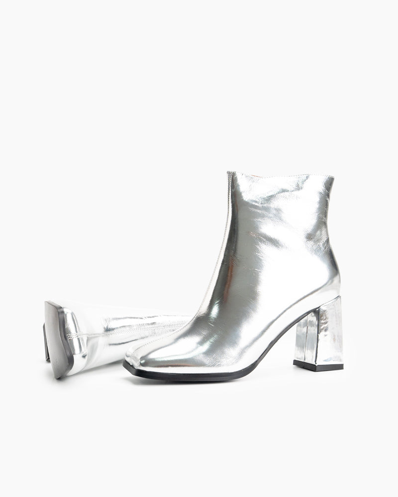 Square Toe Mid Block Heel Side Zipper Ankle Boots