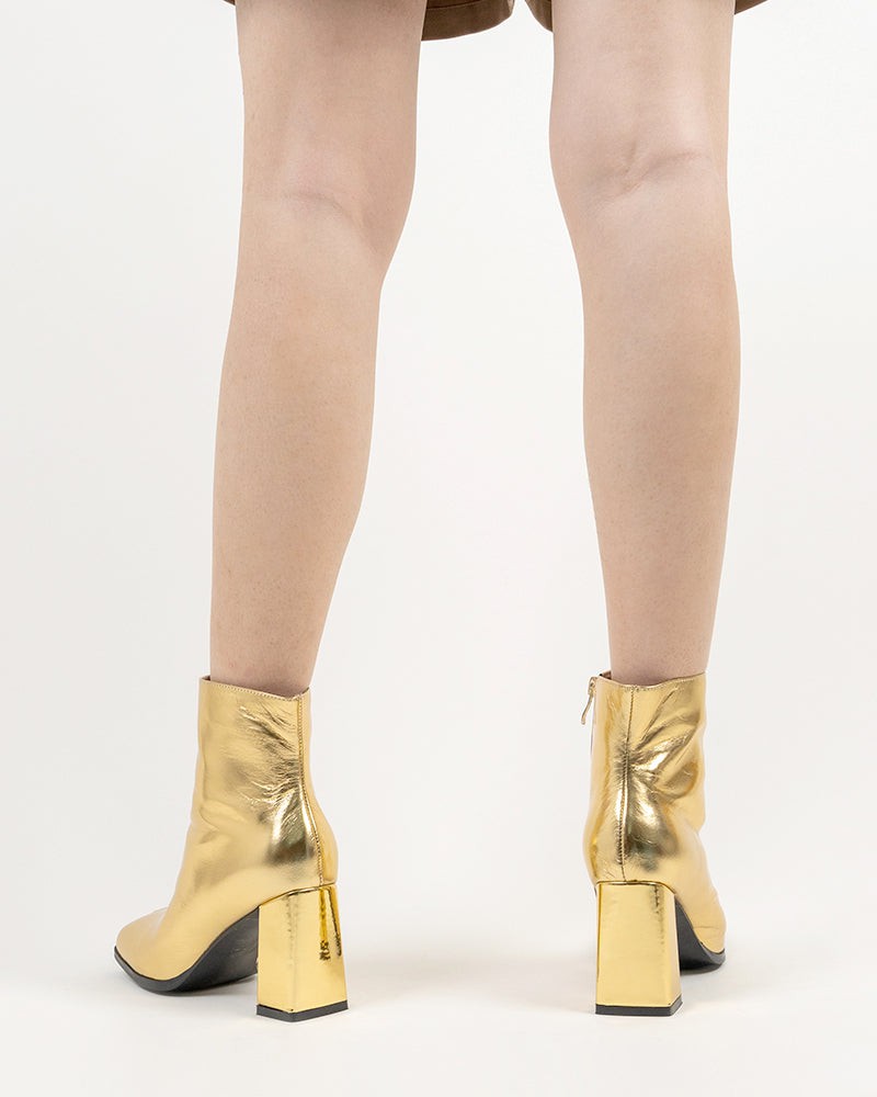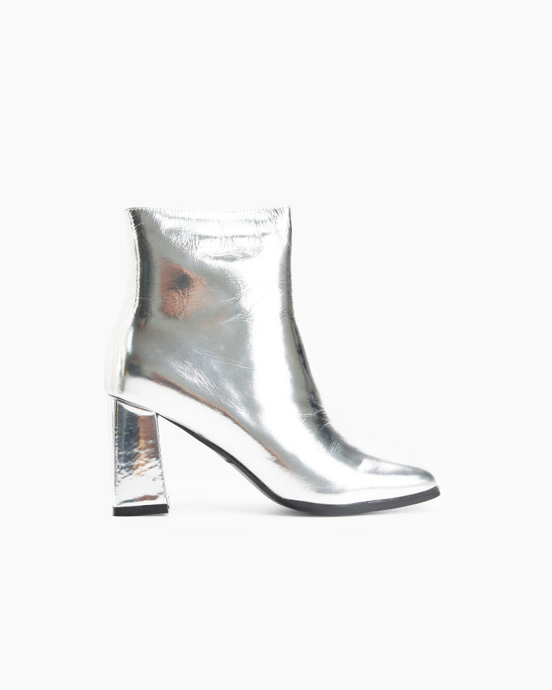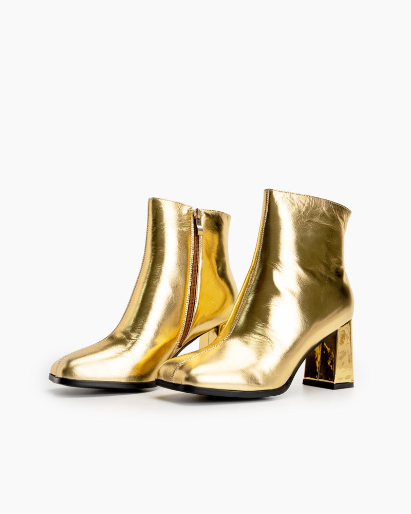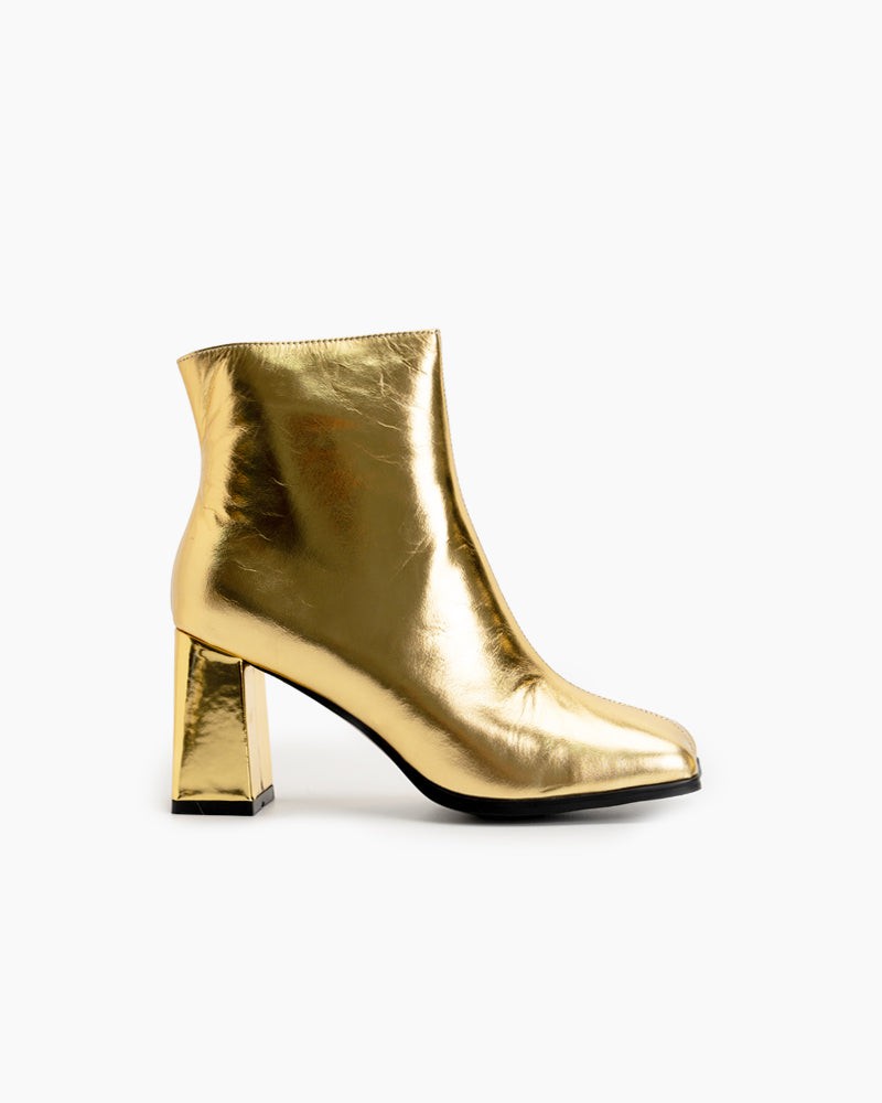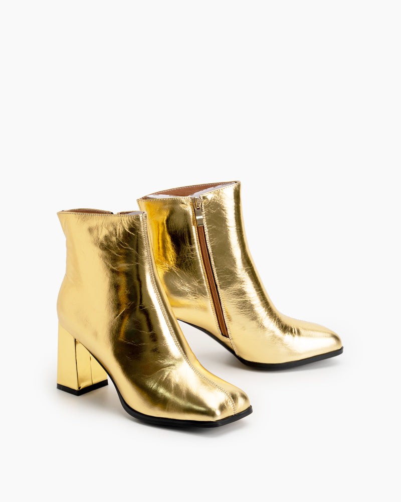 Square Toe Mid Block Heel Side Zipper Ankle Boots