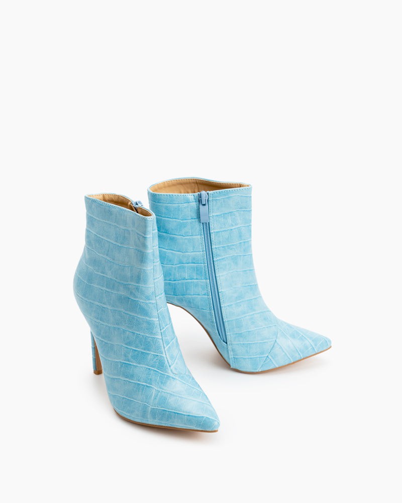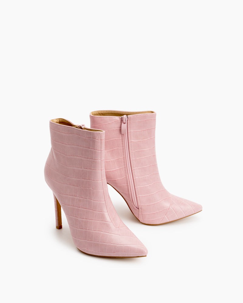 Stone Pattern Side Zip Pointed Toe Velvet Stiletto Heel Boots