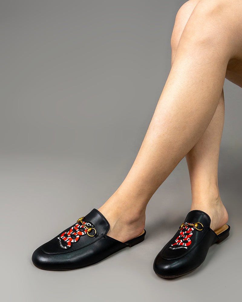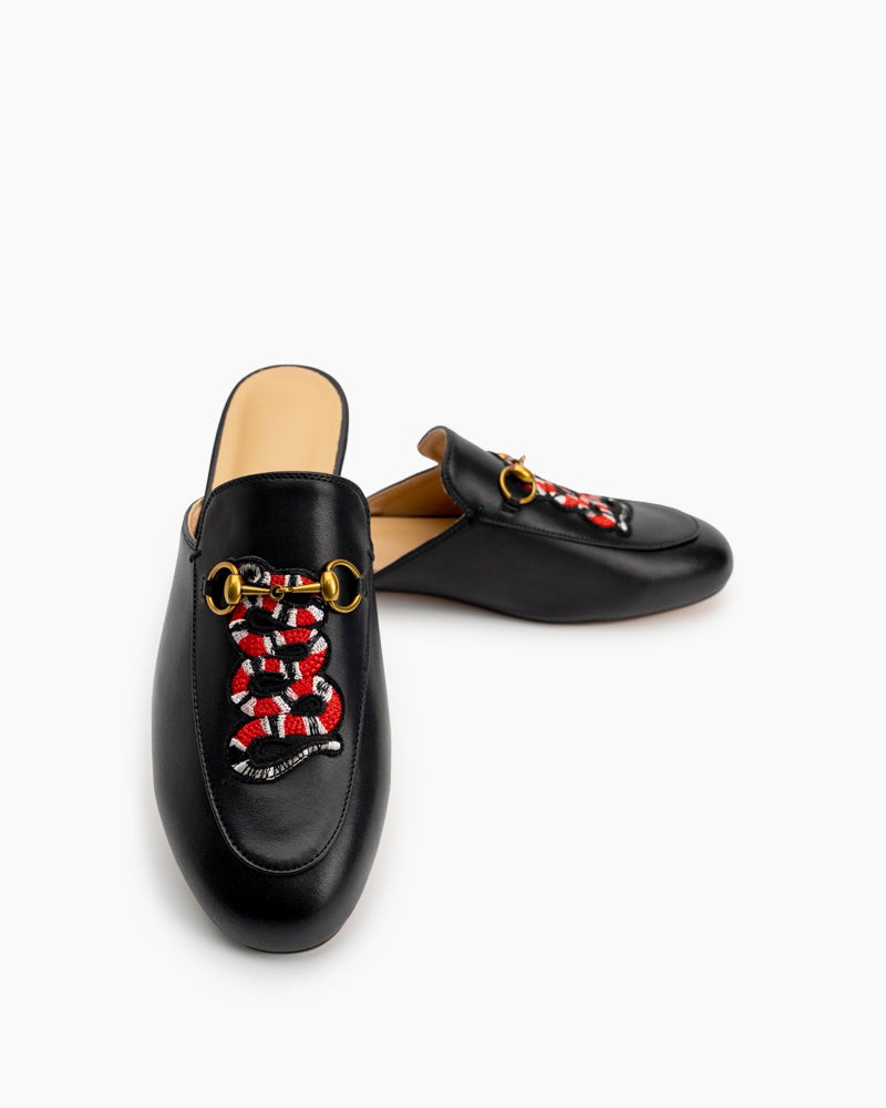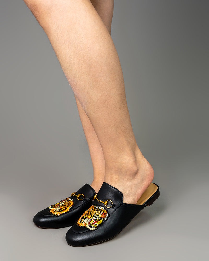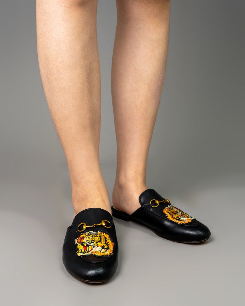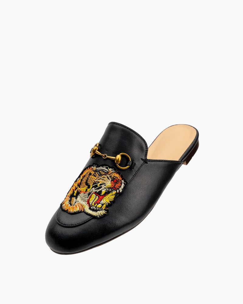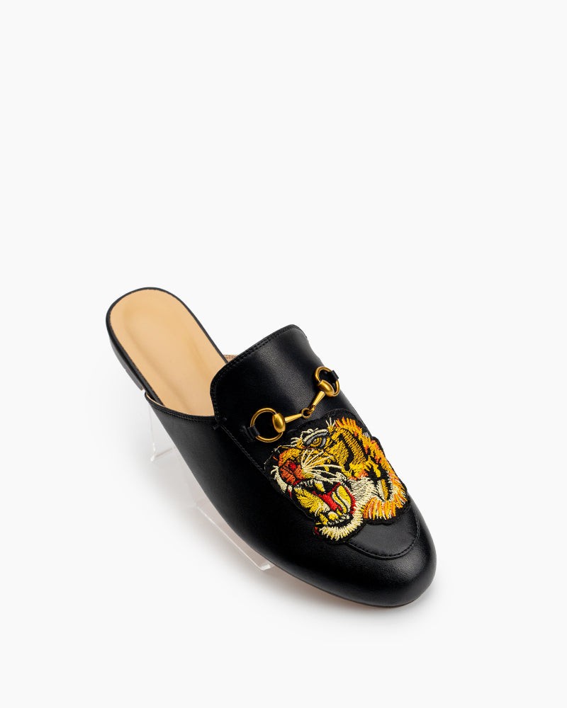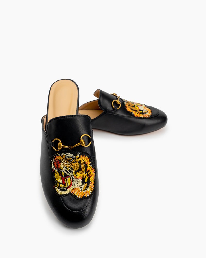 Casual Fashion Leather Tiger Pattern Slippers Mules