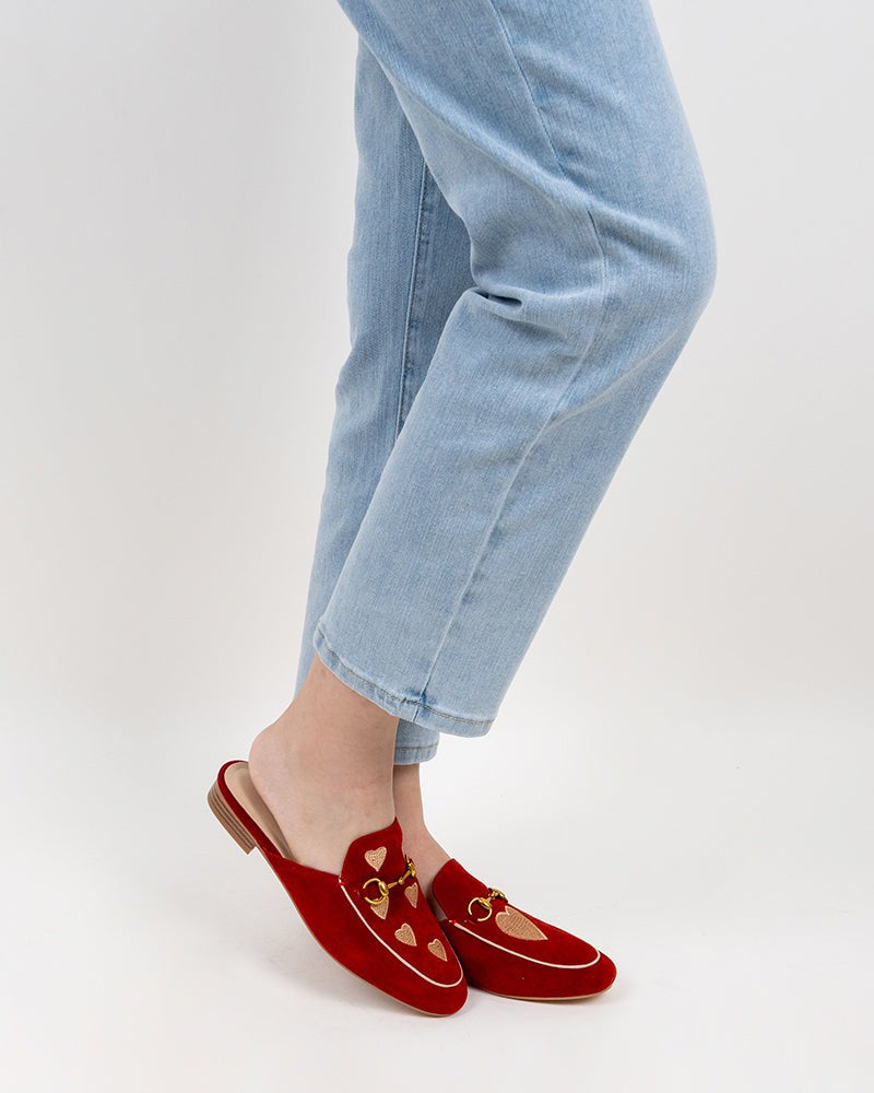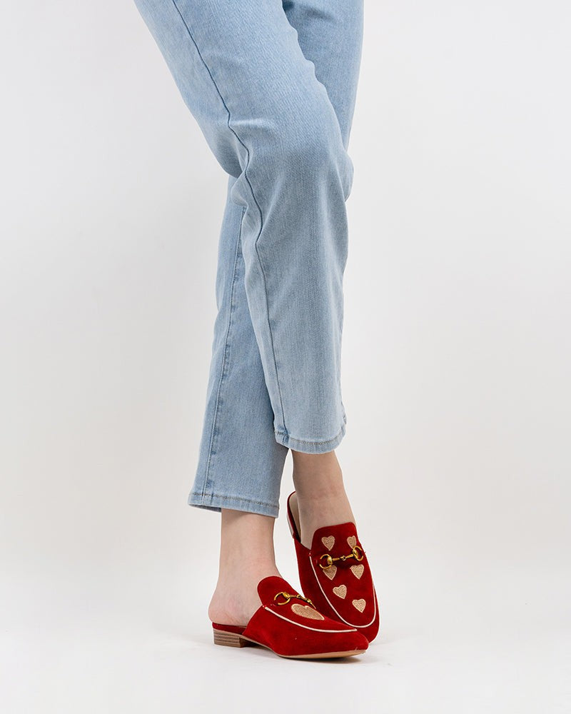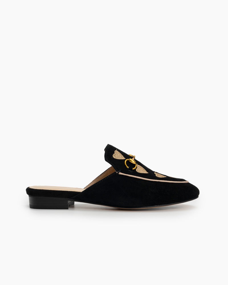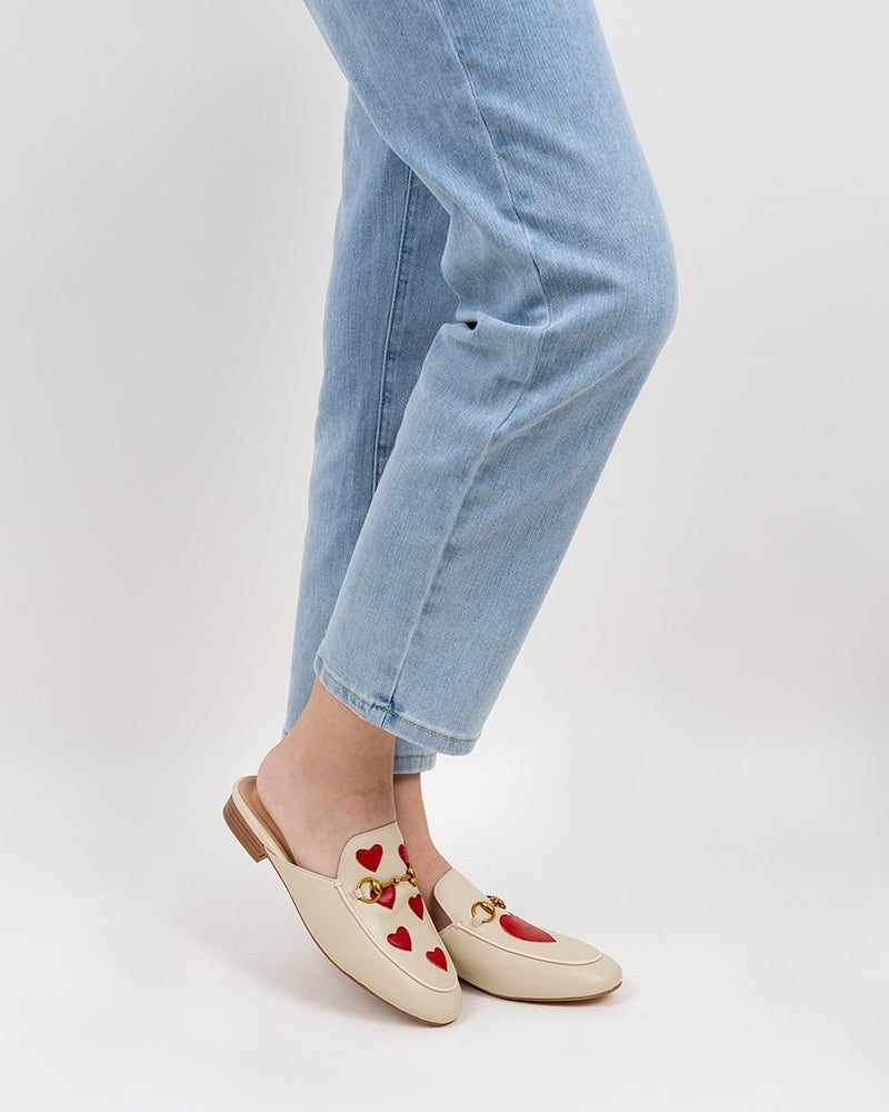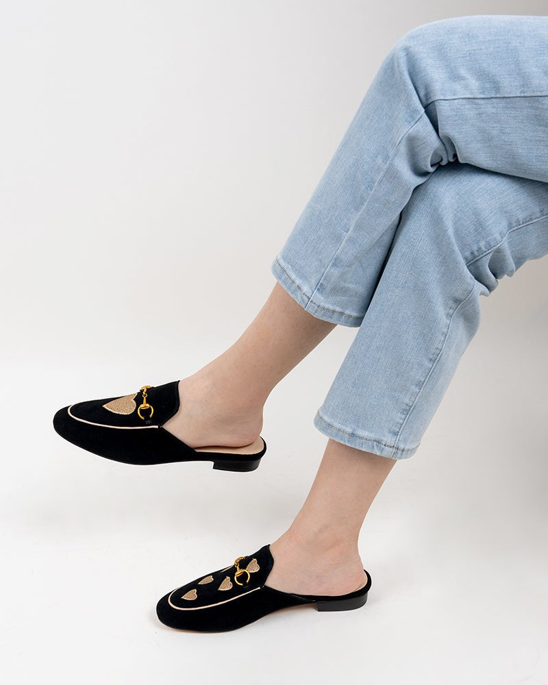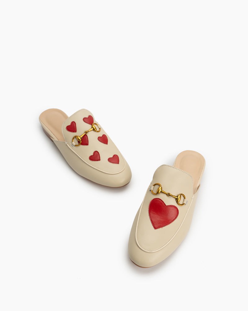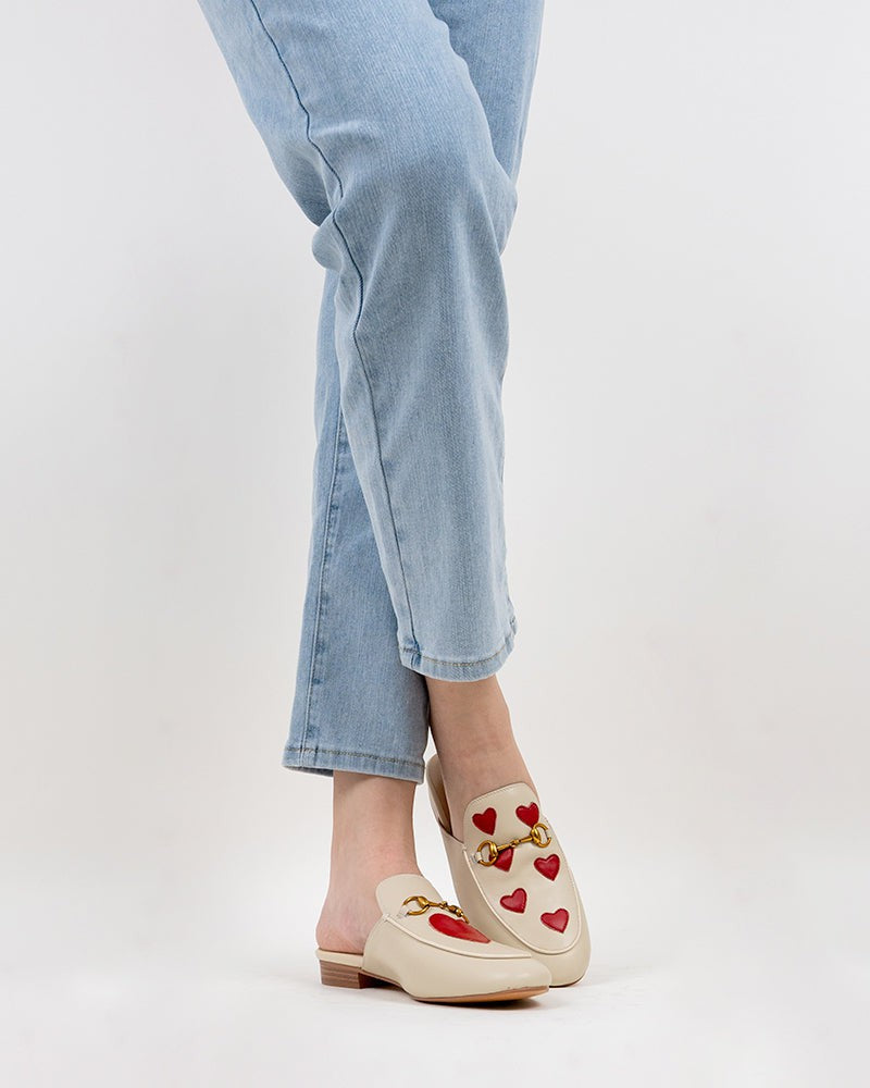Classic Metal Buckle Heart Embroidered Slip On Backless Mules
