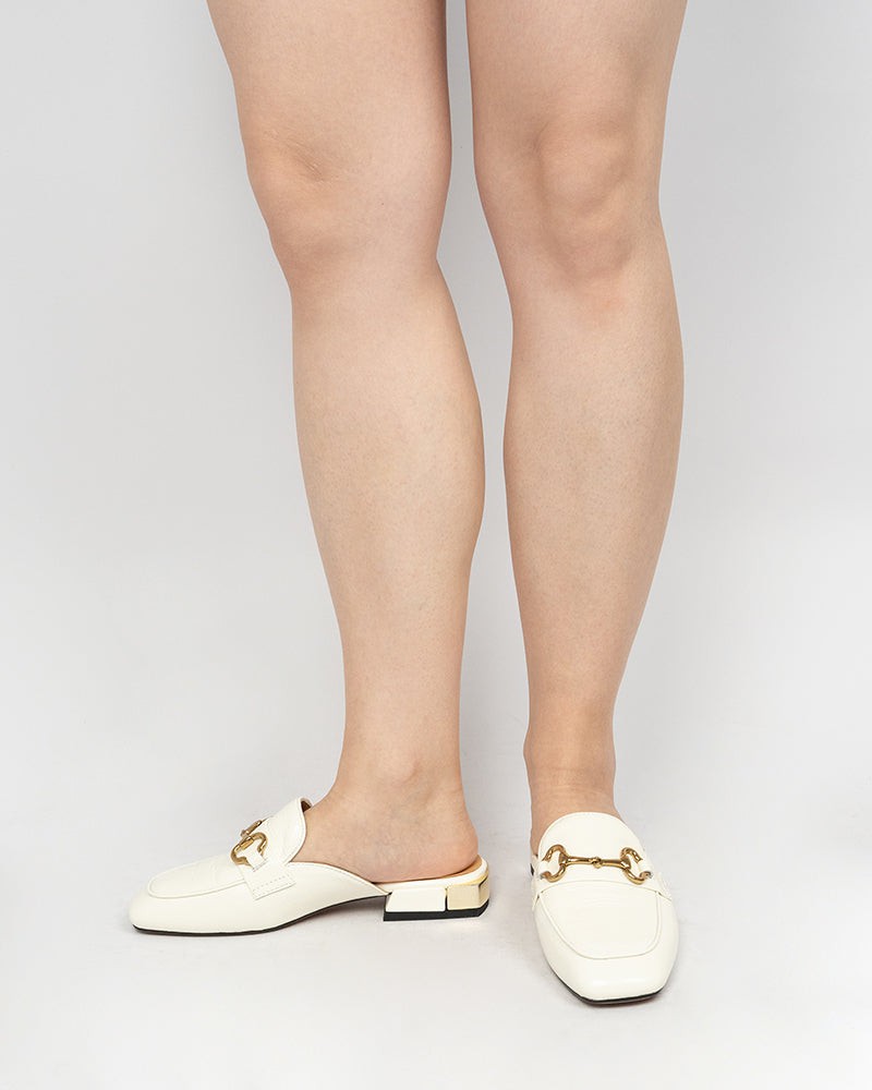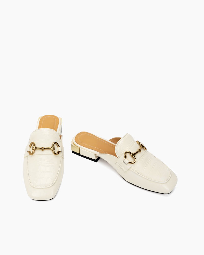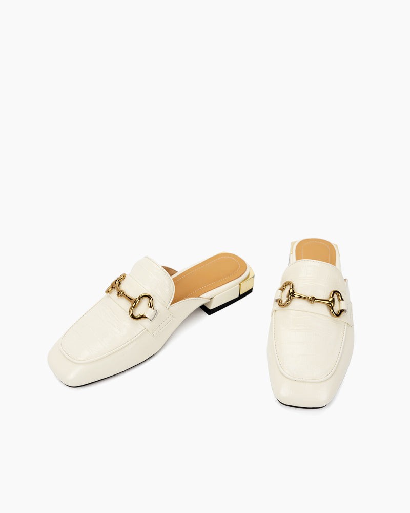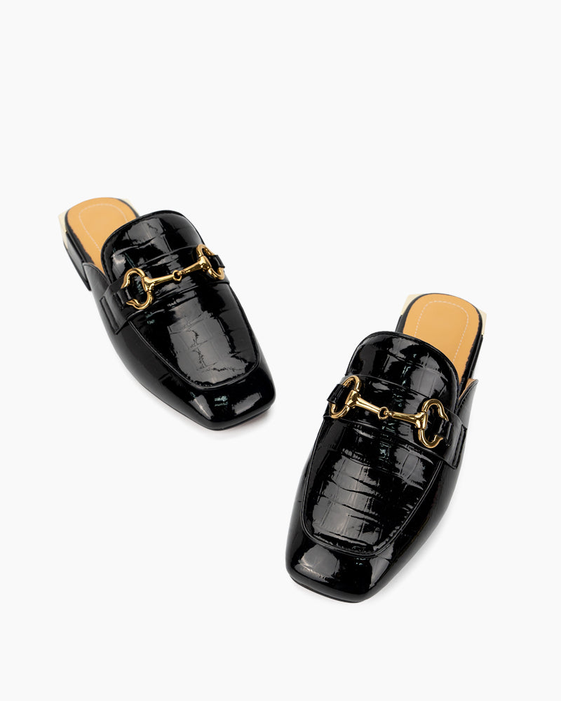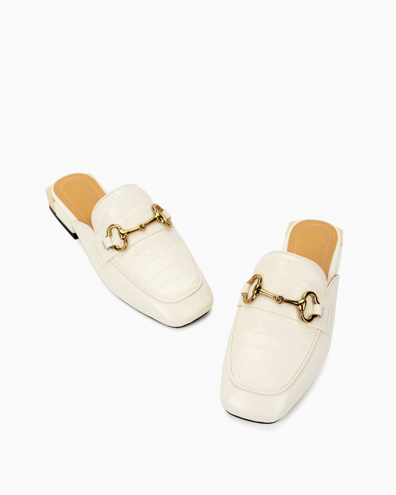 Classic Metal Buckle Leather Slipper Flat Mules