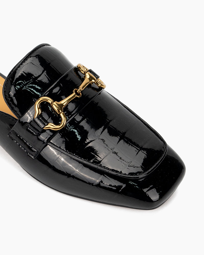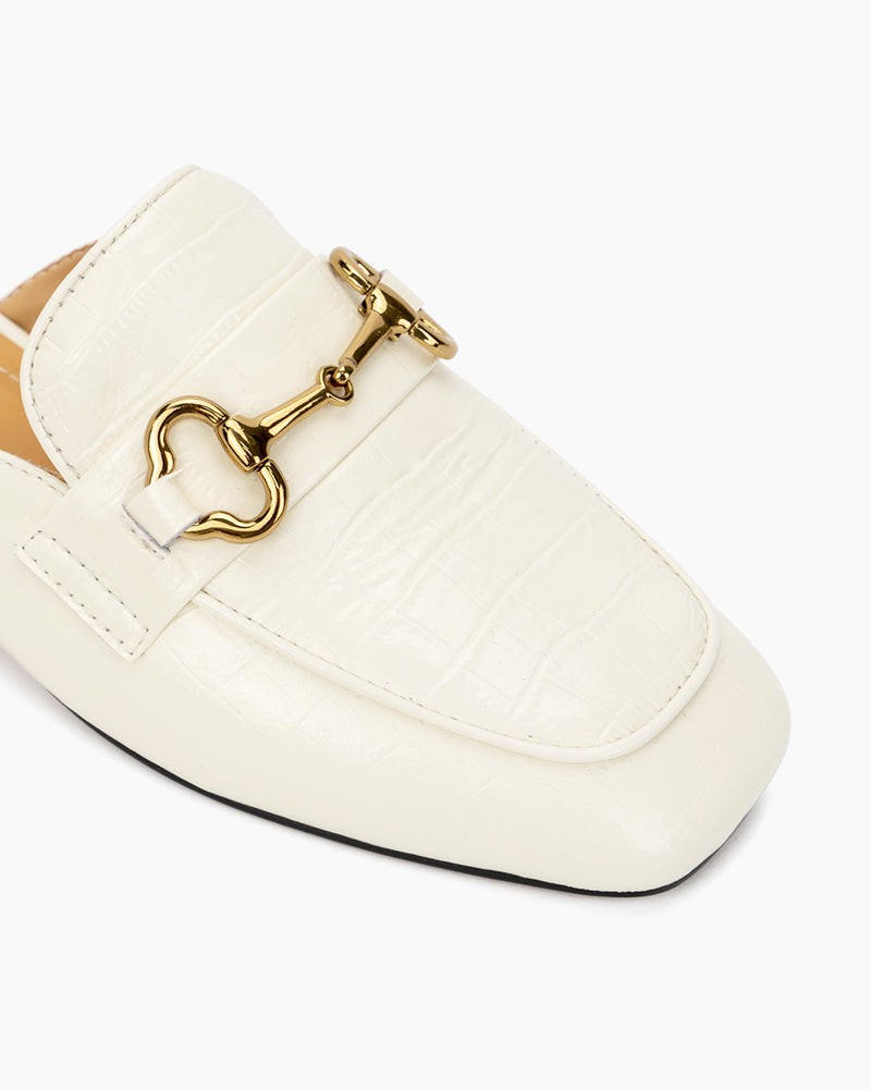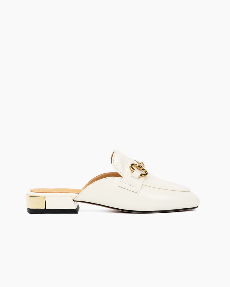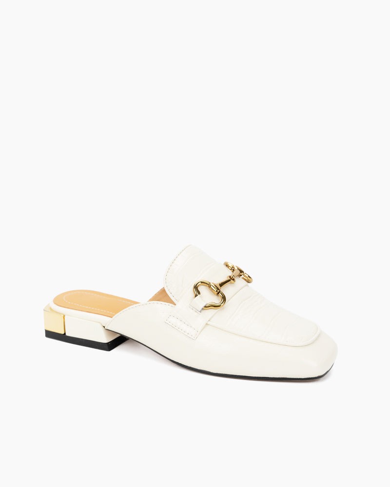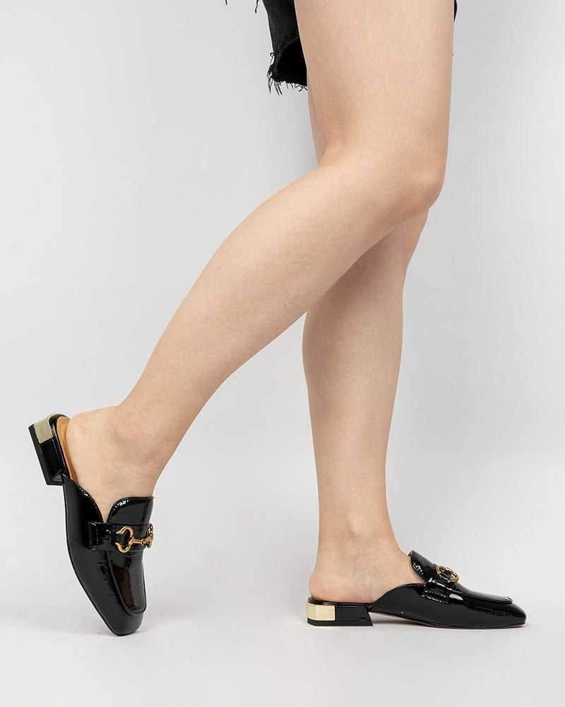 Classic Metal Buckle Leather Slipper Flat Mules