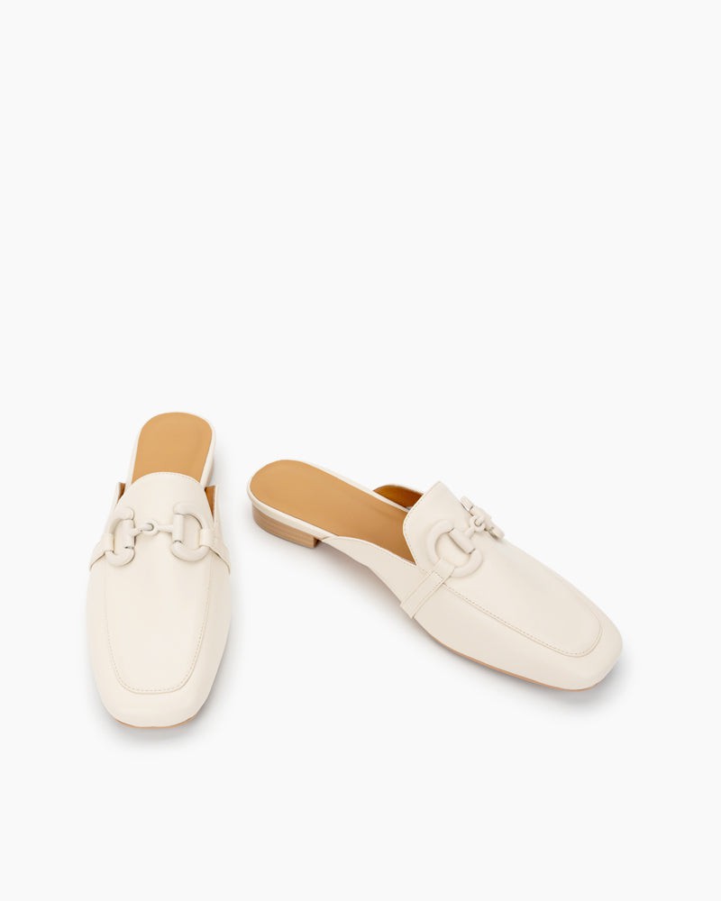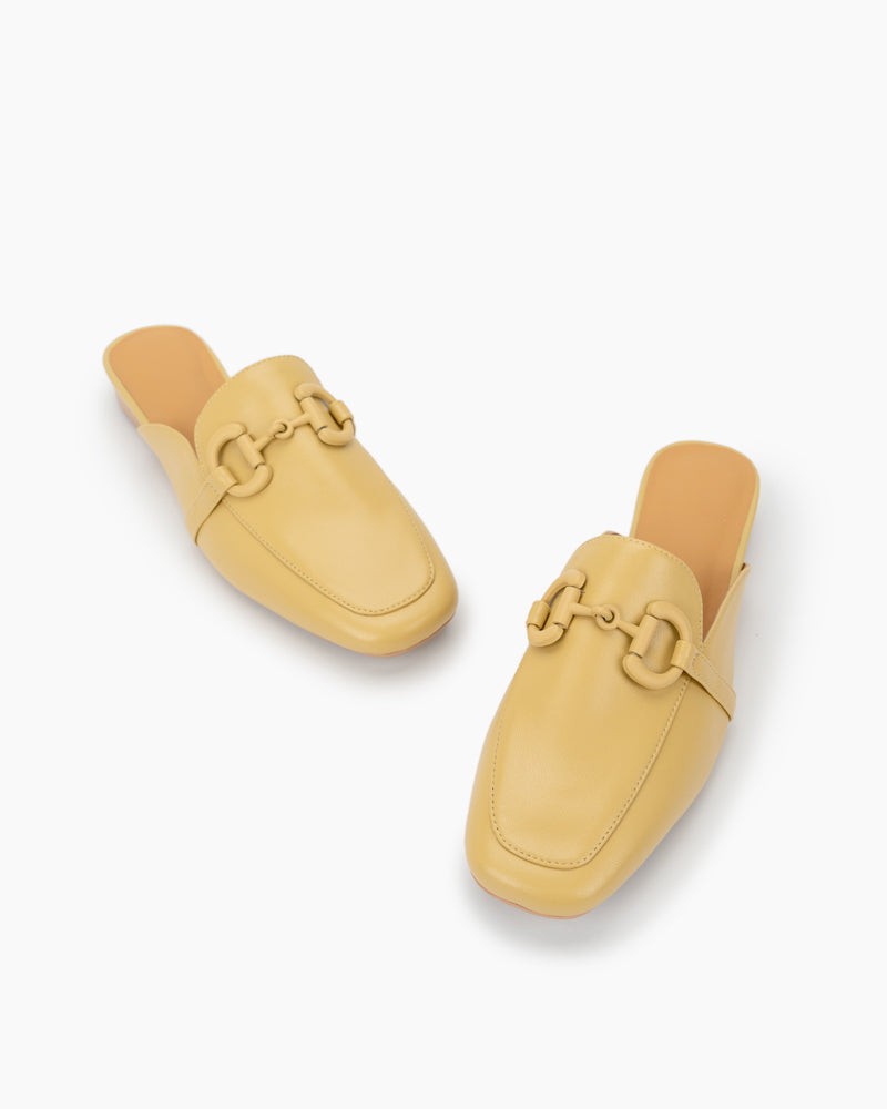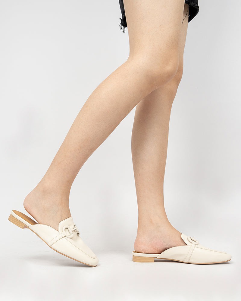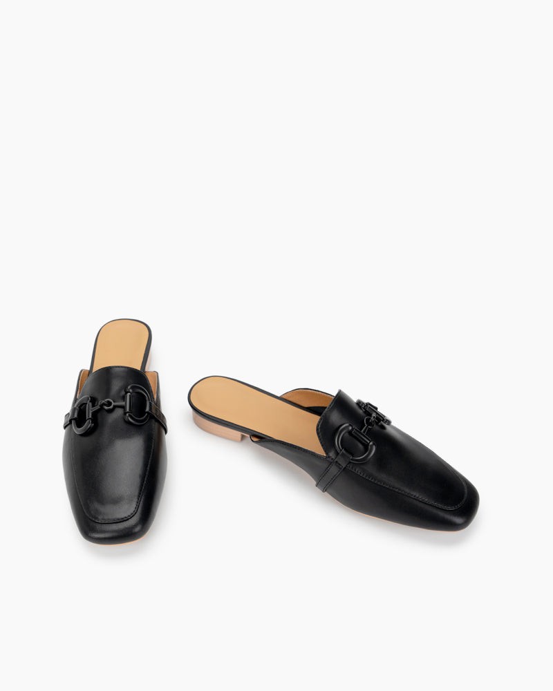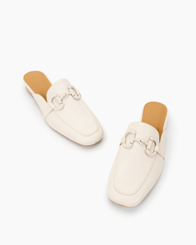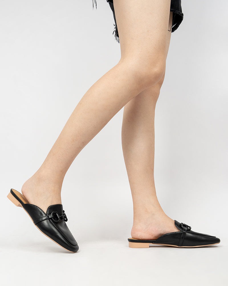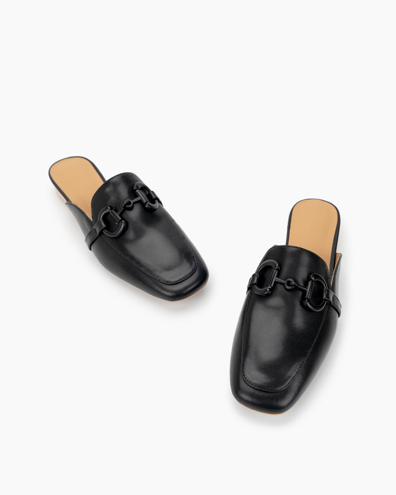 Classic Metal Buckle Round Toe Backless Flat Slides Mules