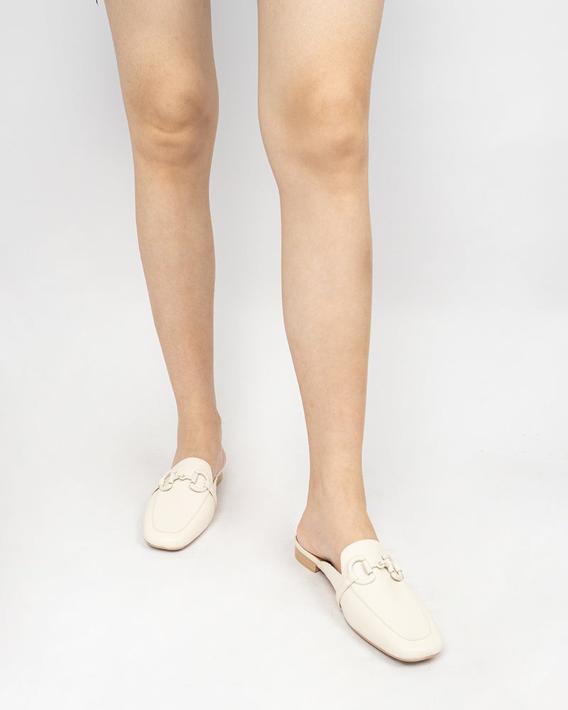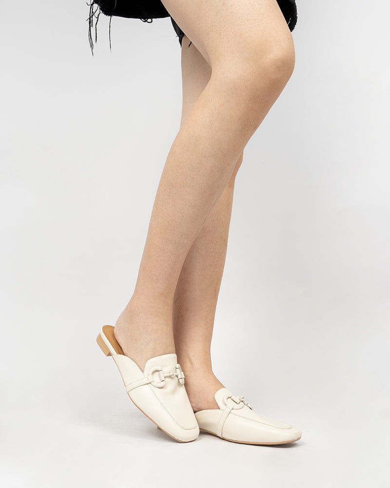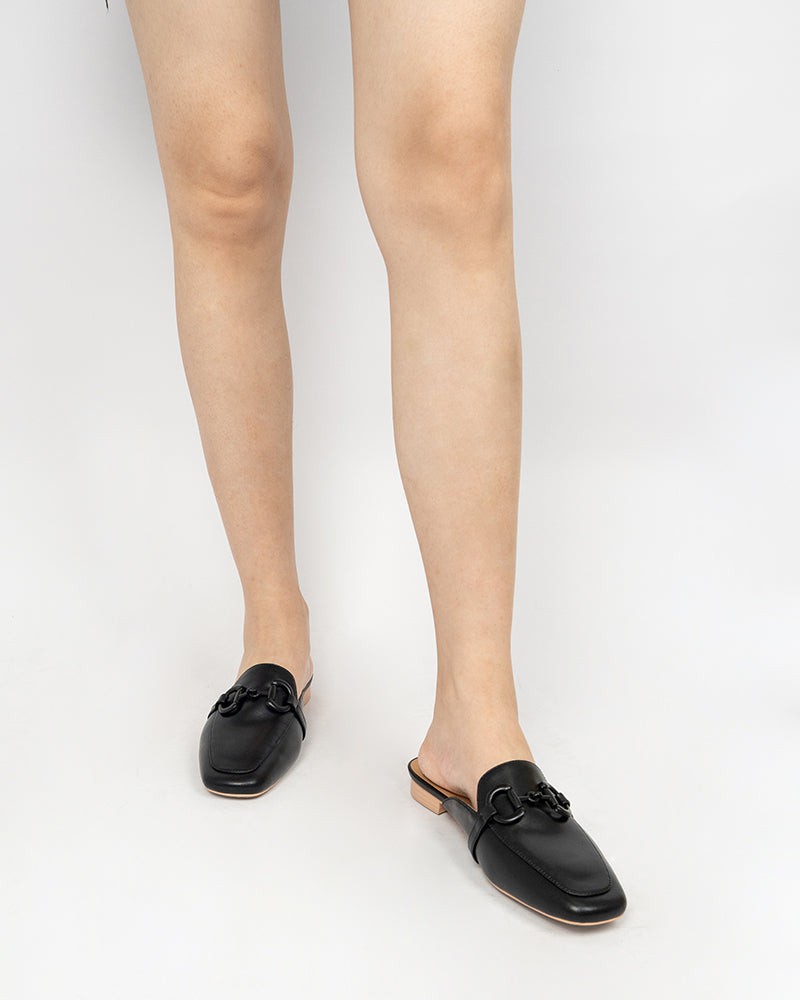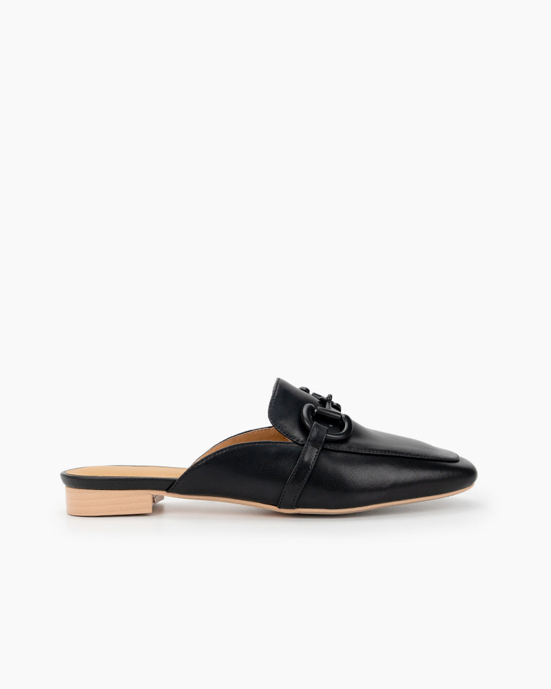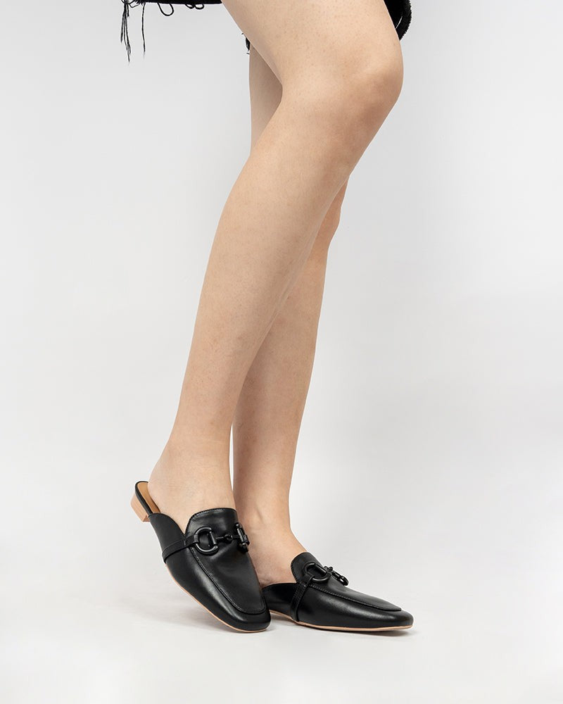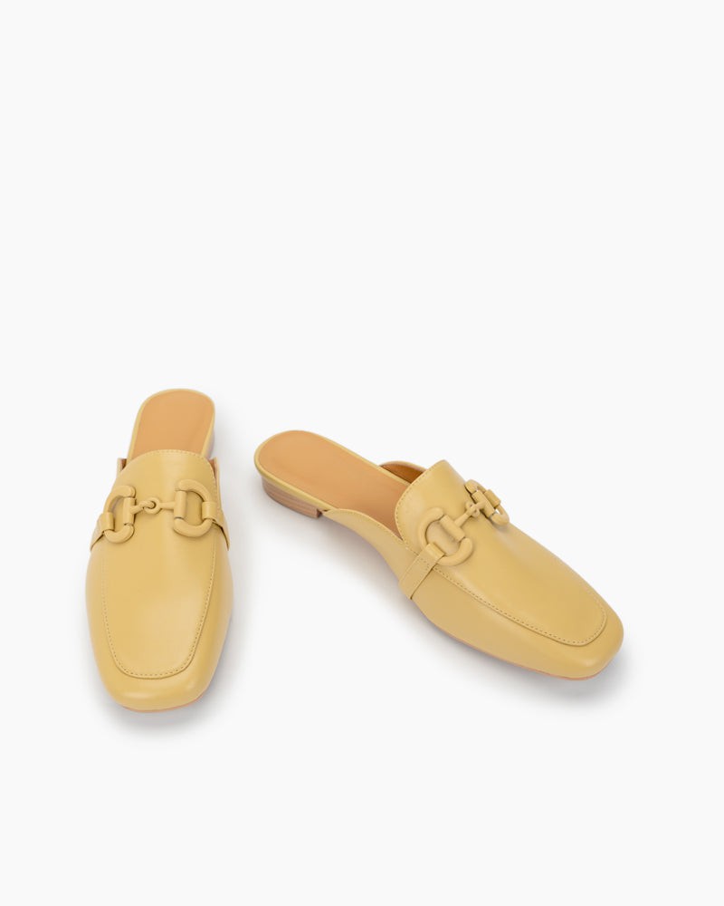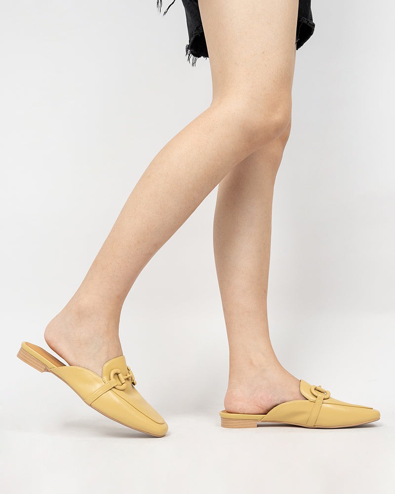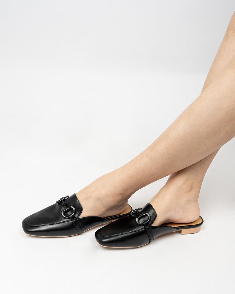 Classic Metal Buckle Round Toe Backless Flat Slides Mules