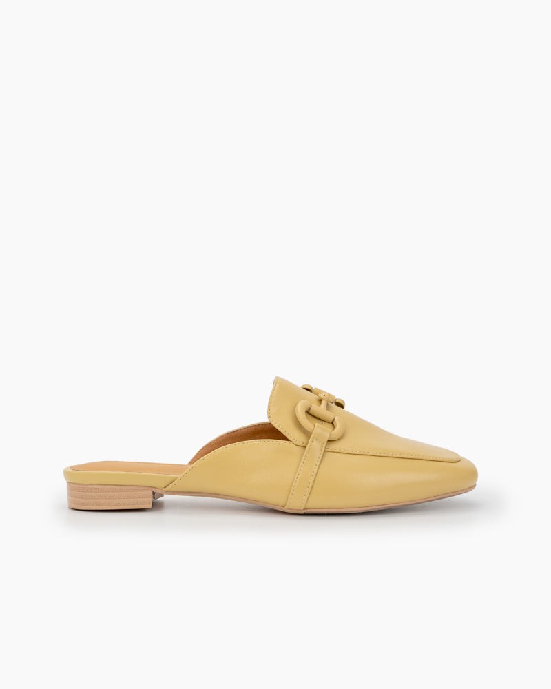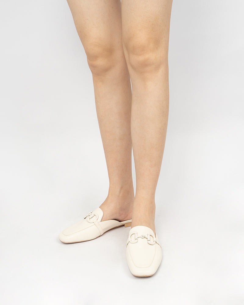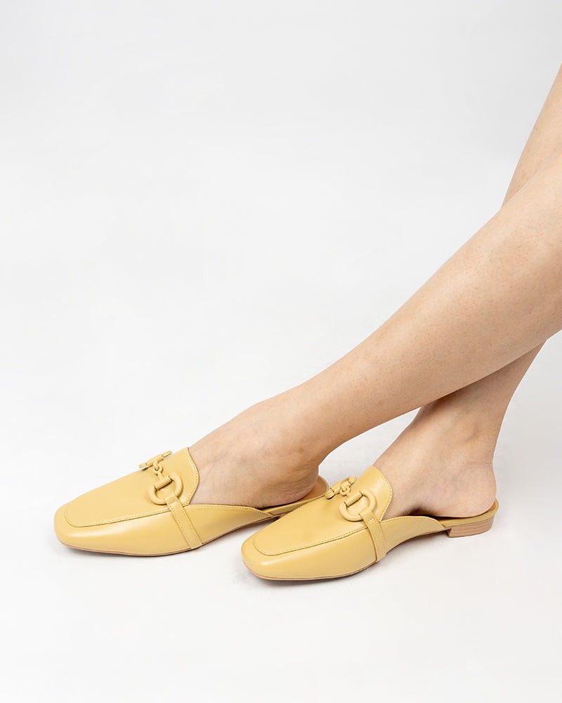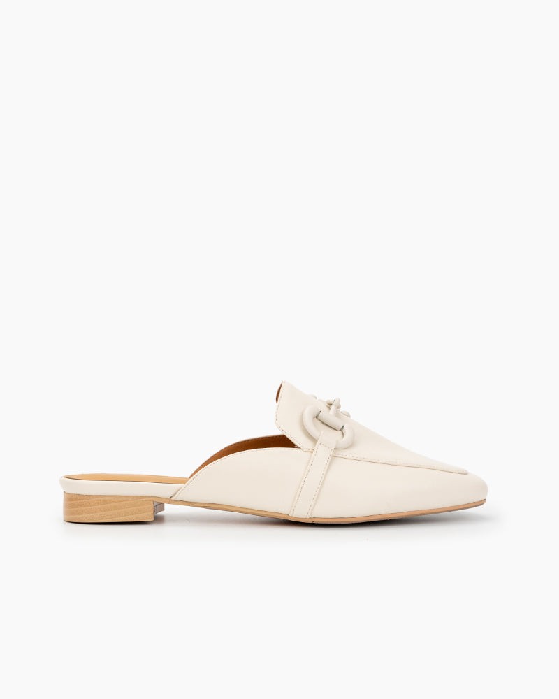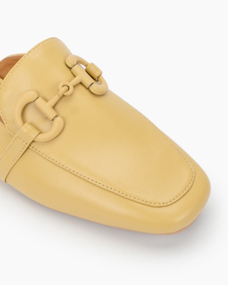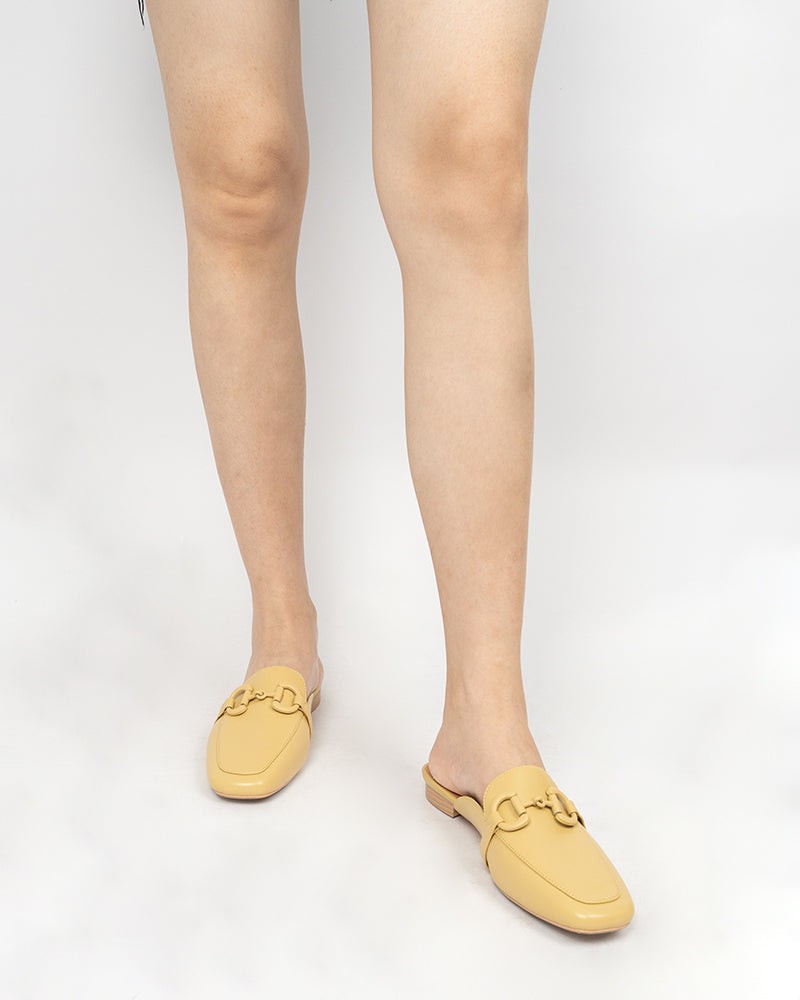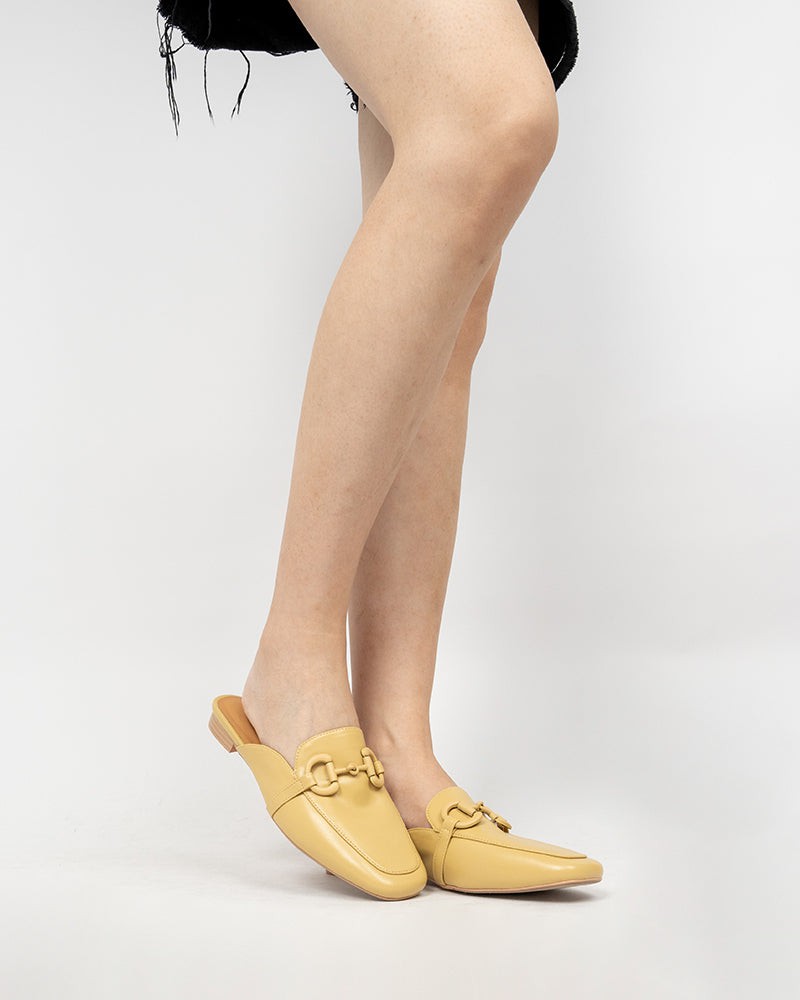 Classic Metal Buckle Round Toe Backless Flat Slides Mules