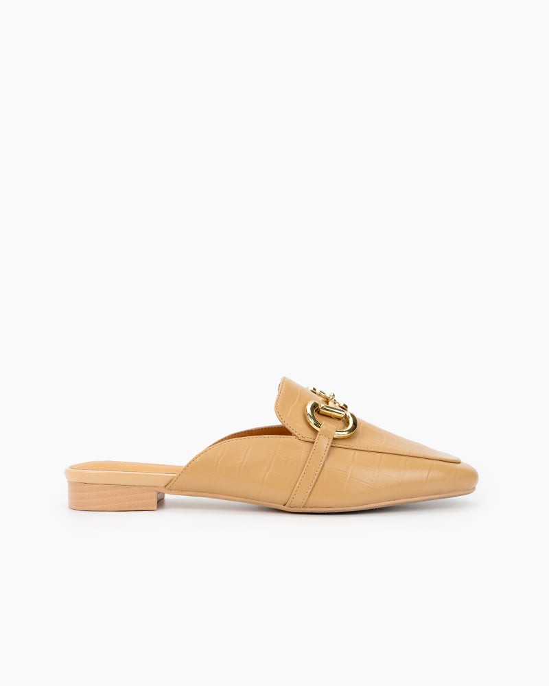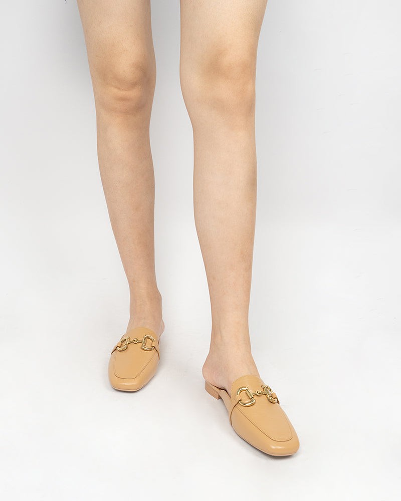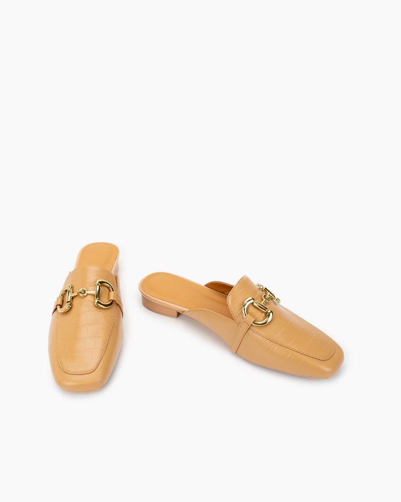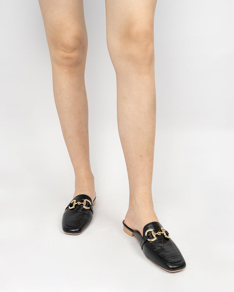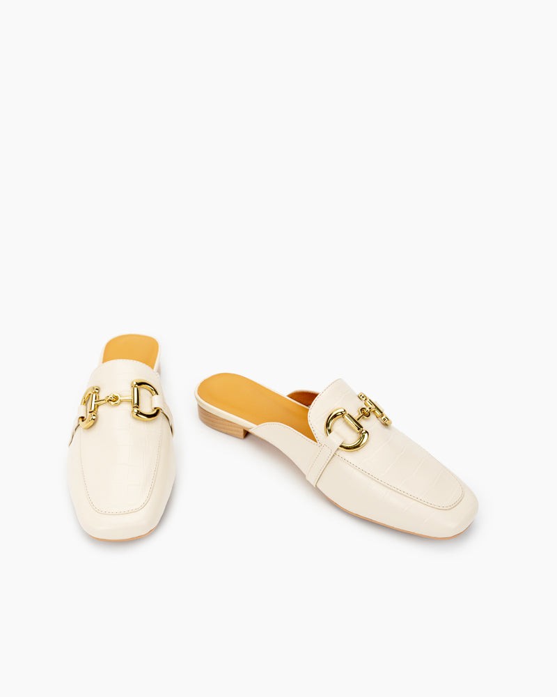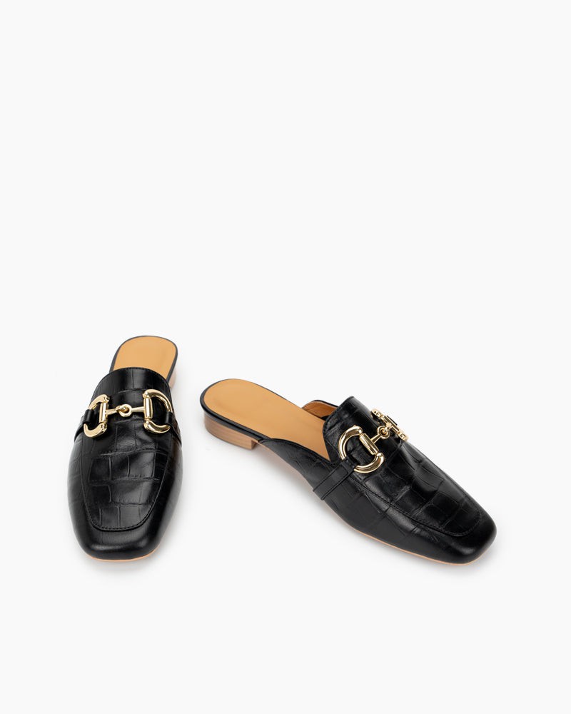 Classic Metal Buckle Square Toe Backless Slip on Slides Mules