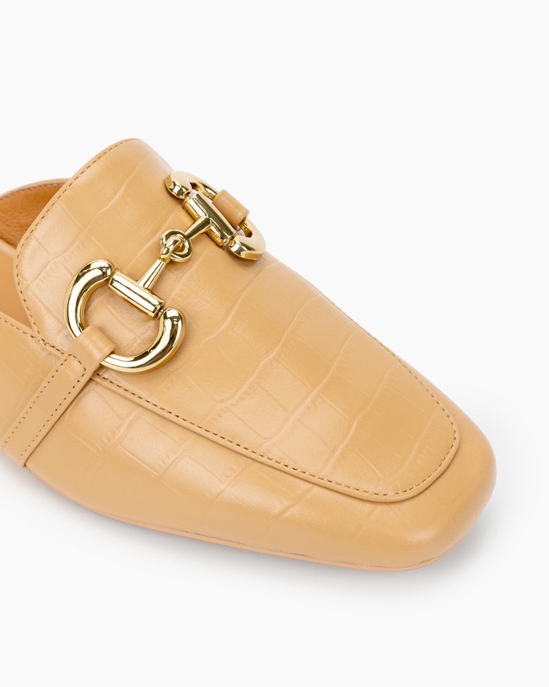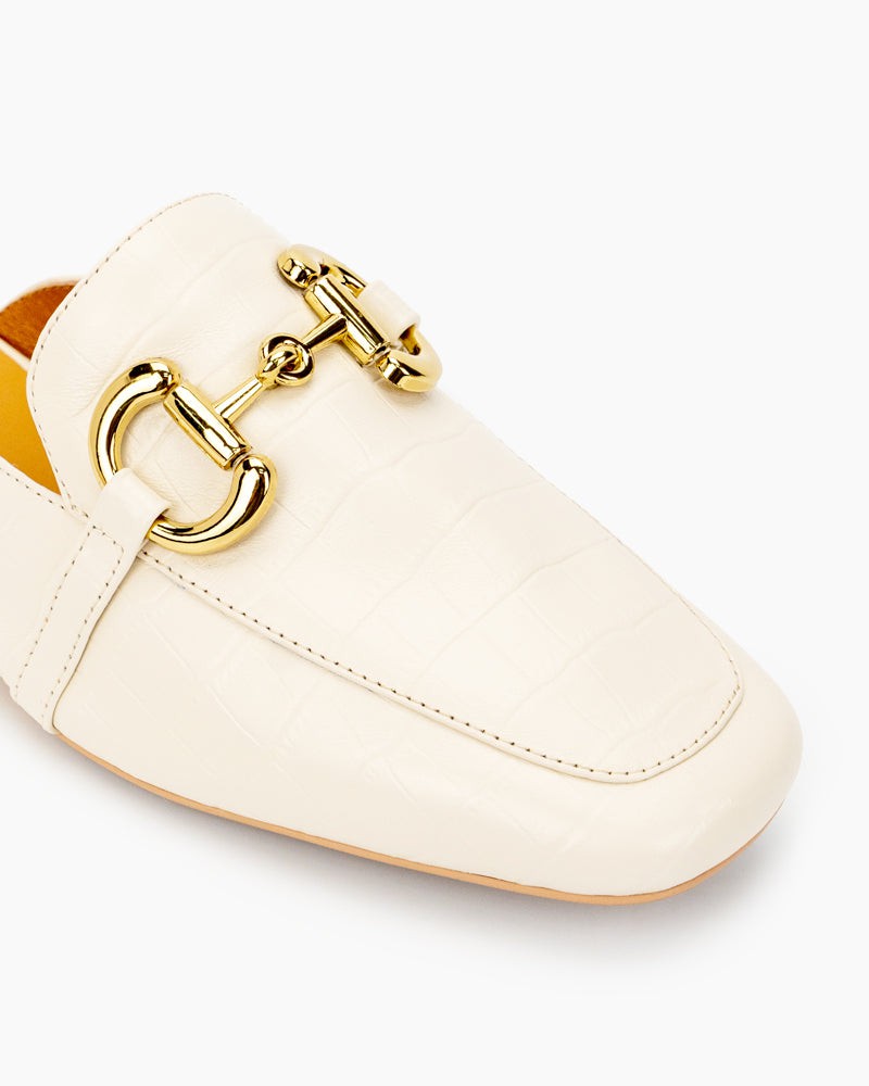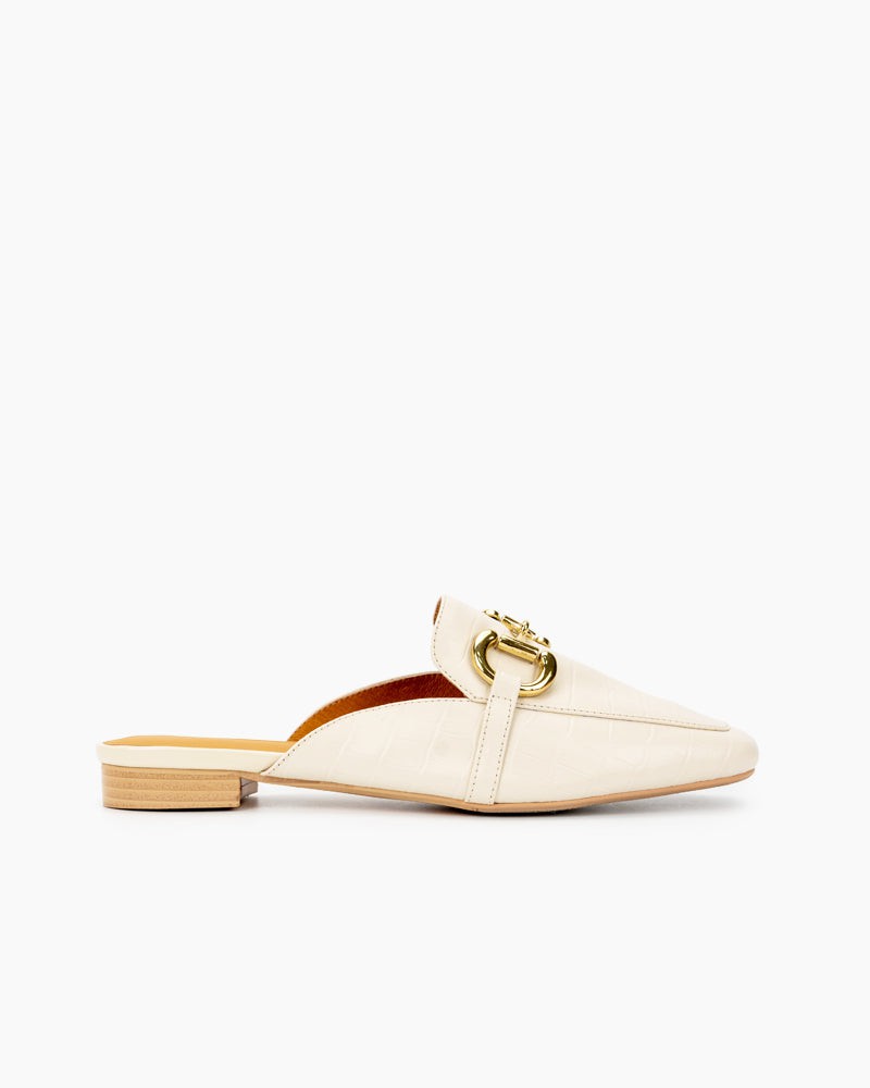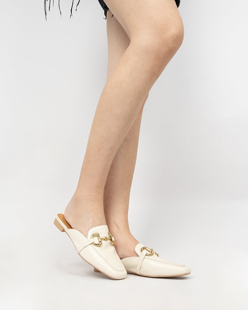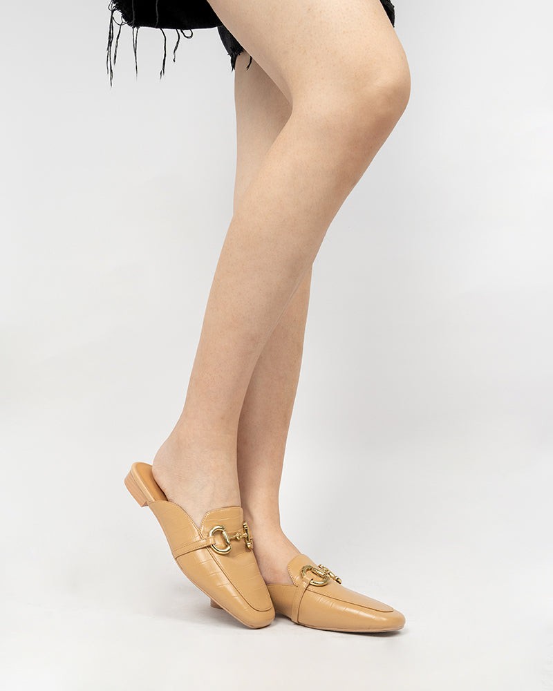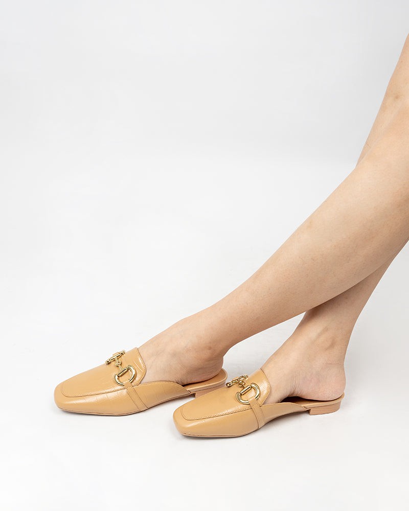 Classic Metal Buckle Square Toe Backless Slip on Slides Mules