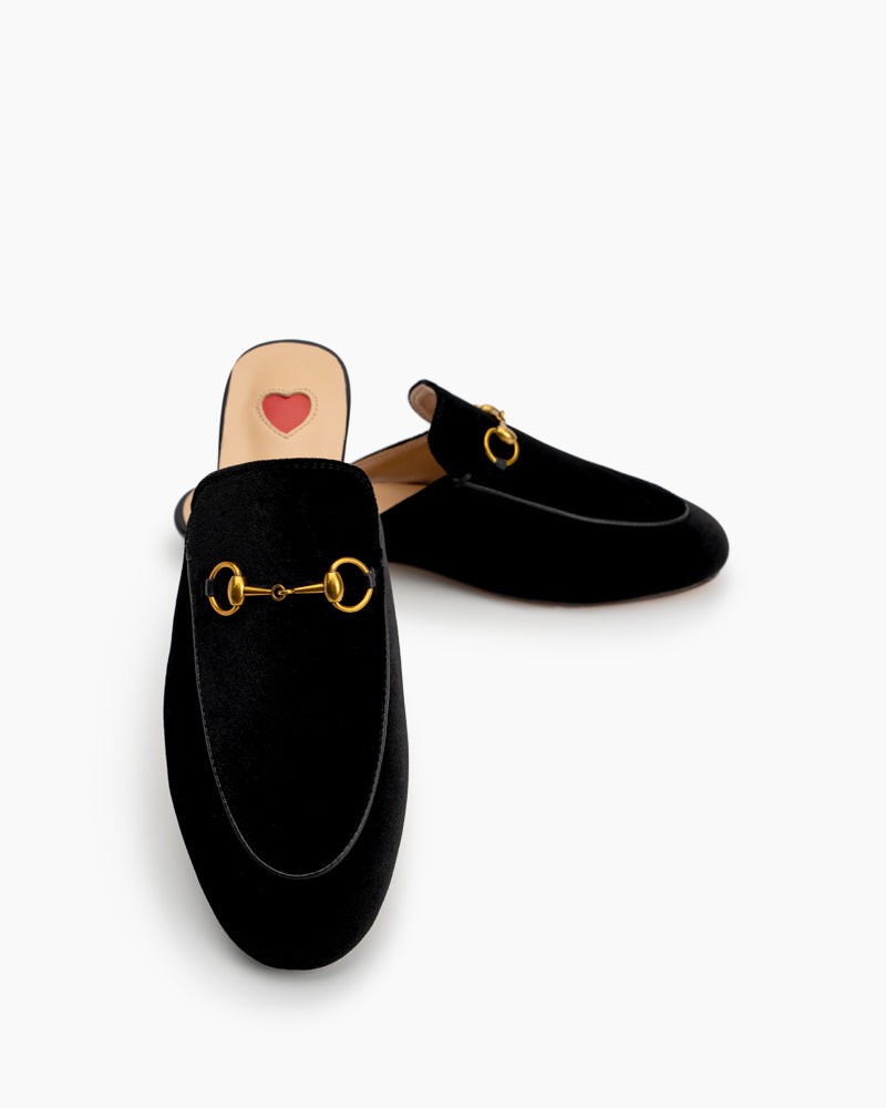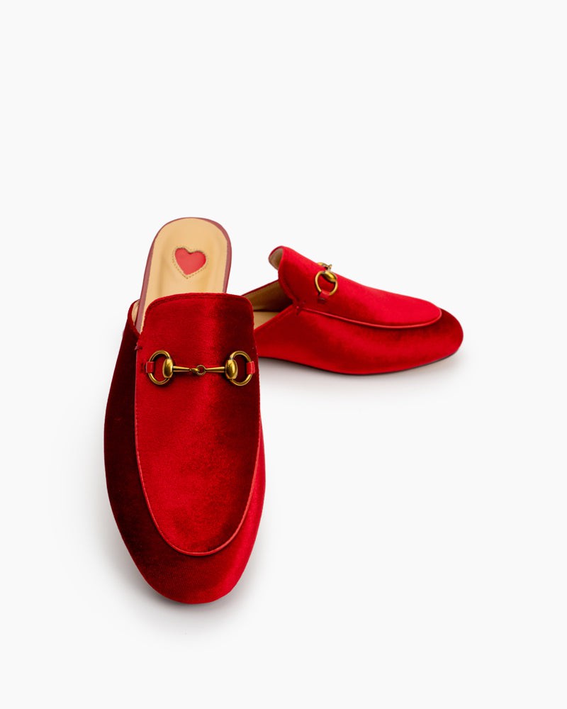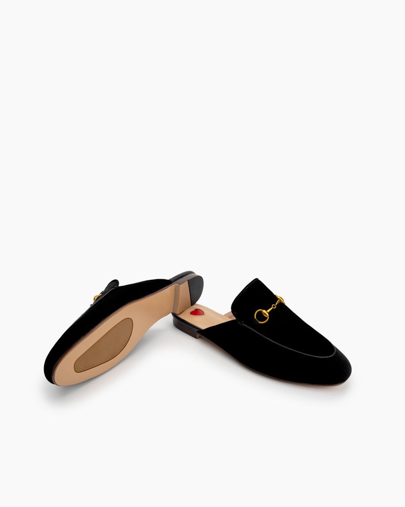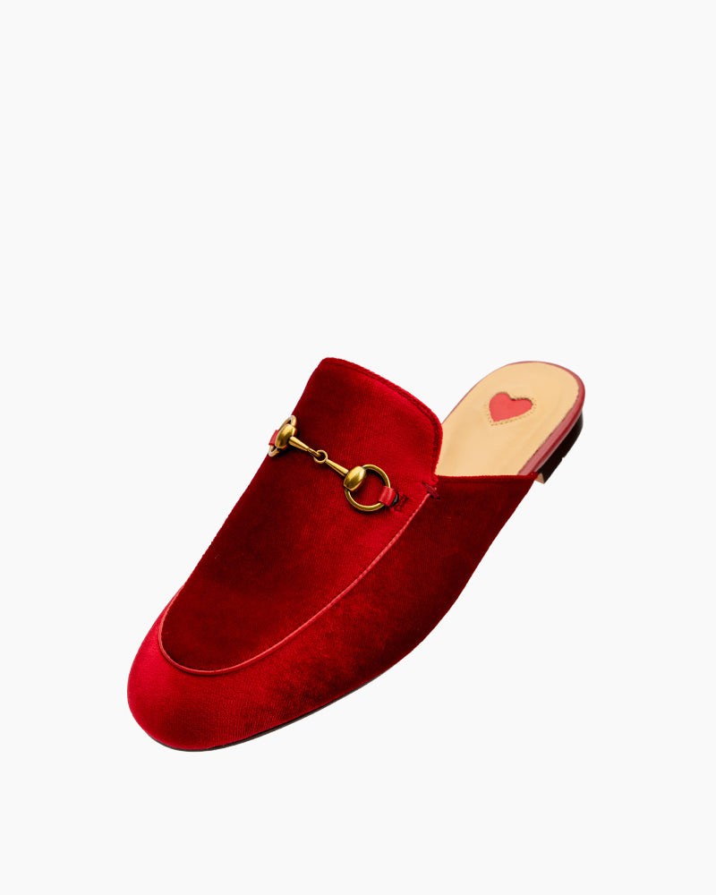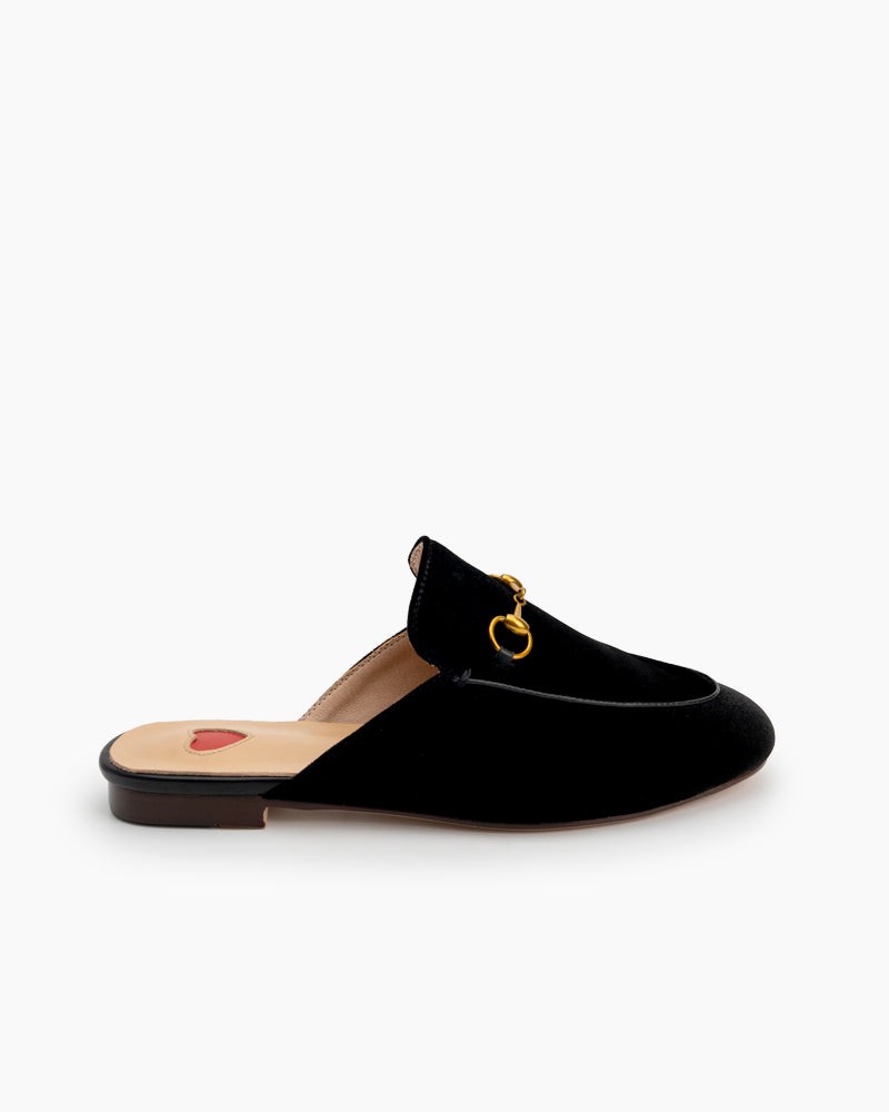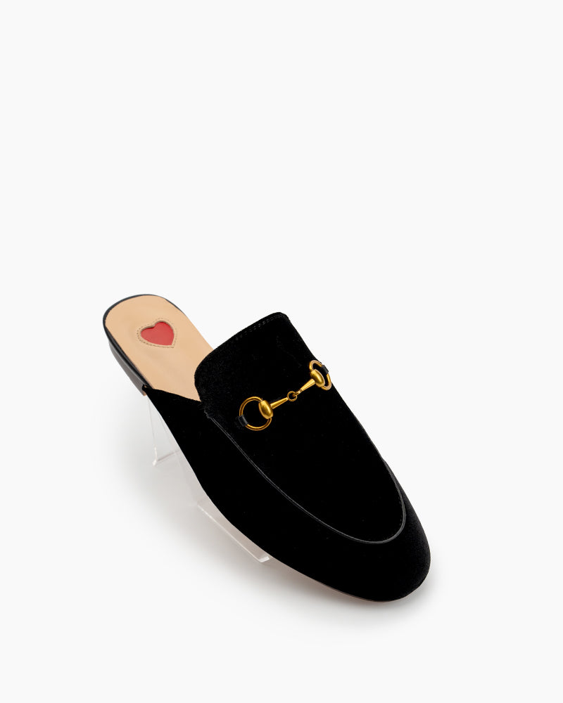 Heart Velvet Oxford Slide Slip On Flat Mules