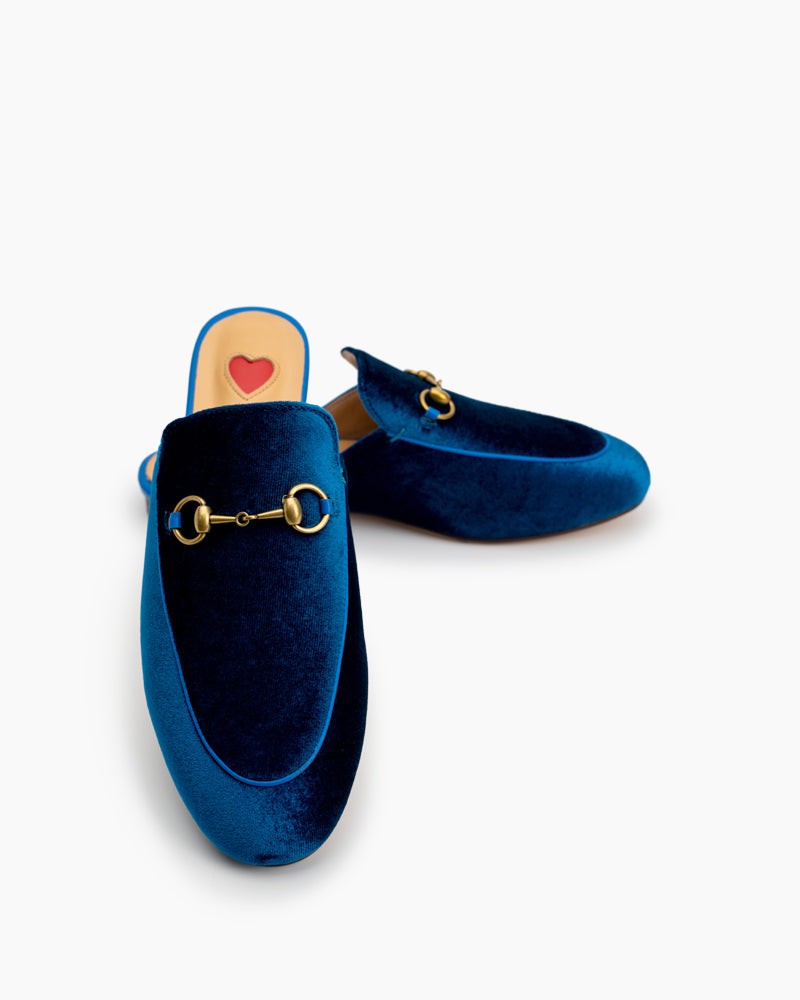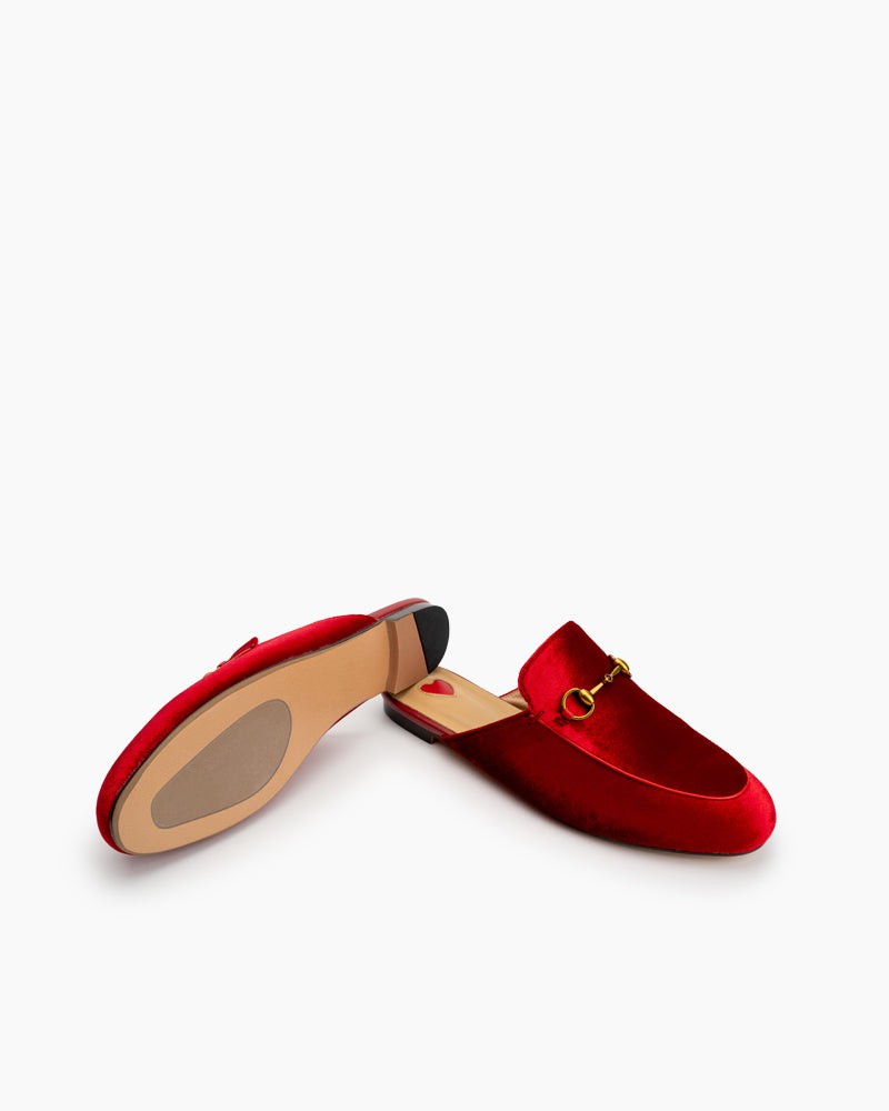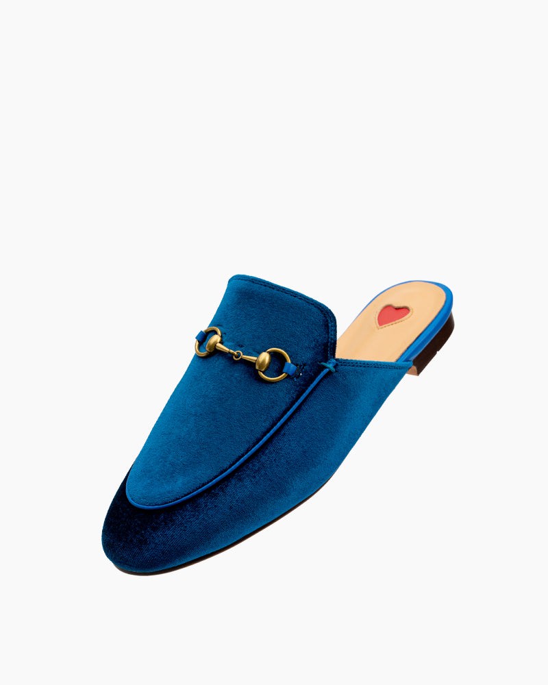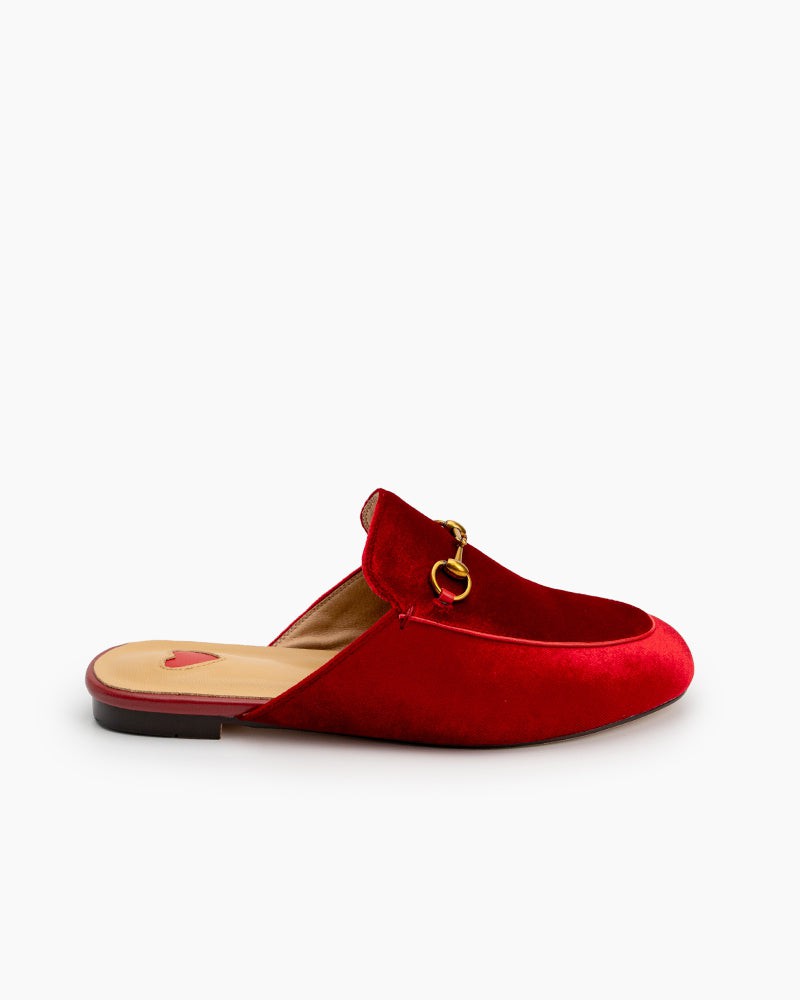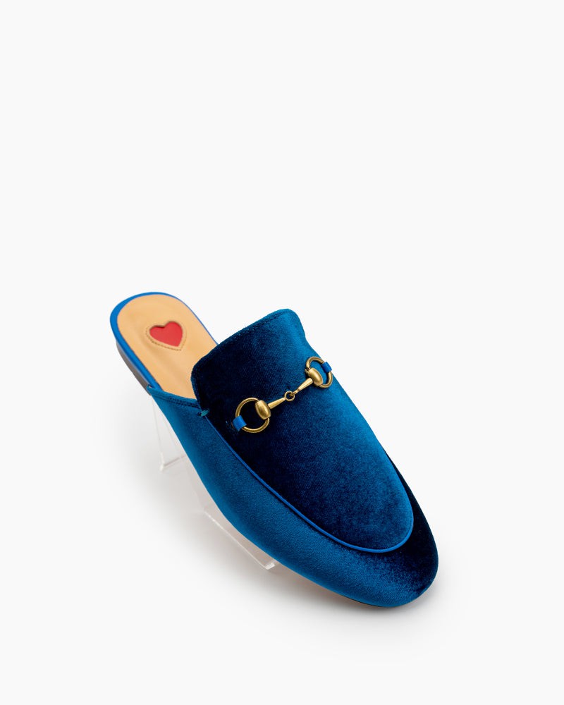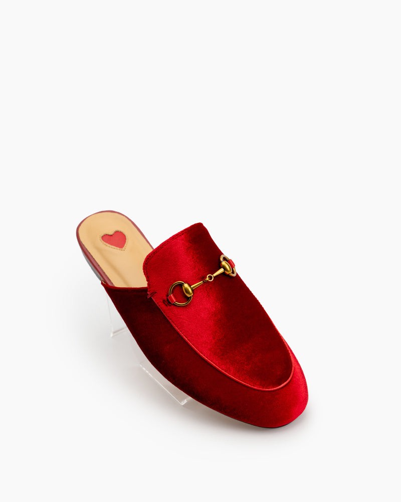 Heart Velvet Oxford Slide Slip On Flat Mules