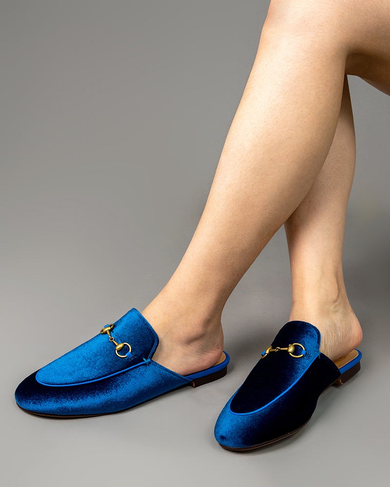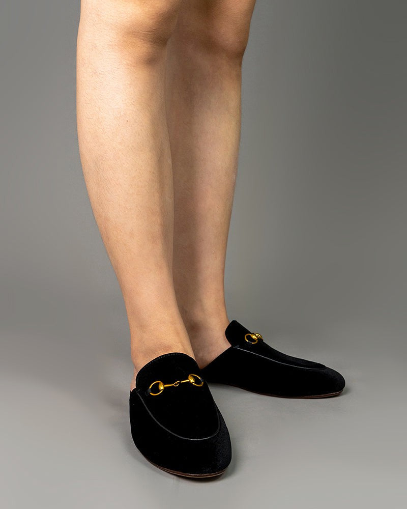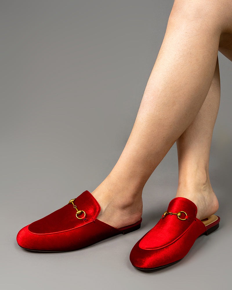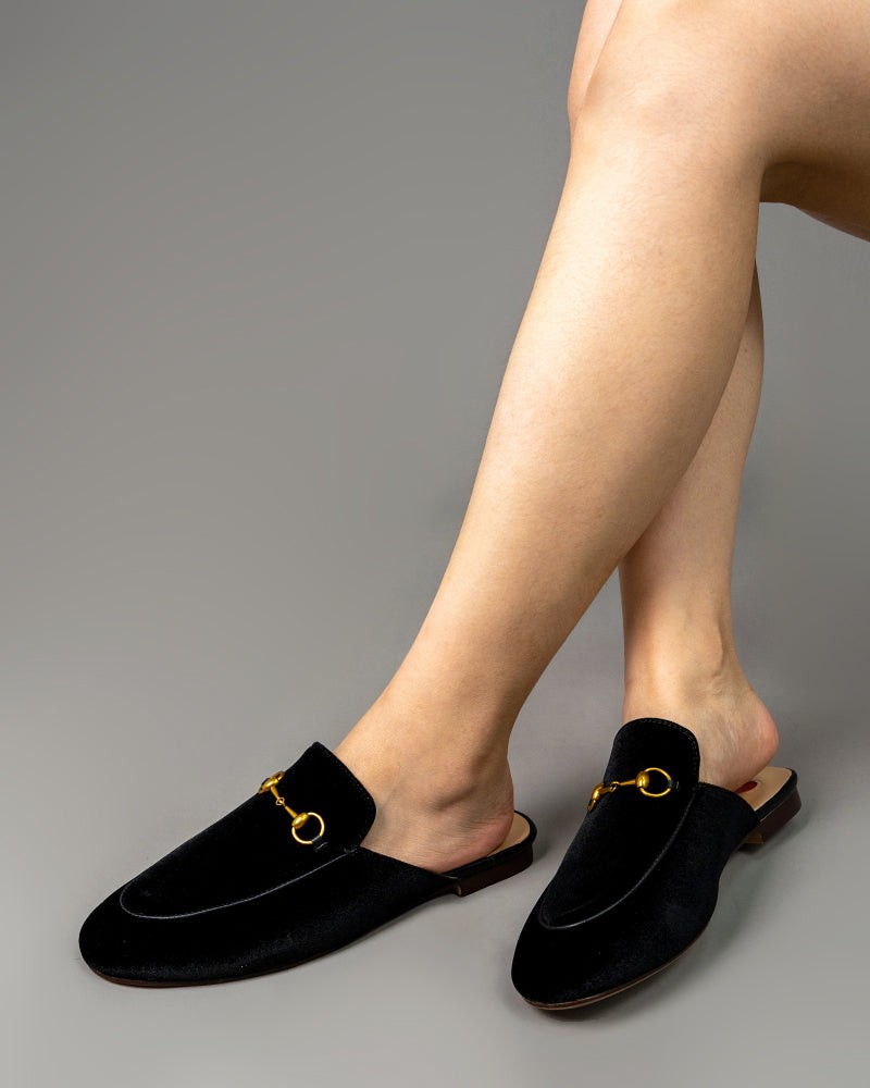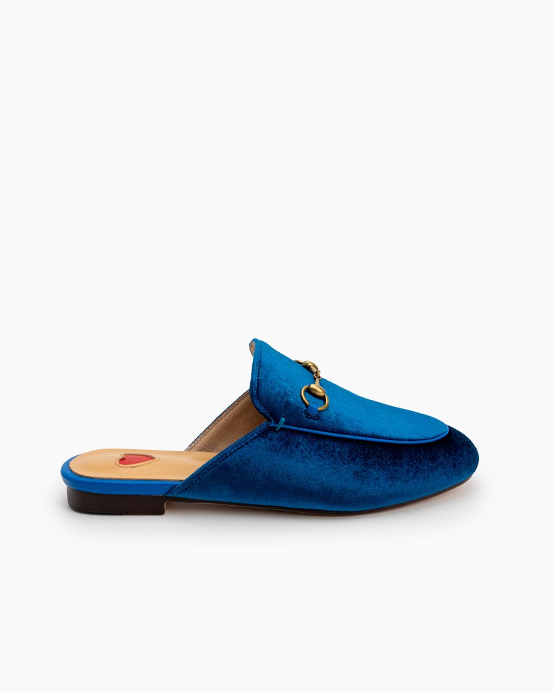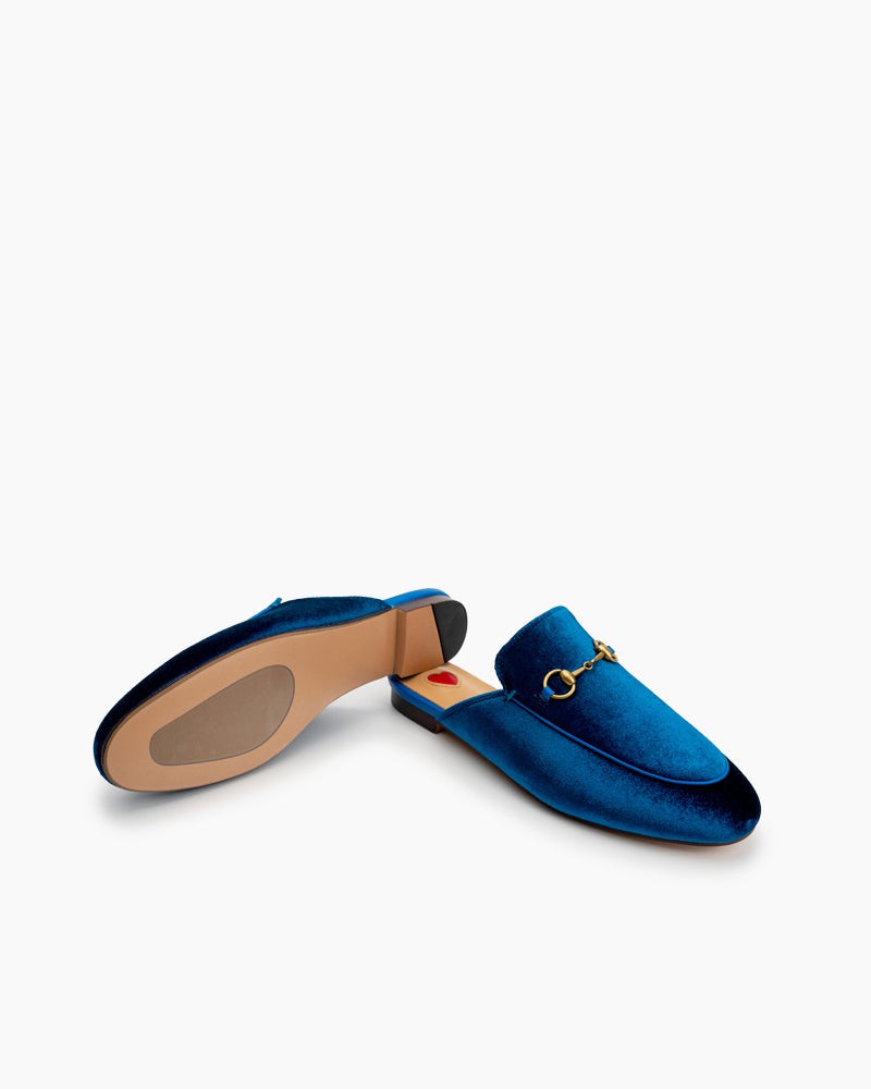 Heart Velvet Oxford Slide Slip On Flat Mules