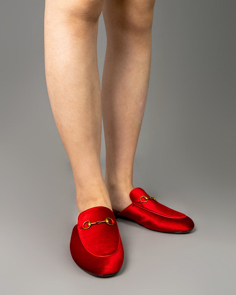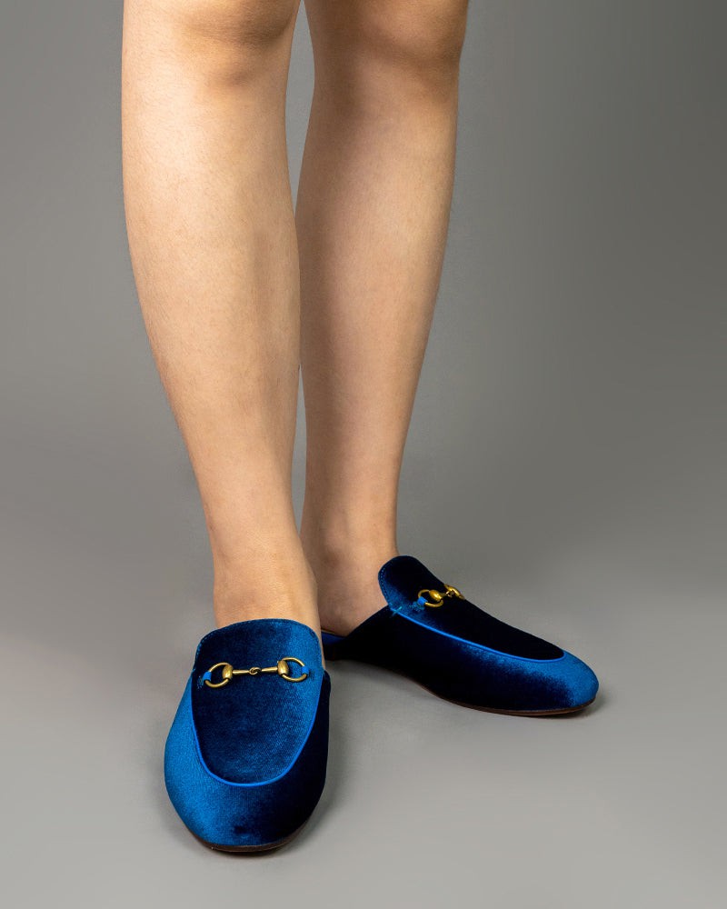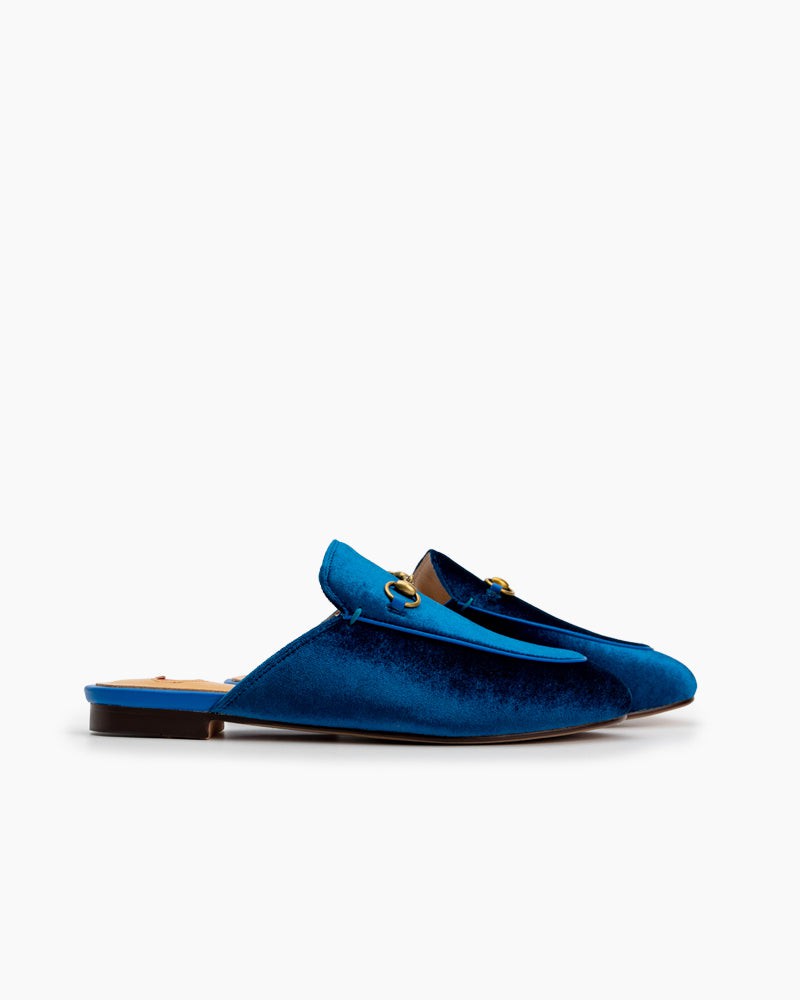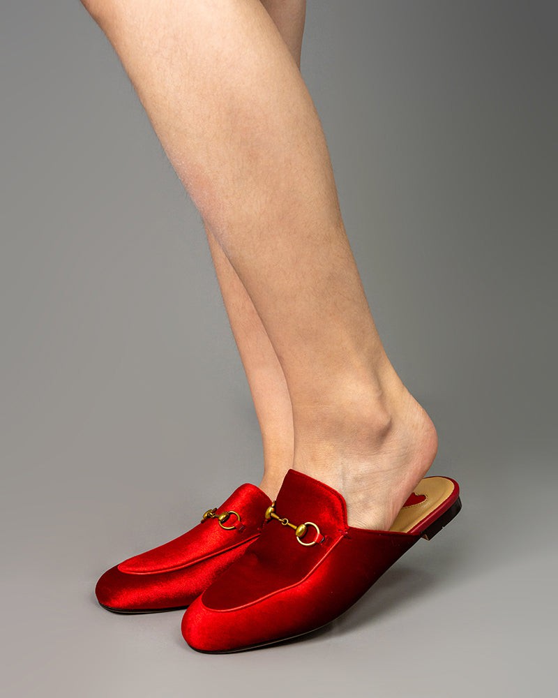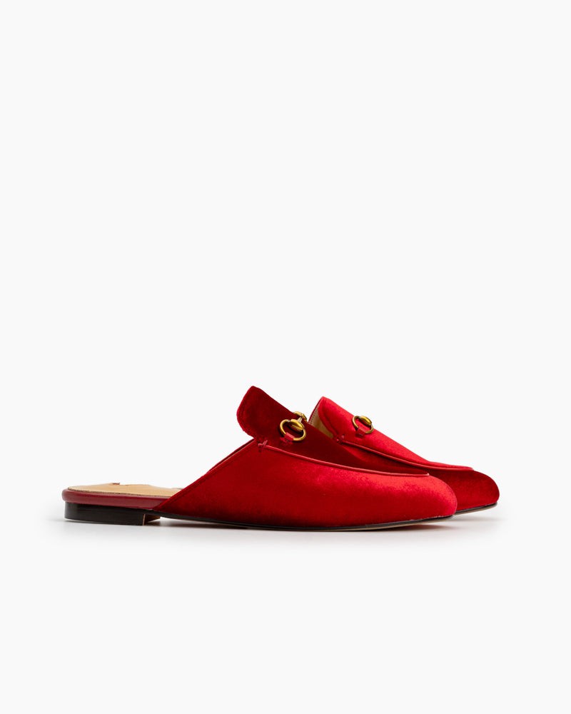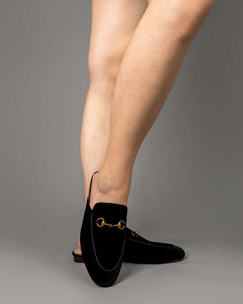 Heart Velvet Oxford Slide Slip On Flat Mules