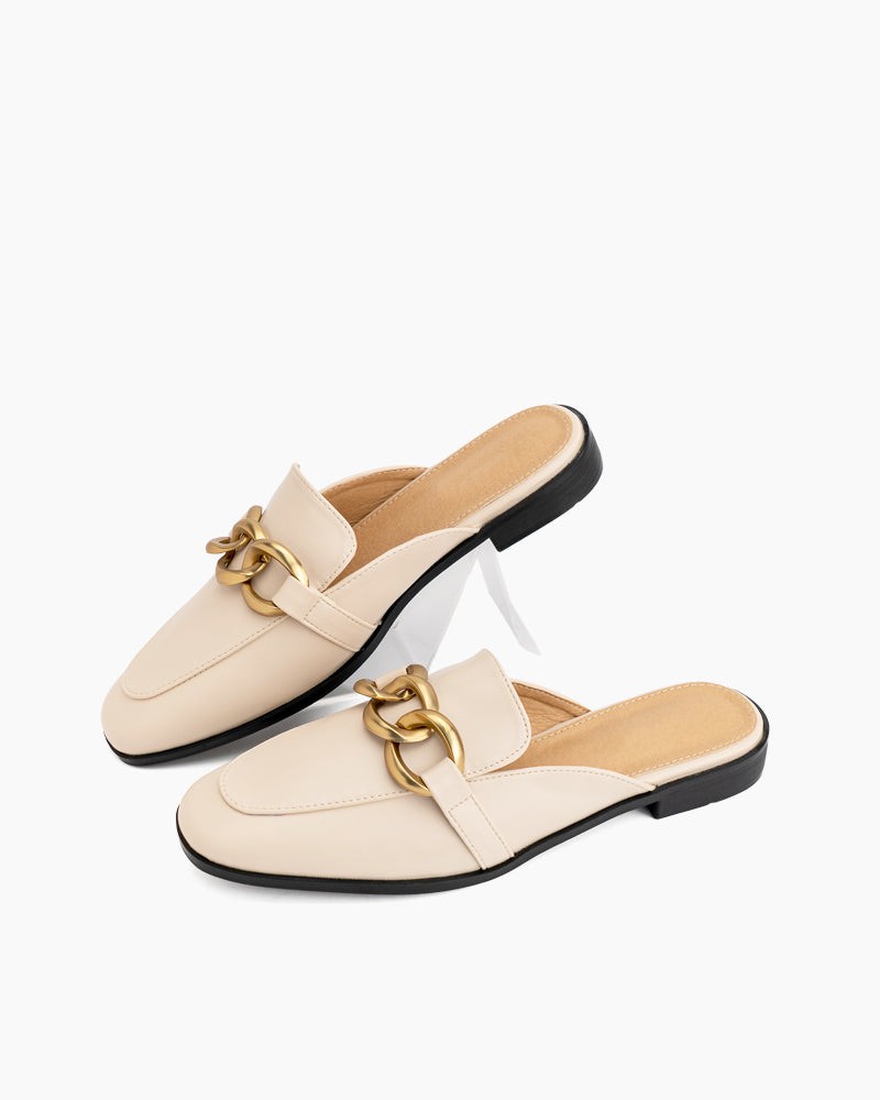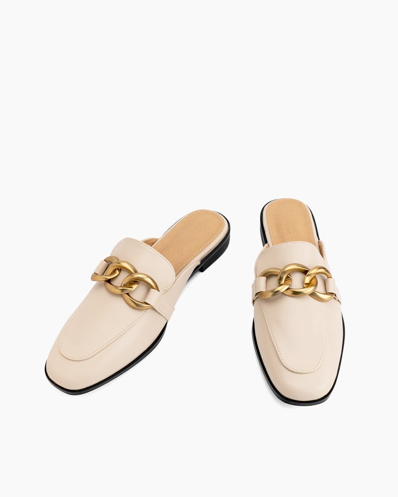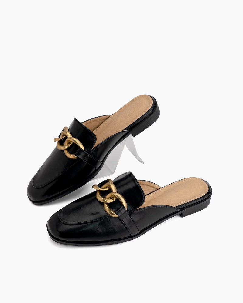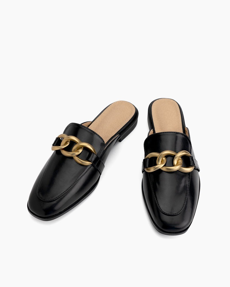 Metal Chain Decor Backless Flat Mules