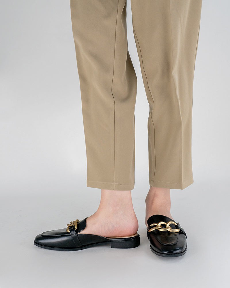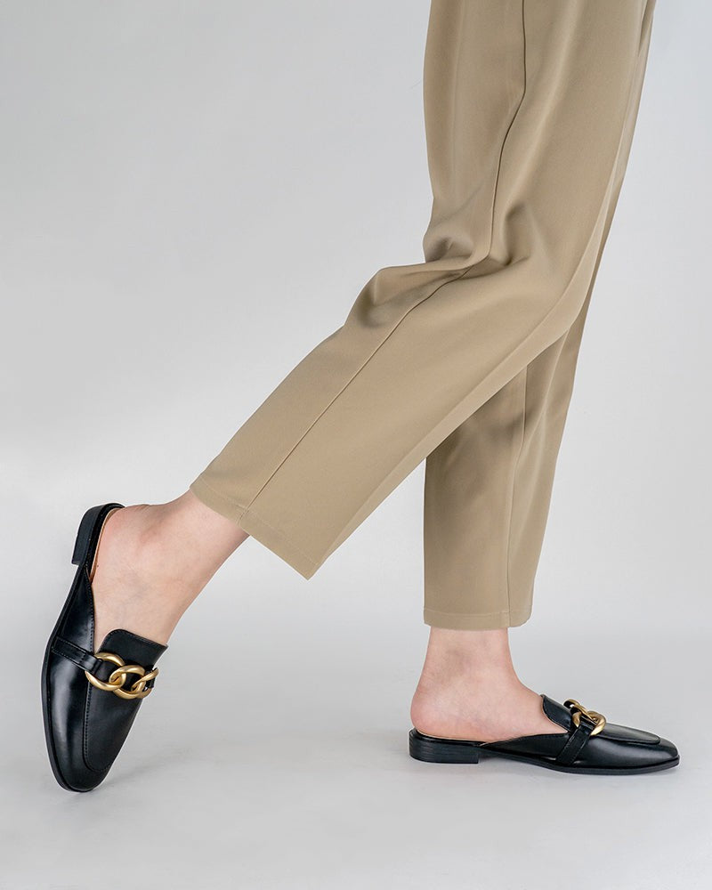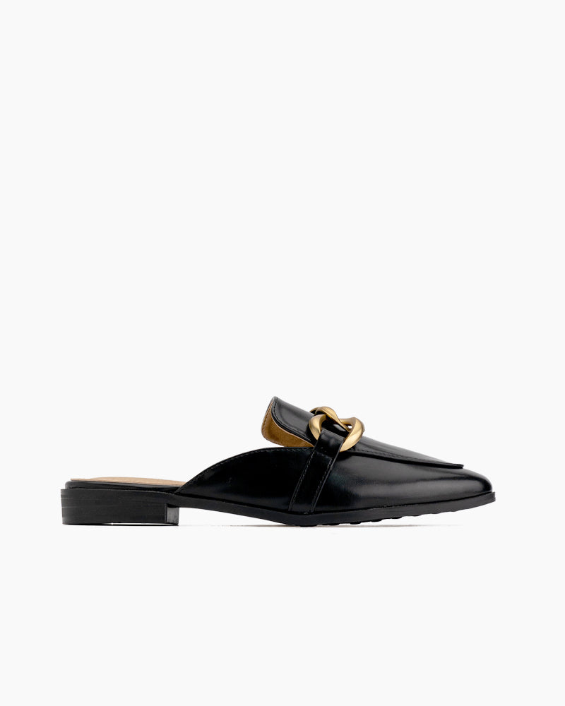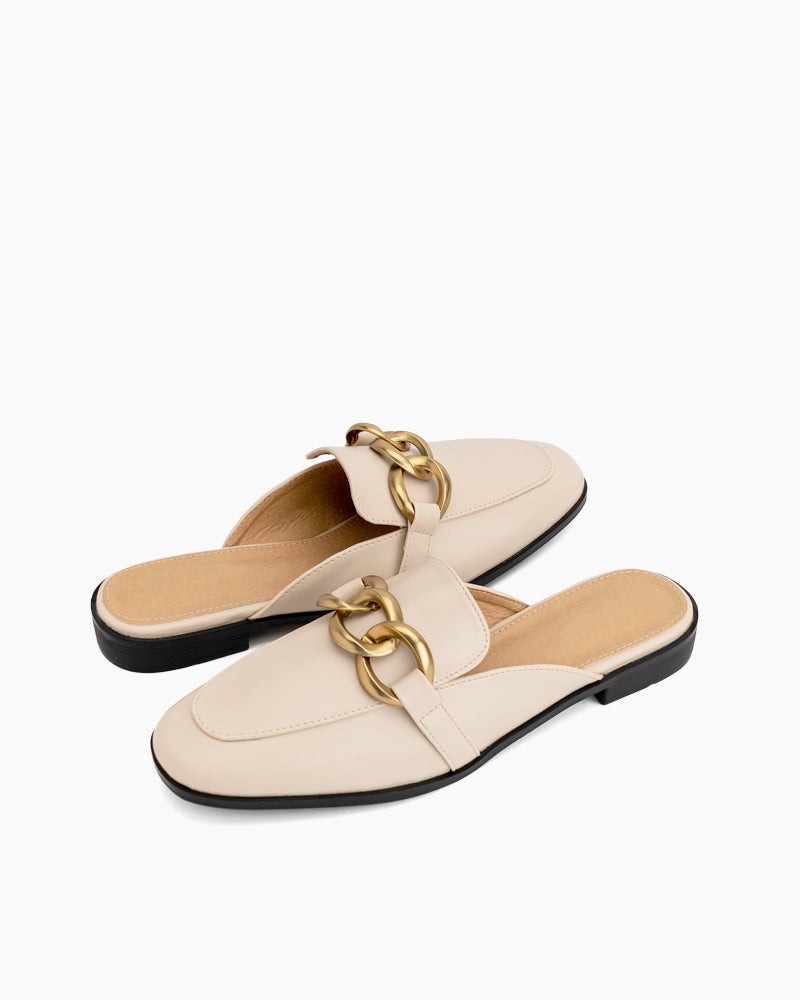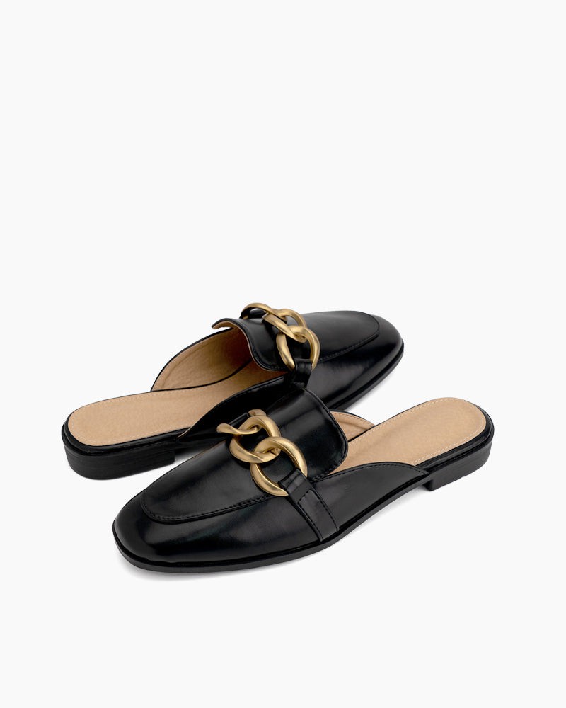 Metal Chain Decor Backless Flat Mules