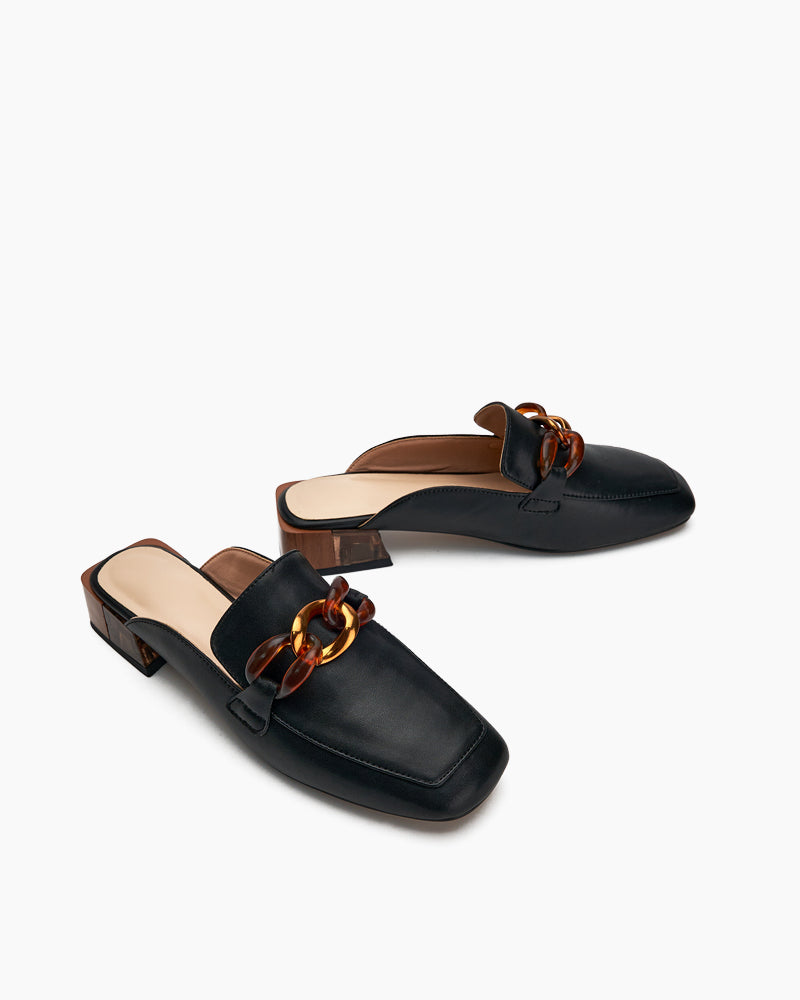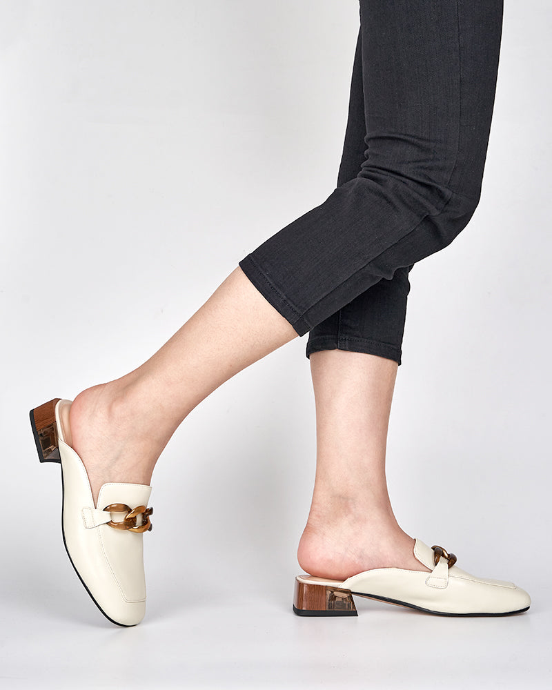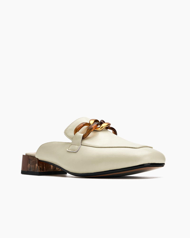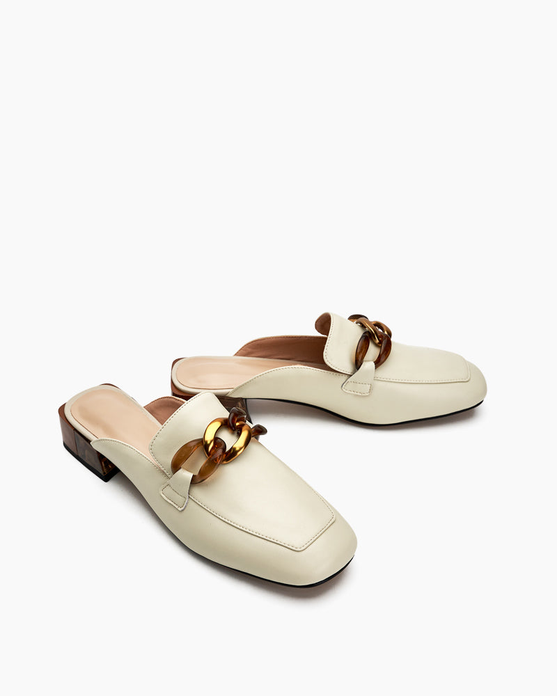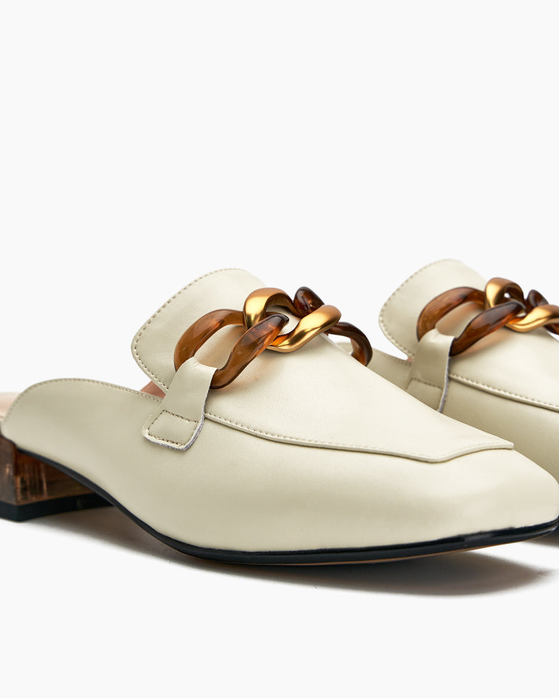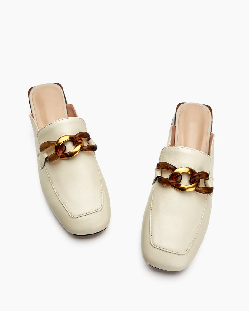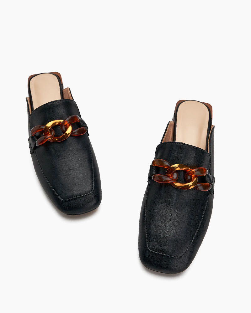 Metal Chain Decor Flat Backless Mules