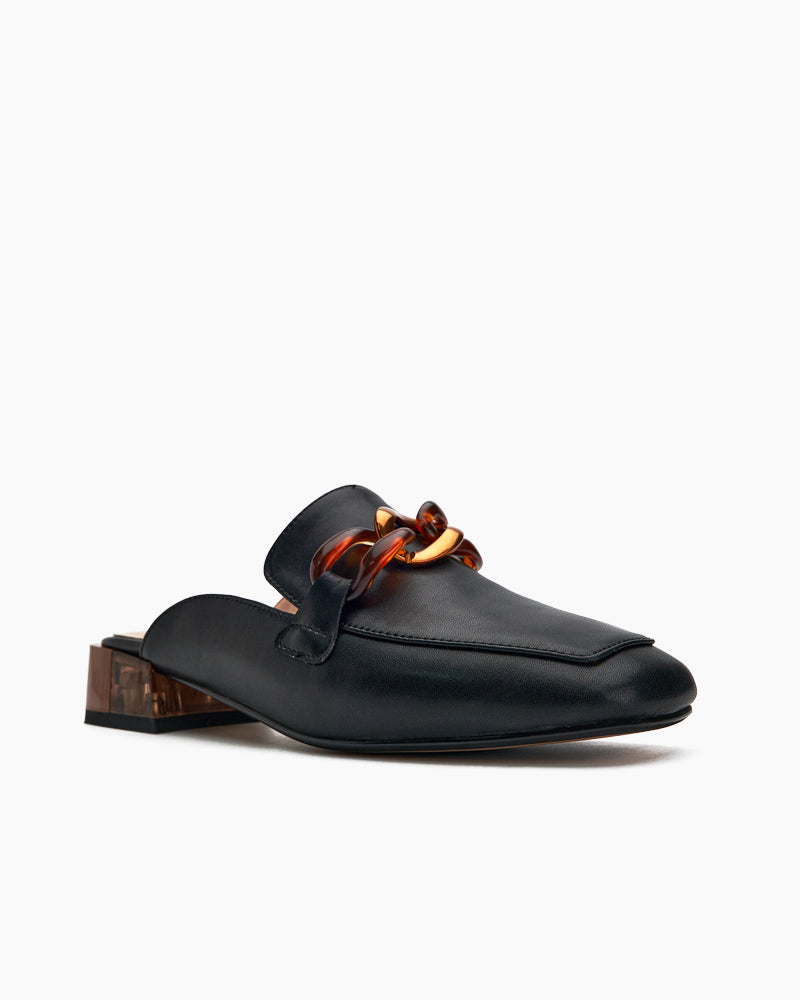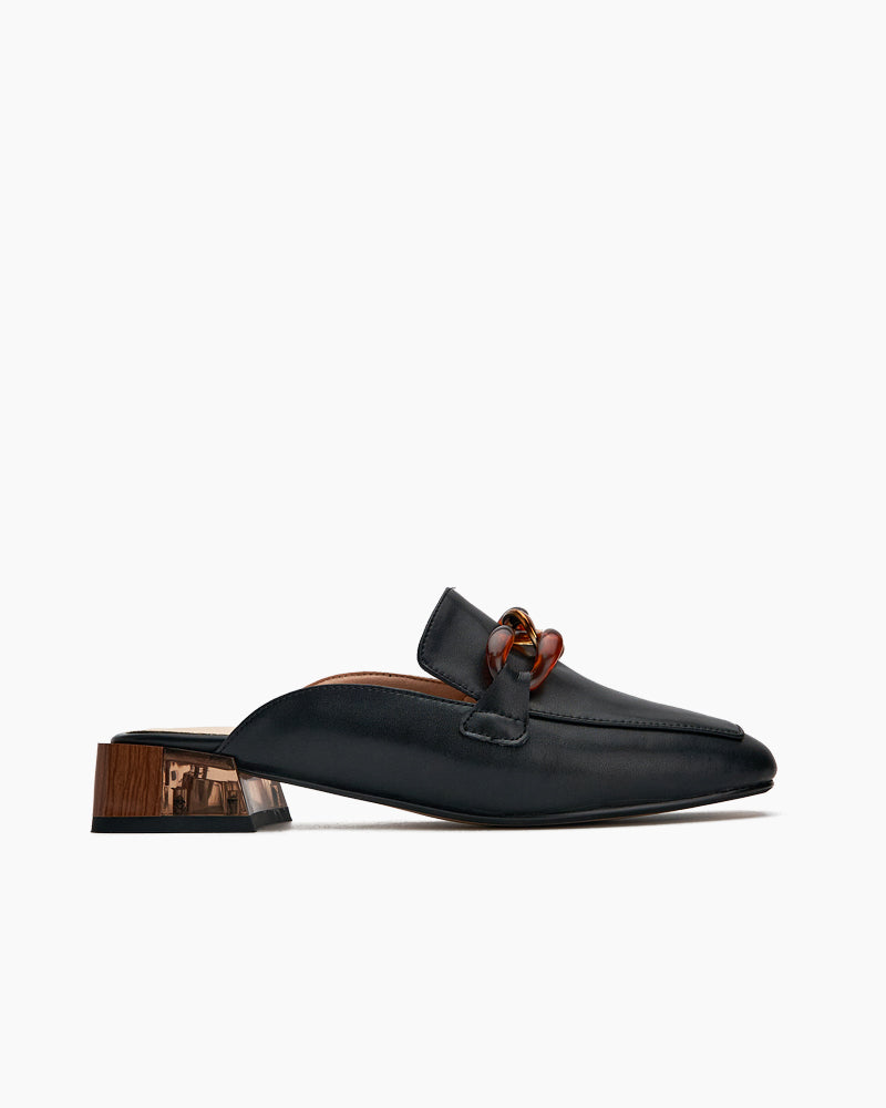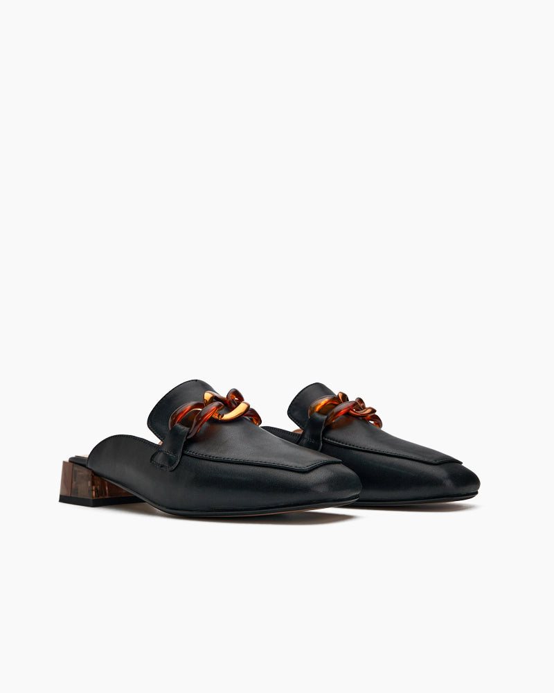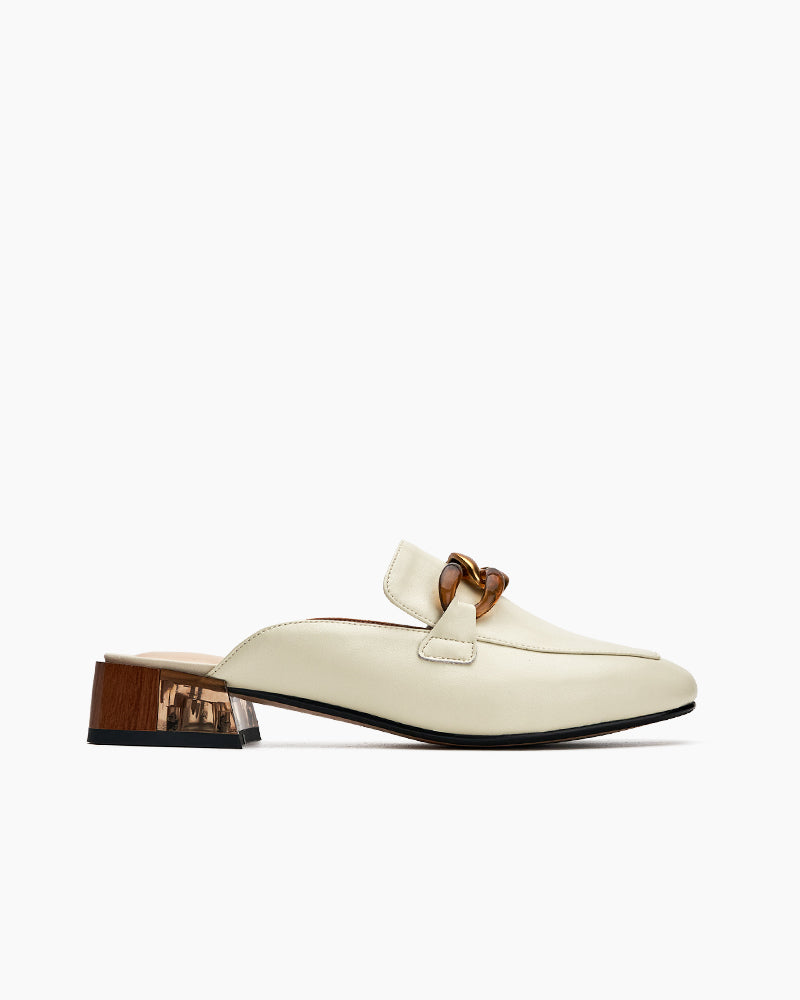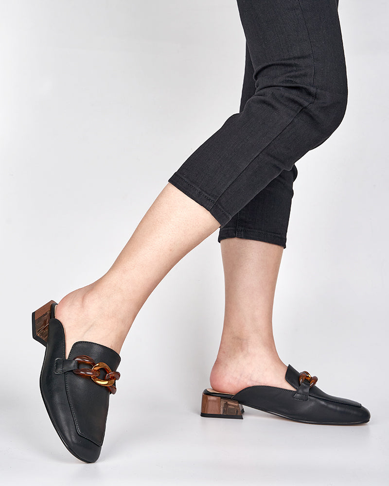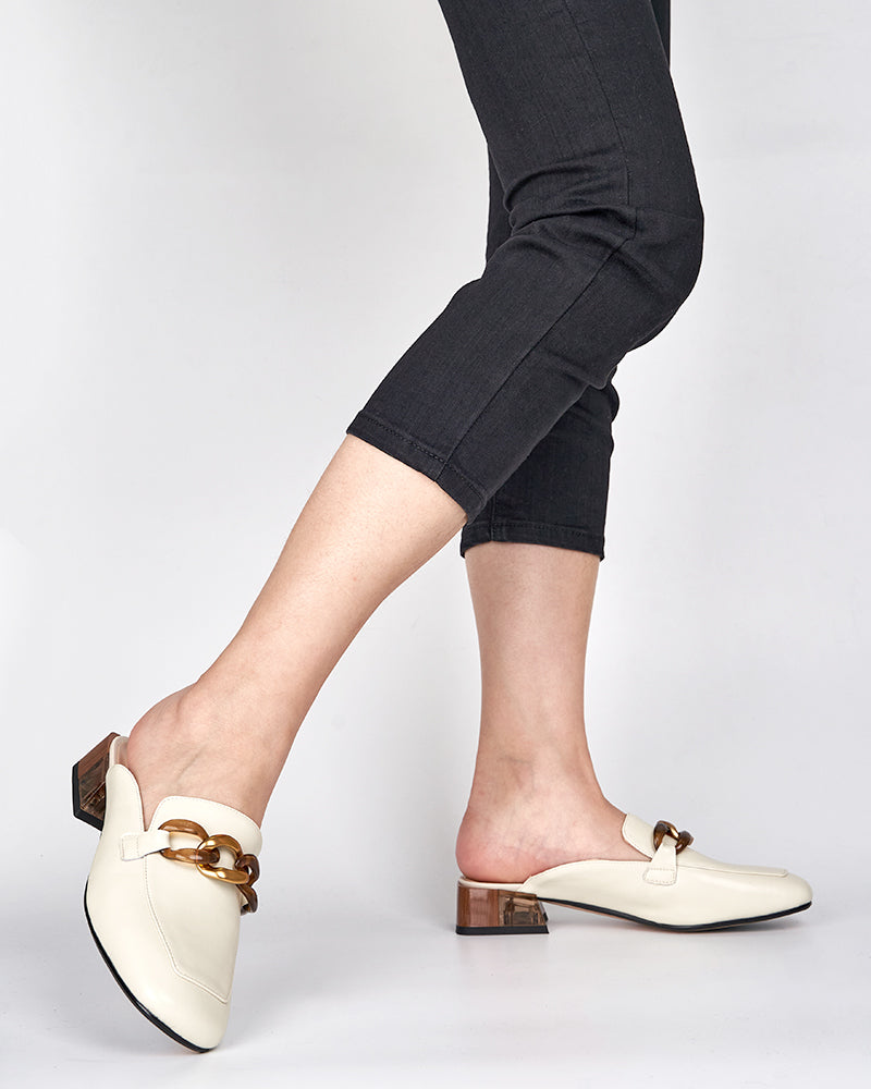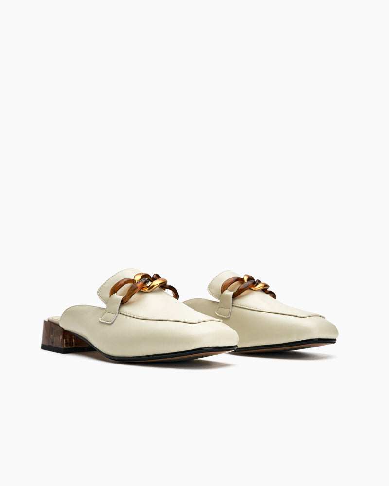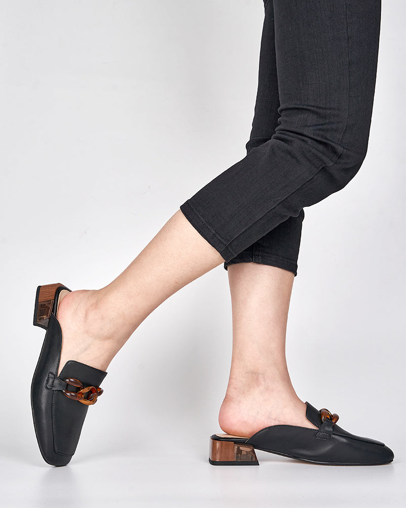 Metal Chain Decor Flat Backless Mules