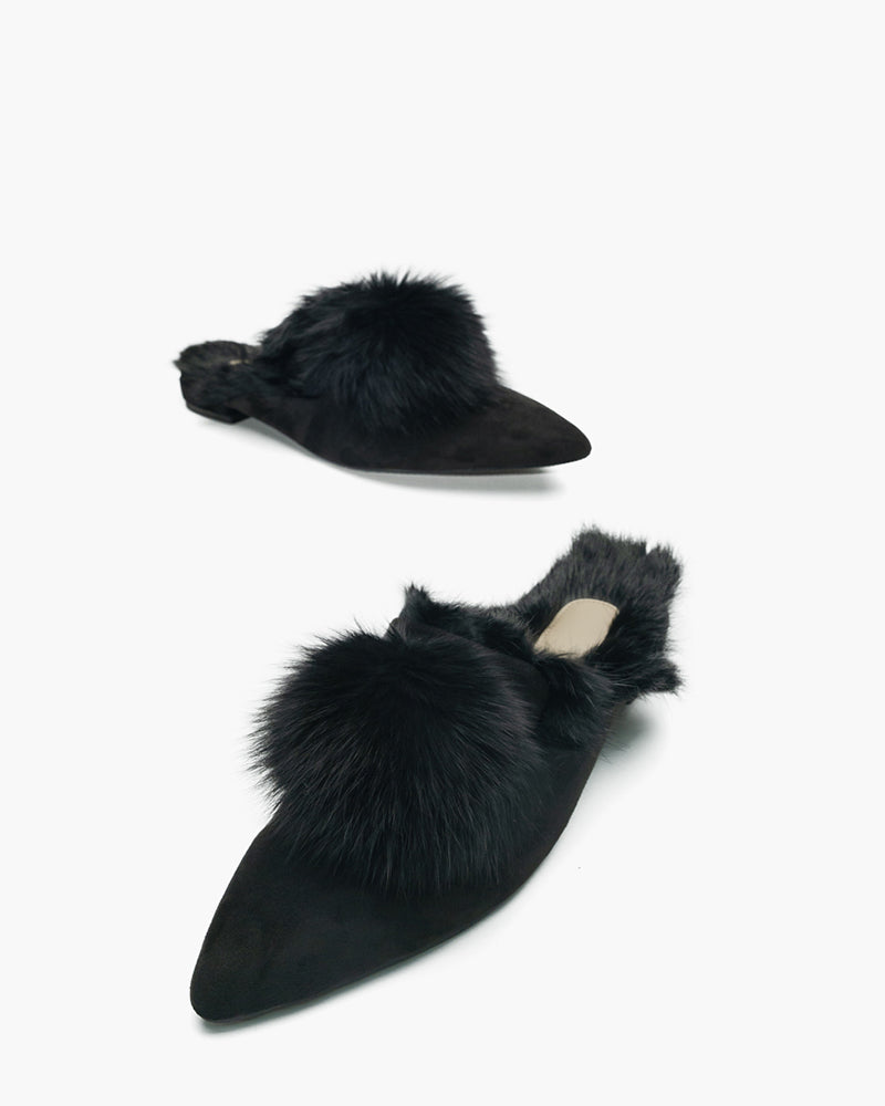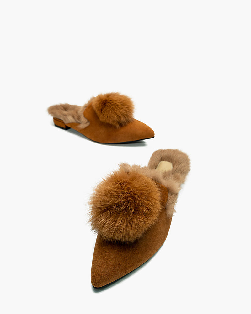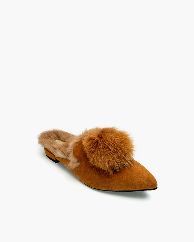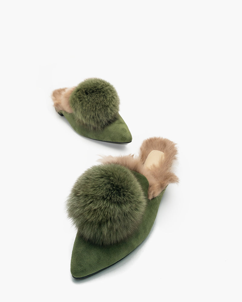 Pointed Toe Backless Pompom Slippers Mules