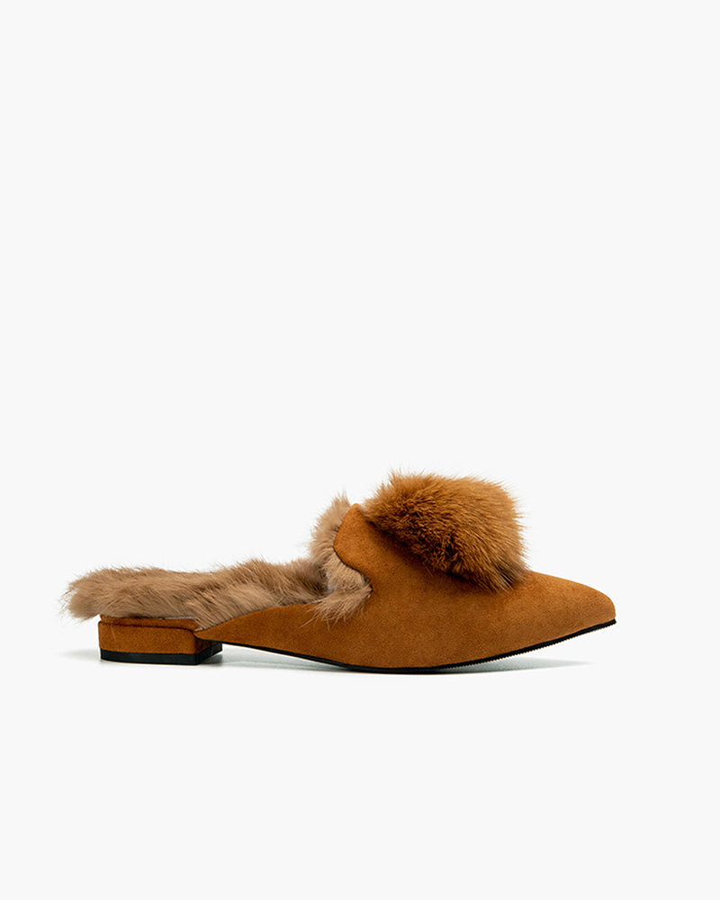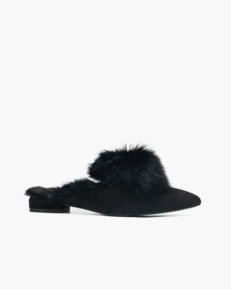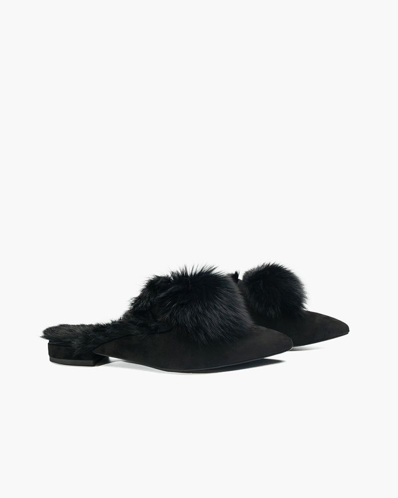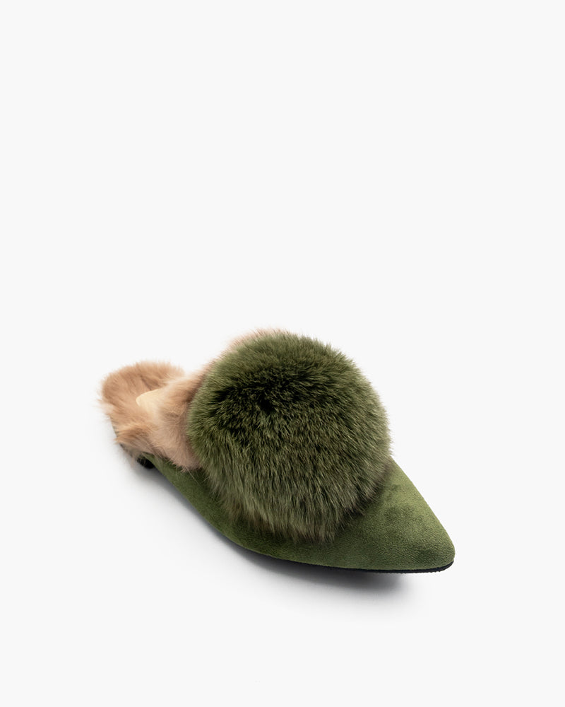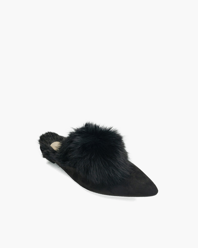 Pointed Toe Backless Pompom Slippers Mules