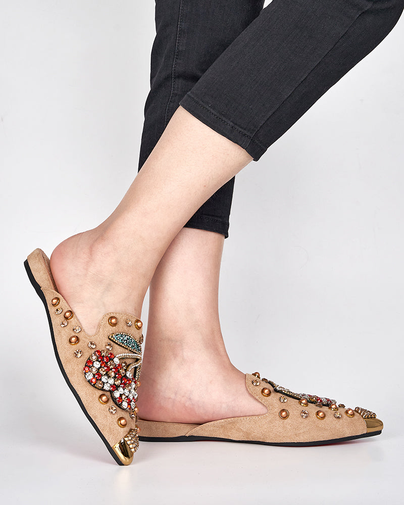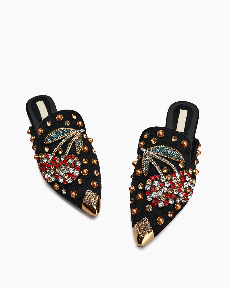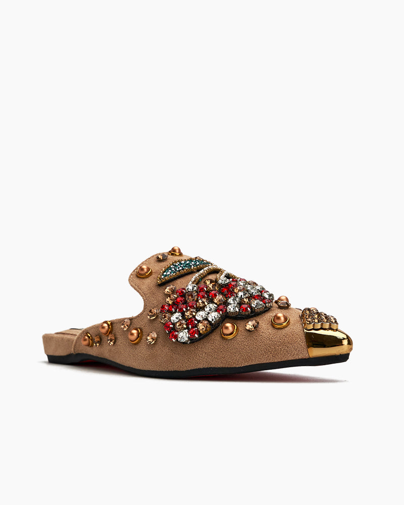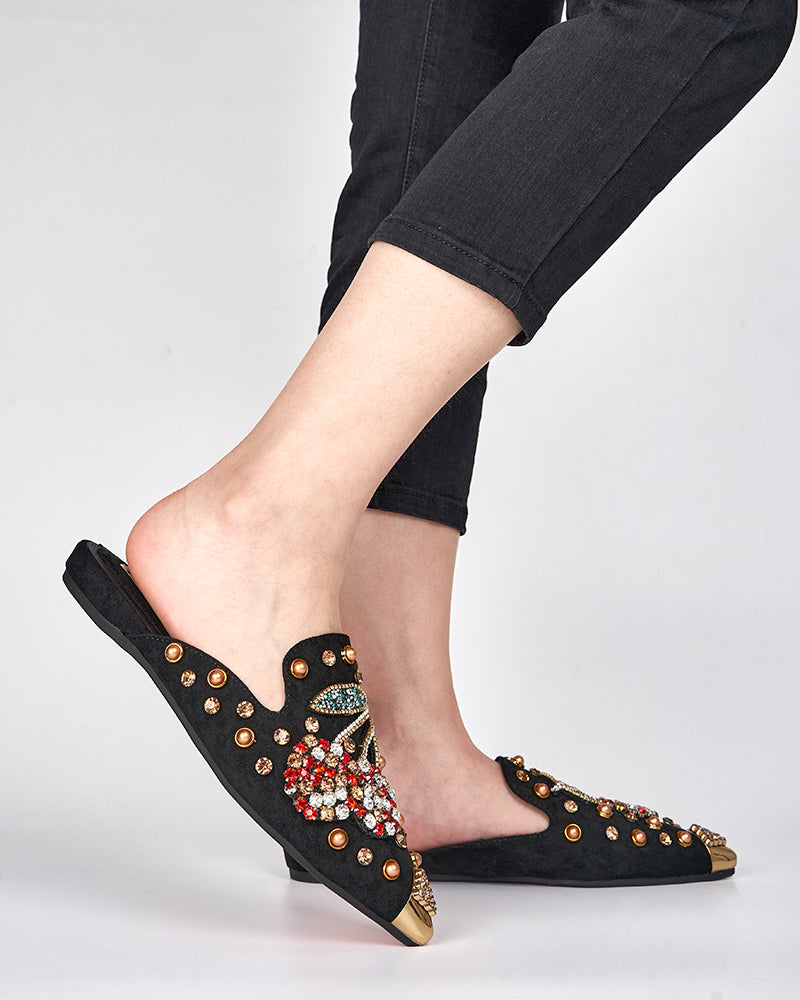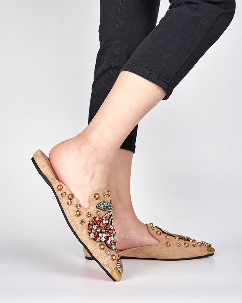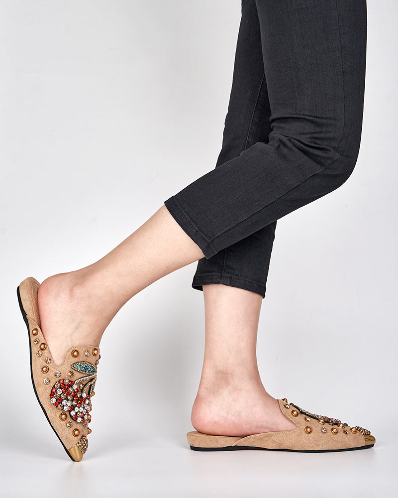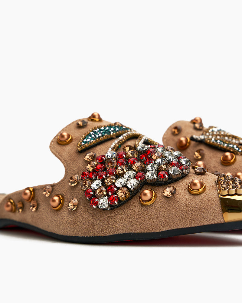 Pointed Toe Rhinestone Suede Slip-on Mules