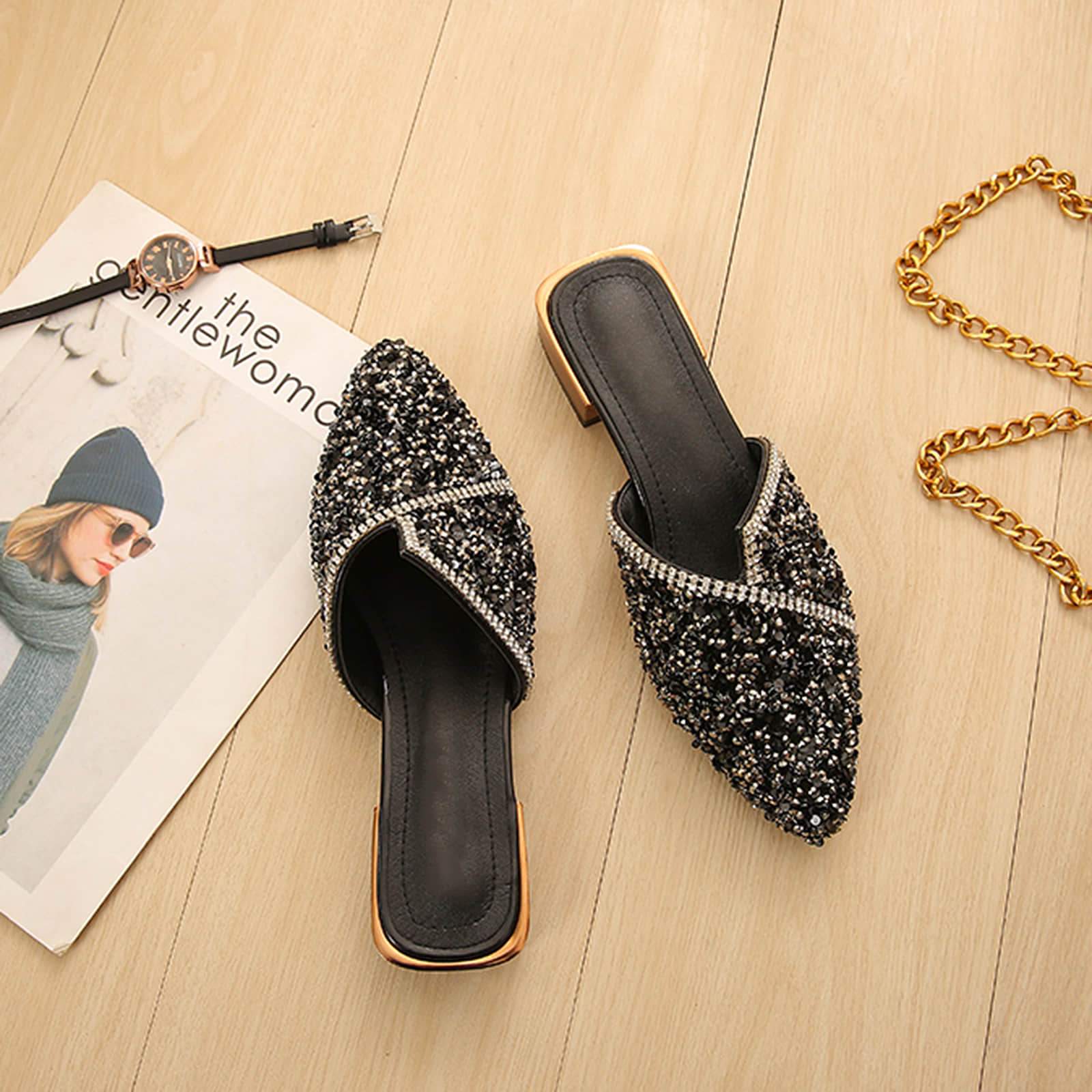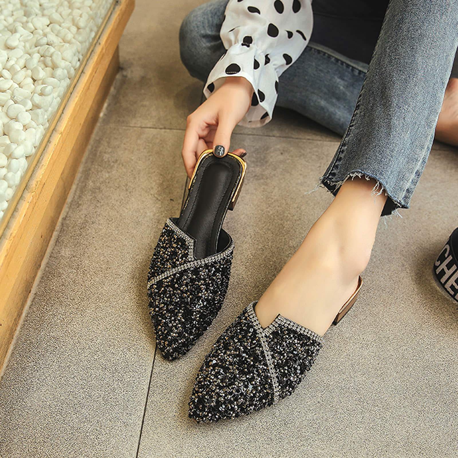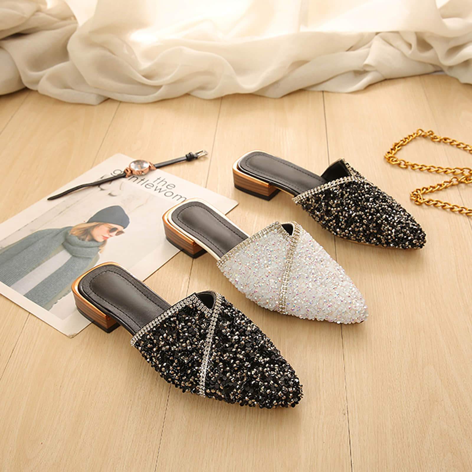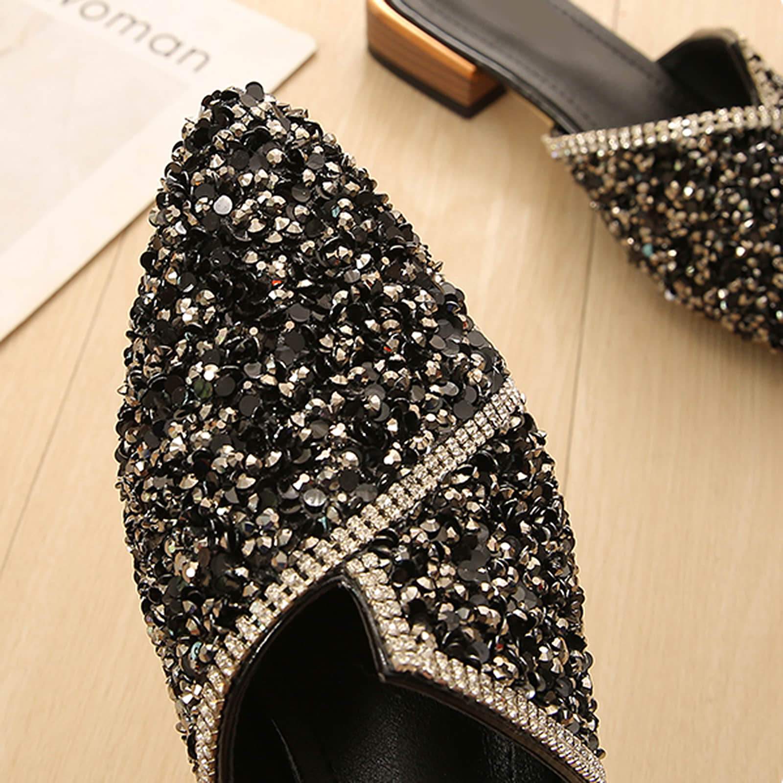 Pointed Toe Sequins Rhinestones Flat Mules