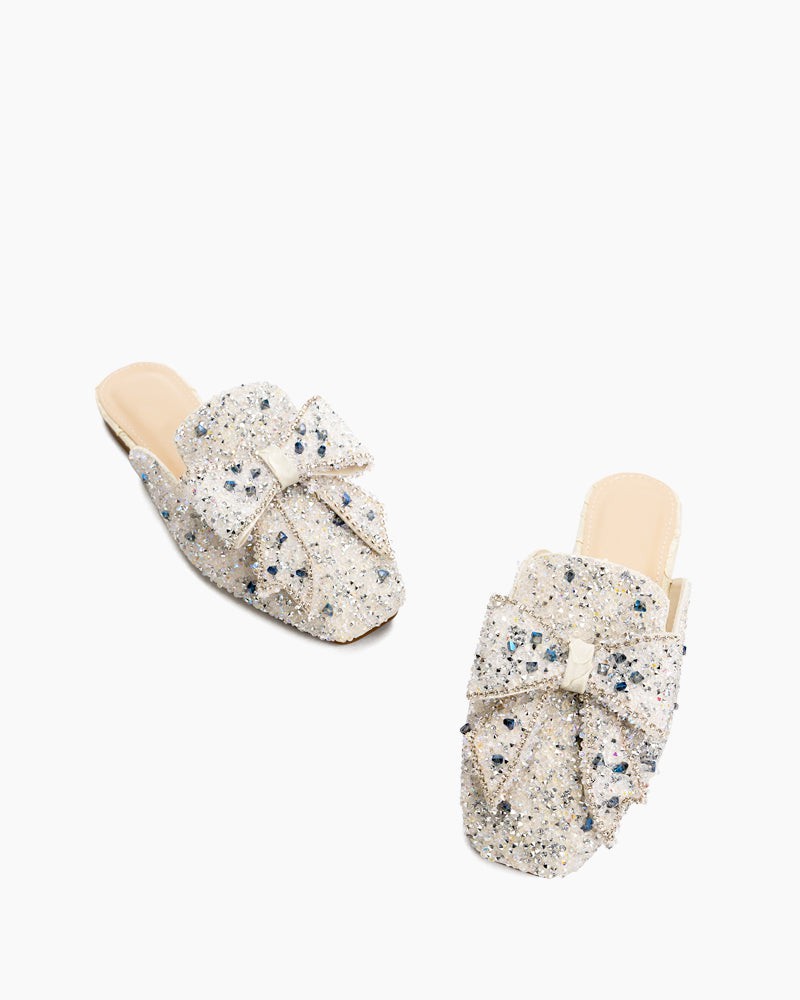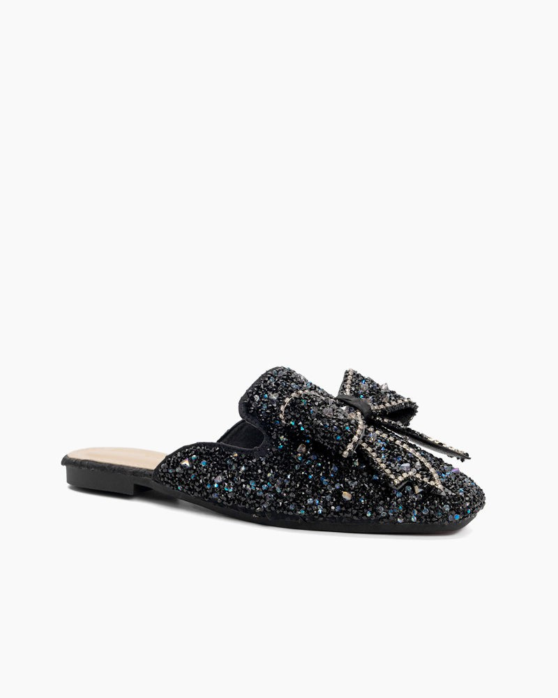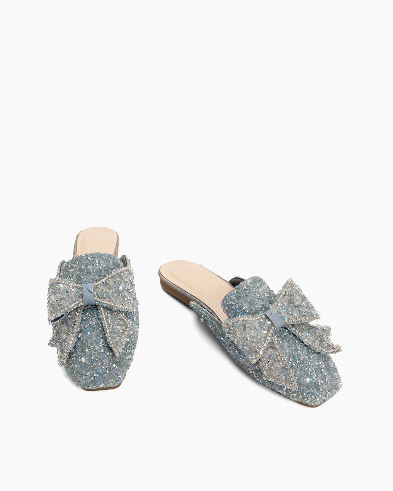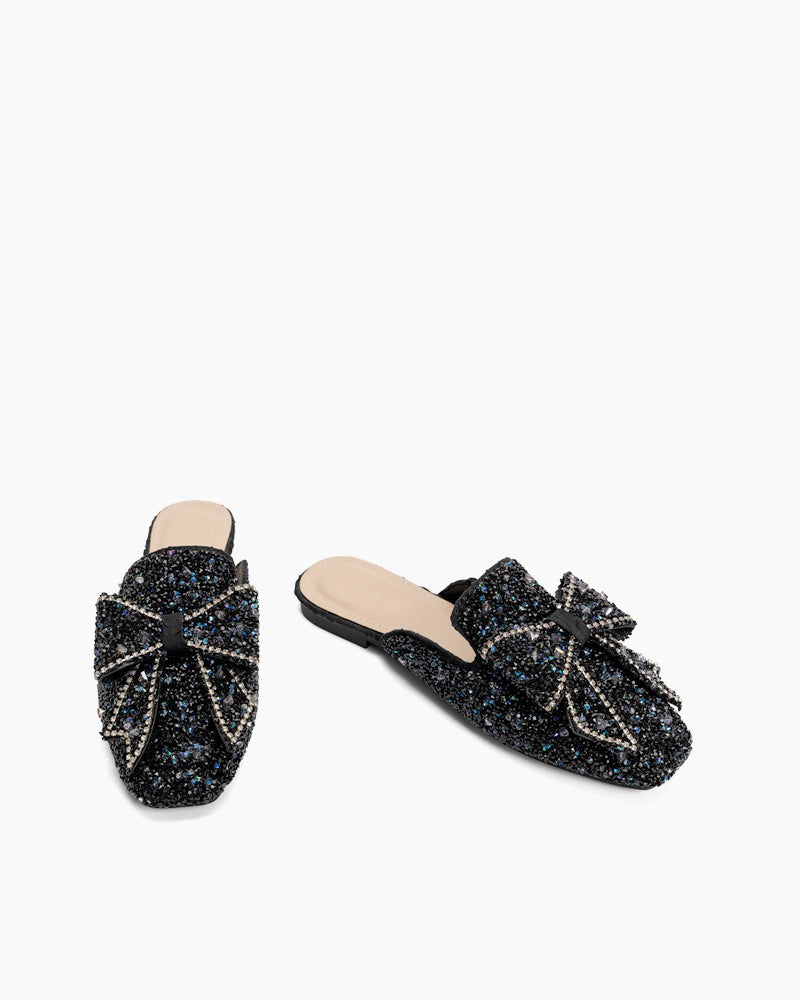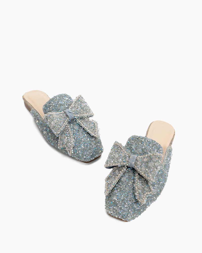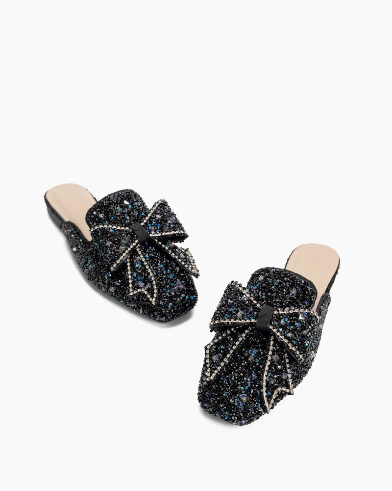 Sequins Bowknot Rhinestone Slip On Backless Mules
