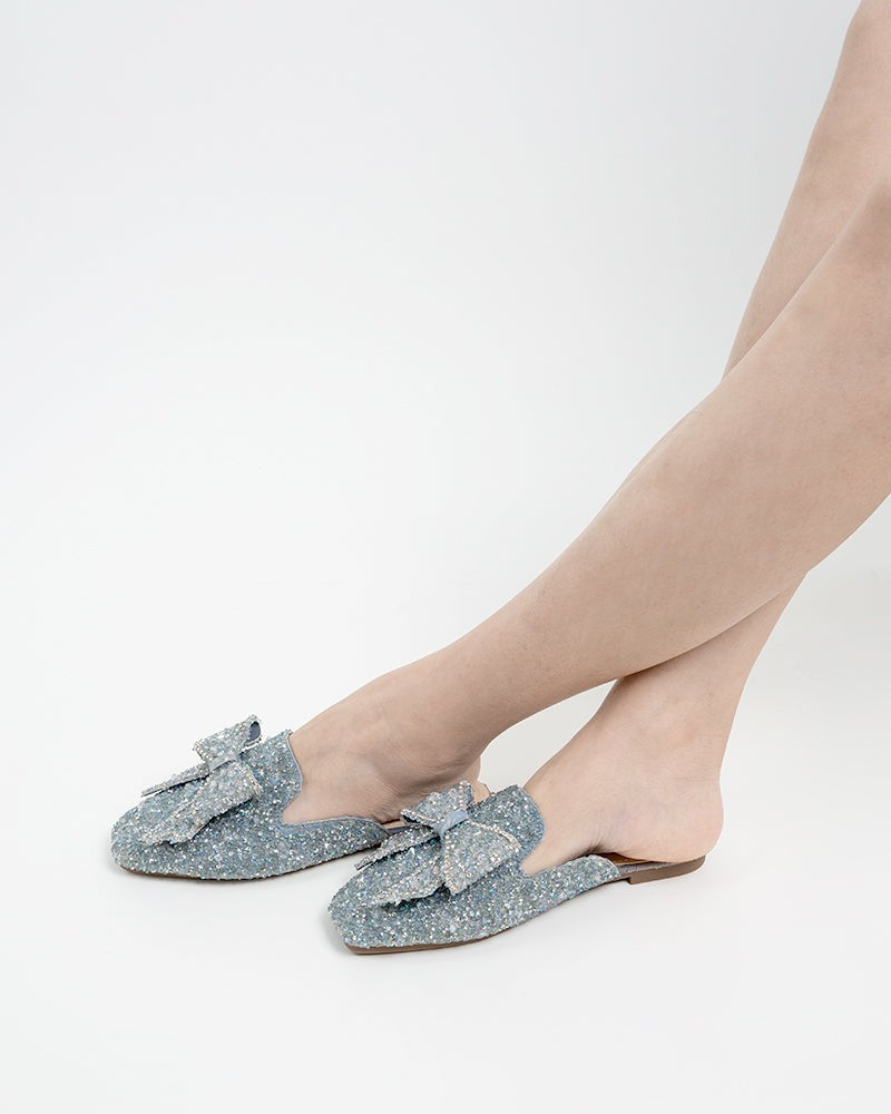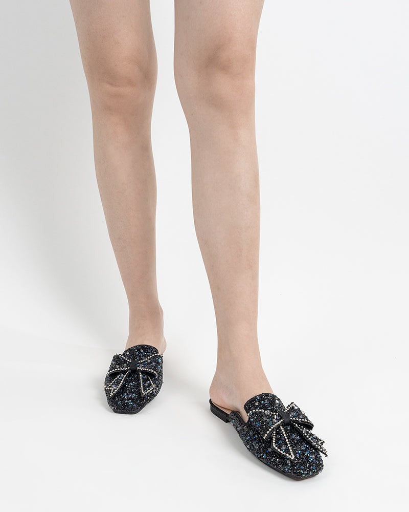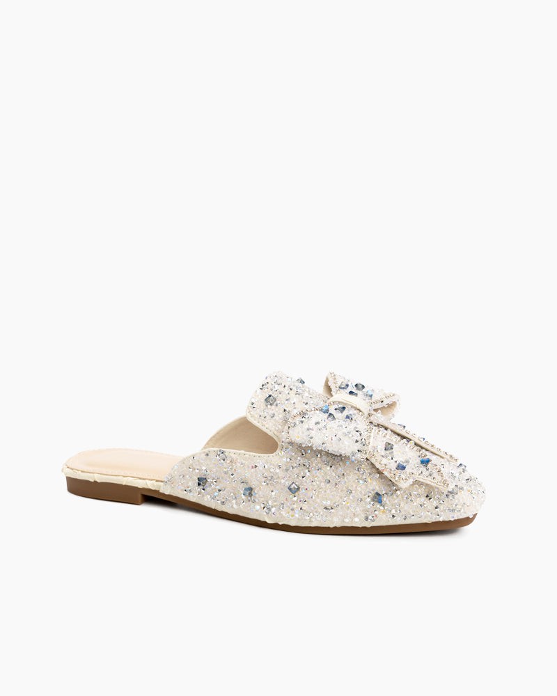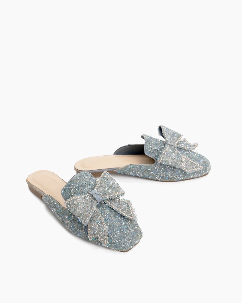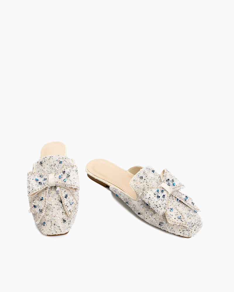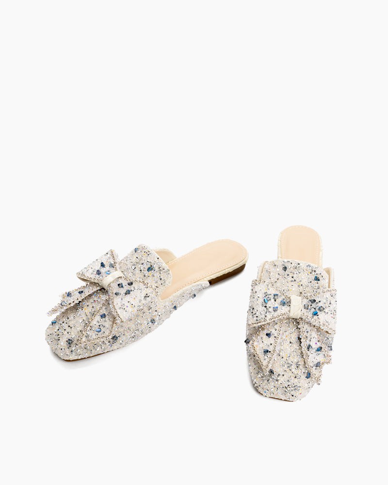 Sequins Bowknot Rhinestone Slip On Backless Mules