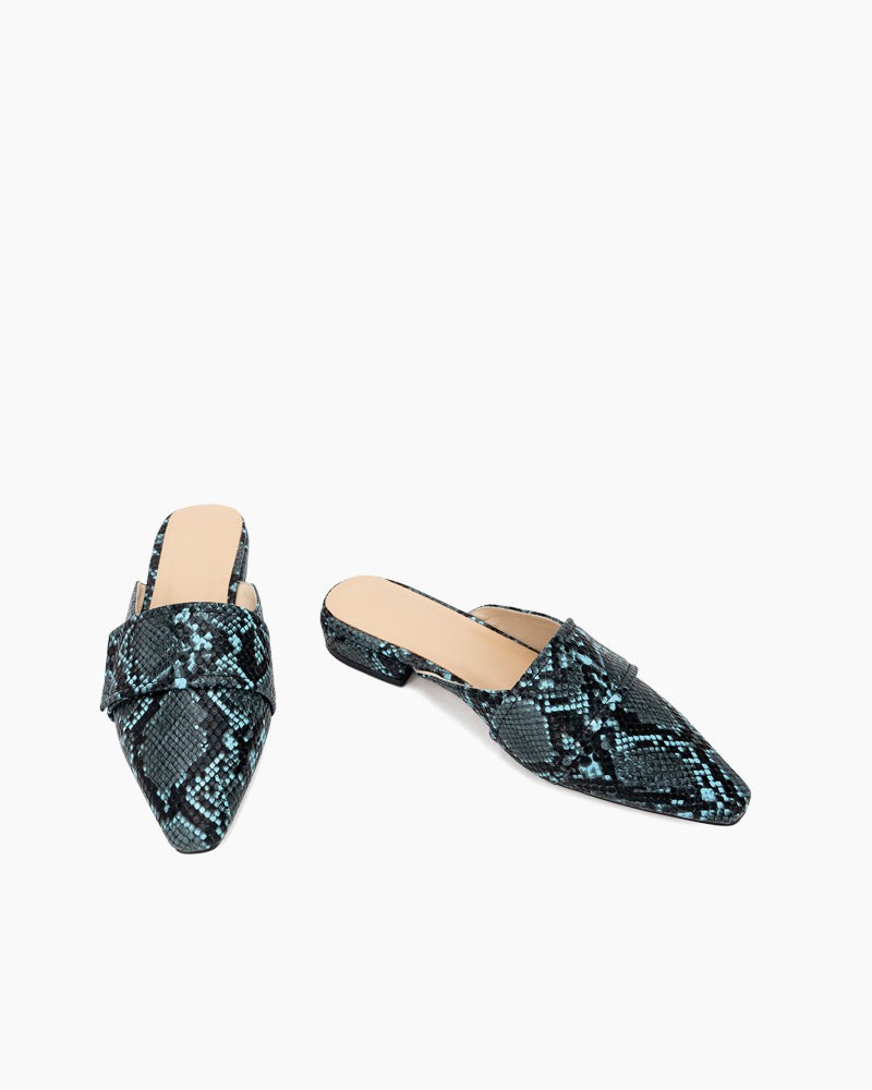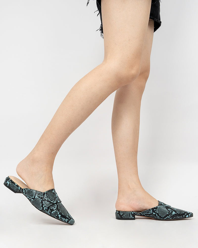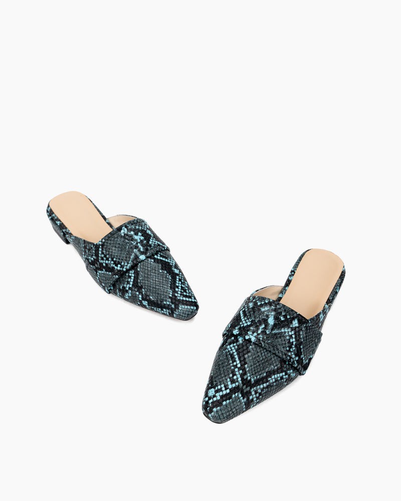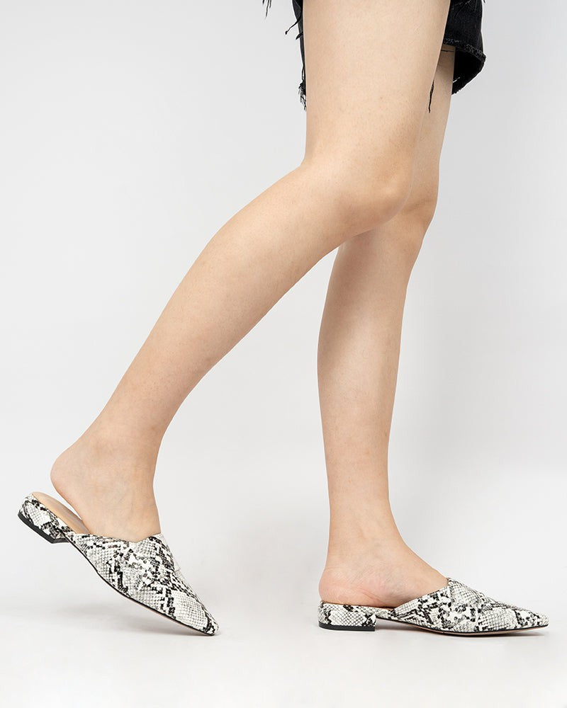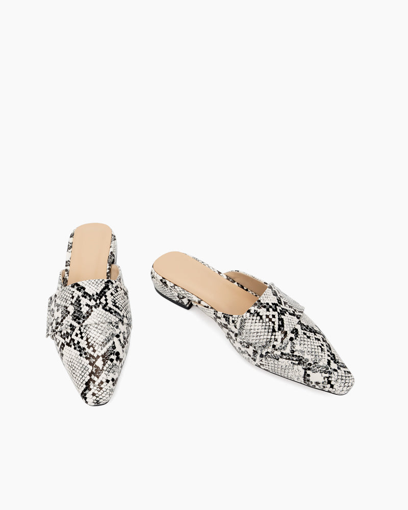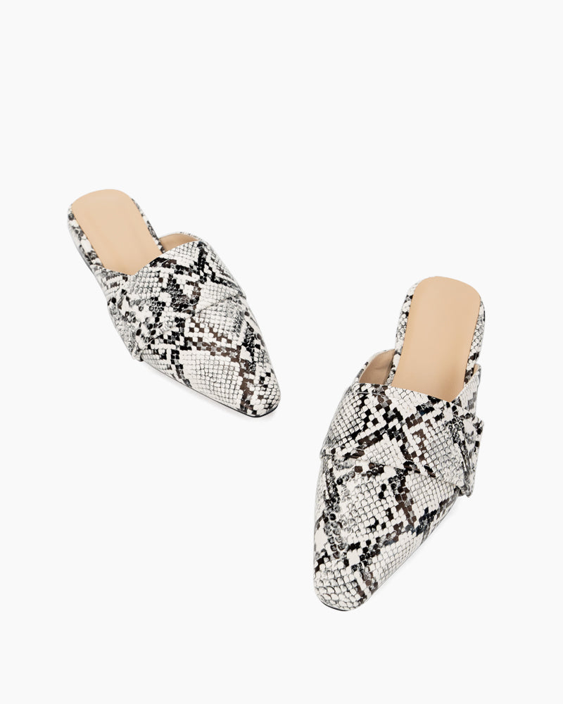 Snake Printed Pattern Pointed Toe Slippers Mules