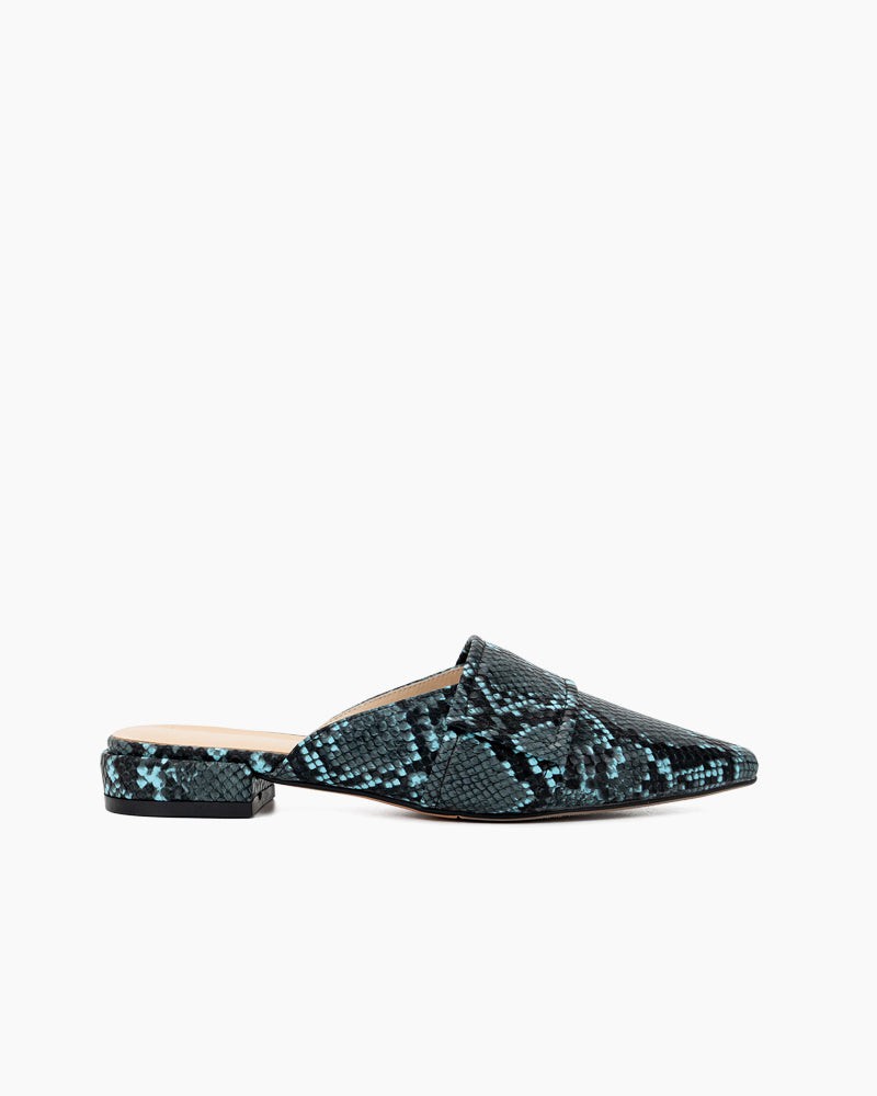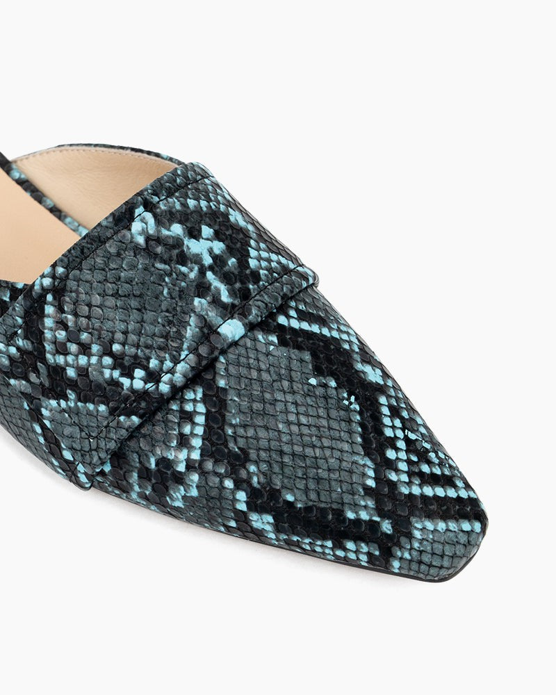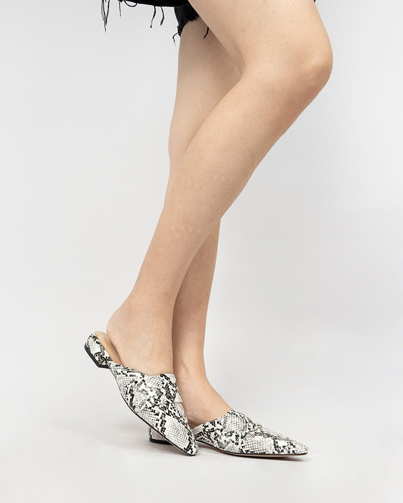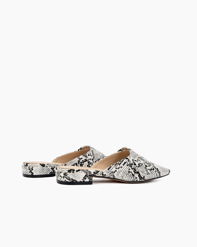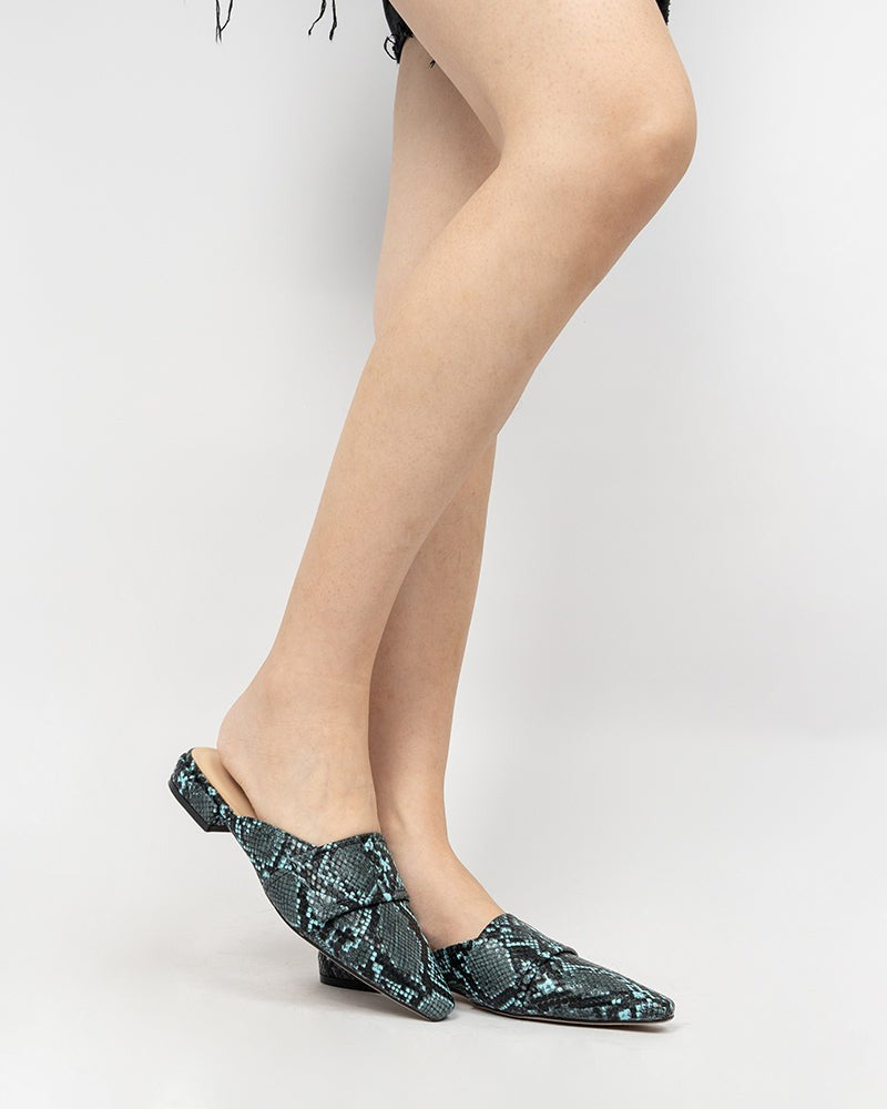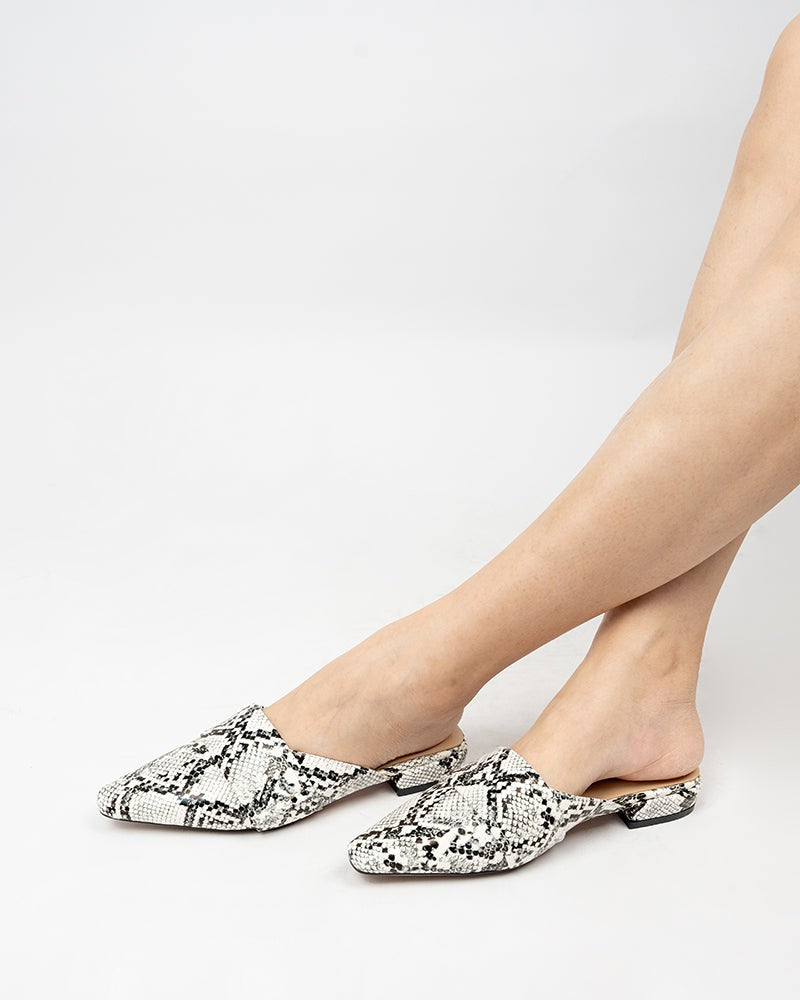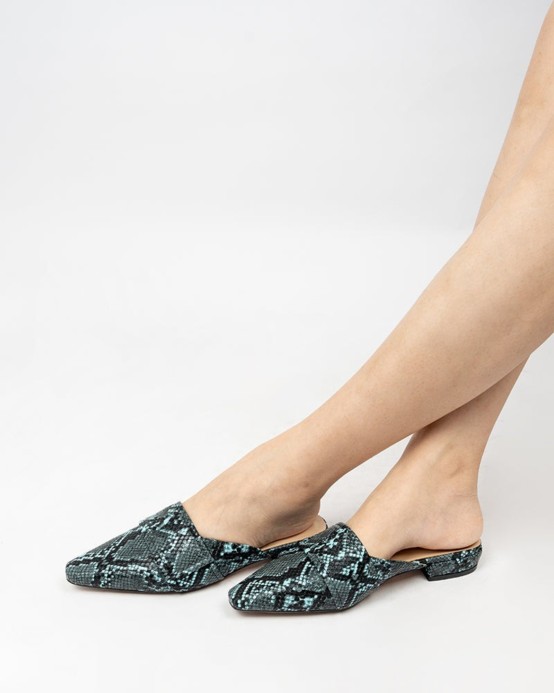 Snake Printed Pattern Pointed Toe Slippers Mules