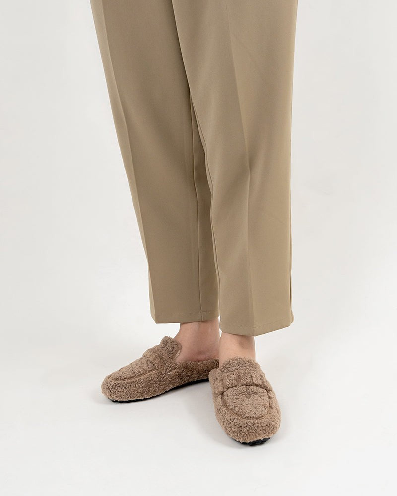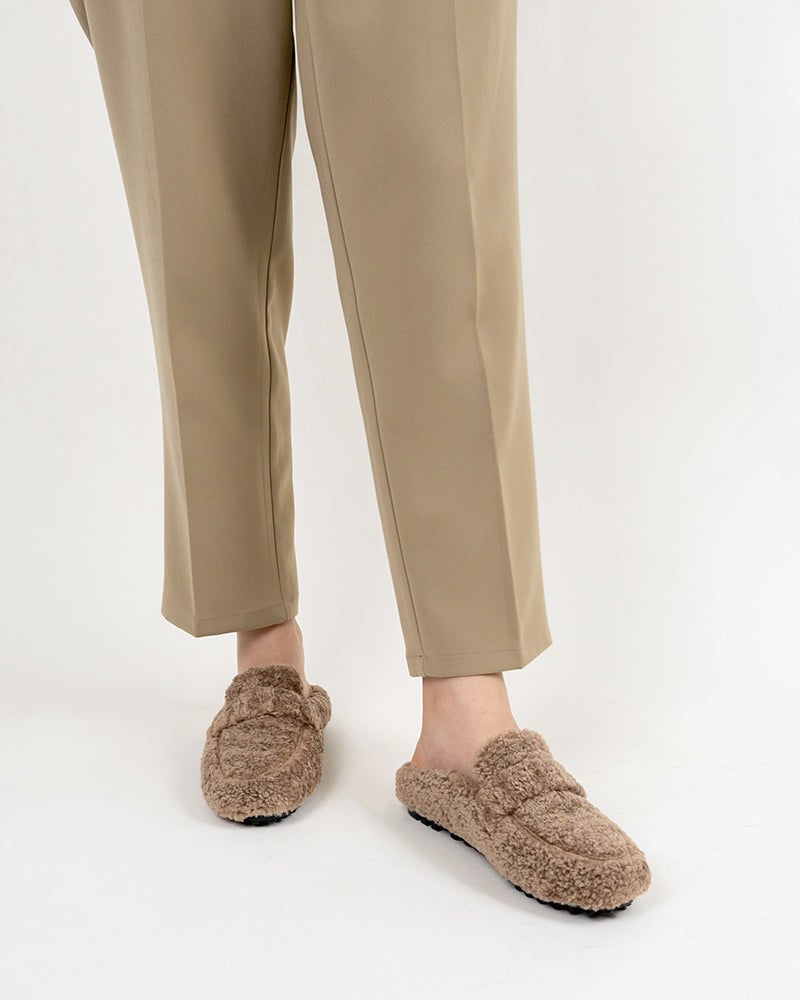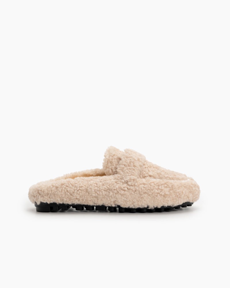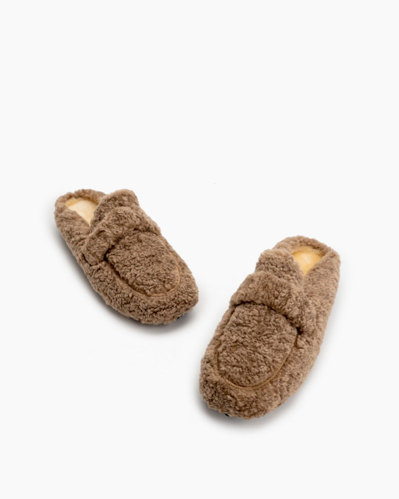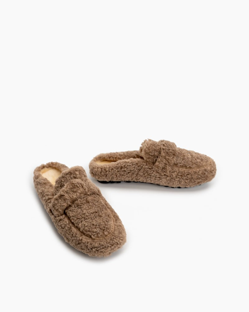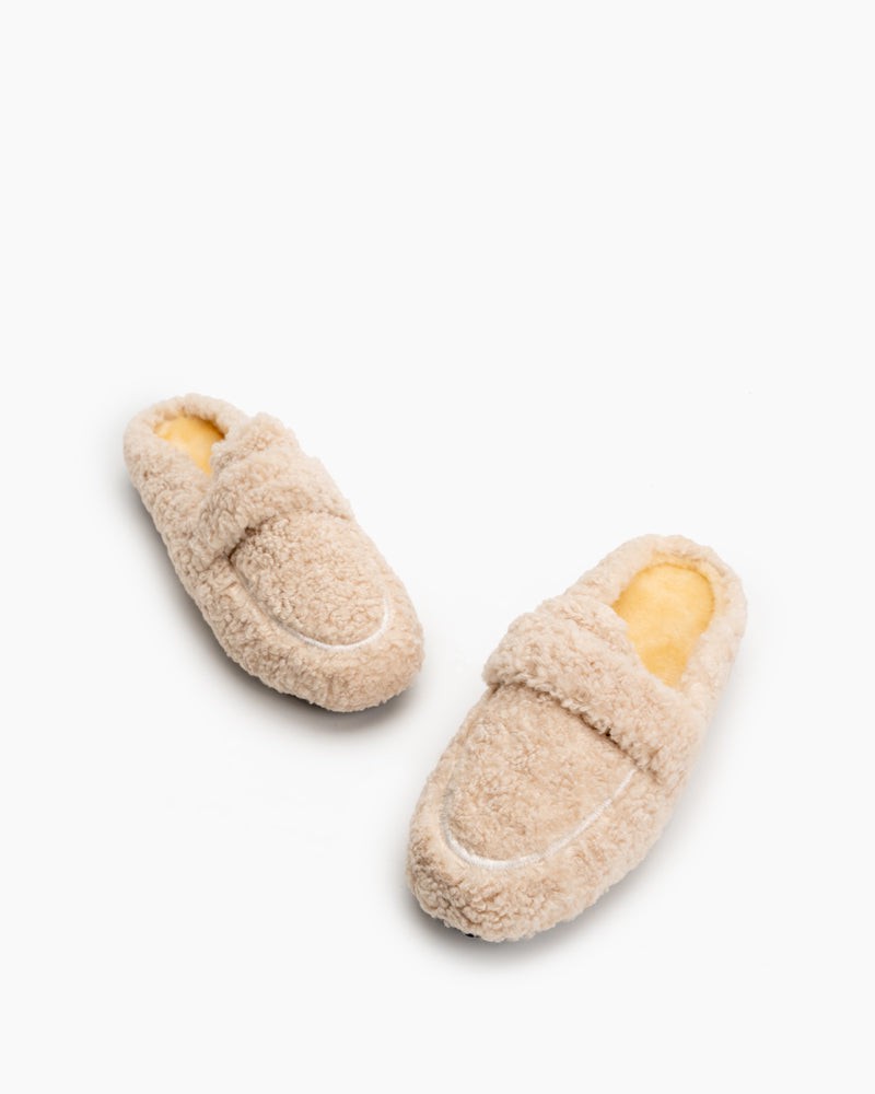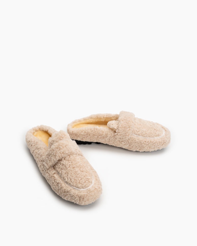 Solid Color Lambswool Warm Comfy Flat Mules