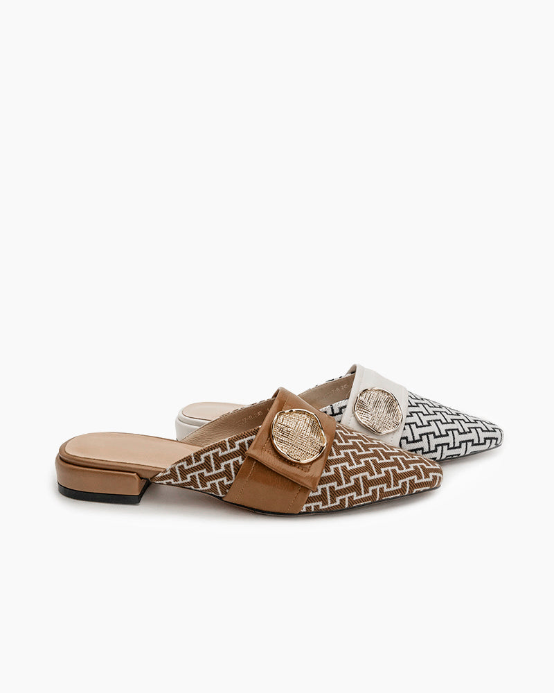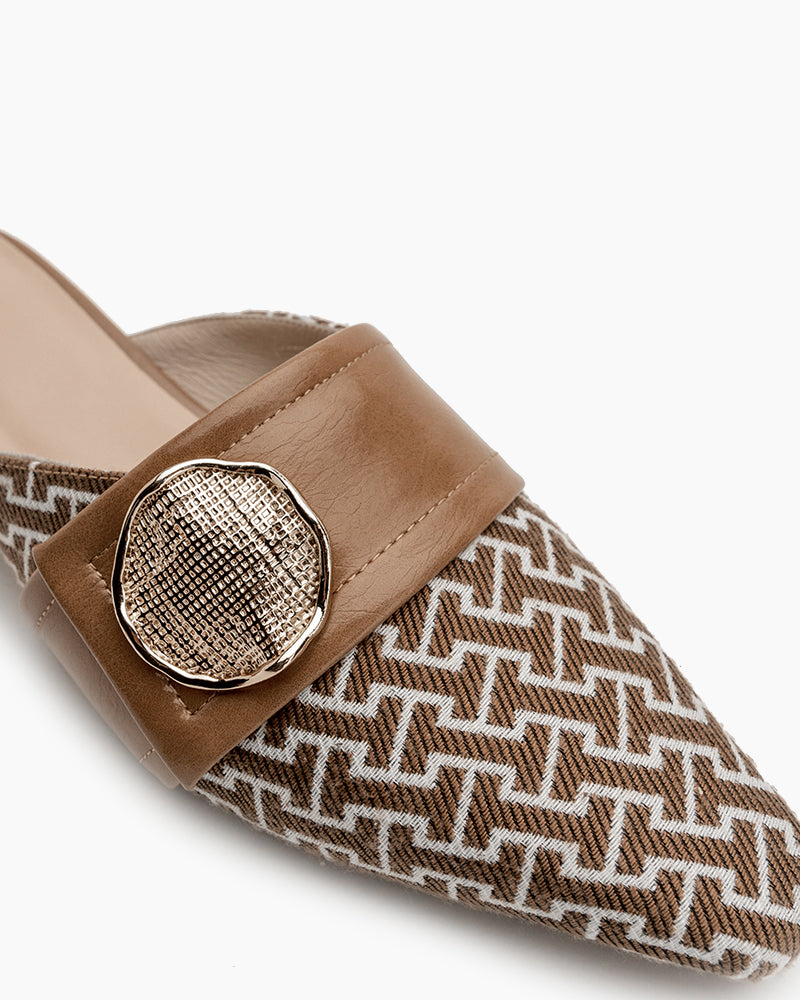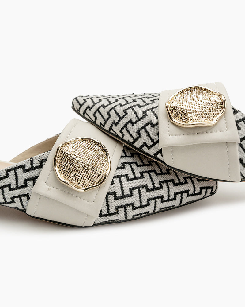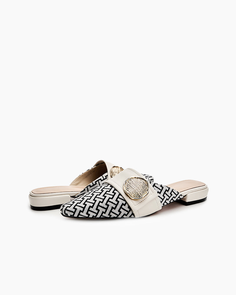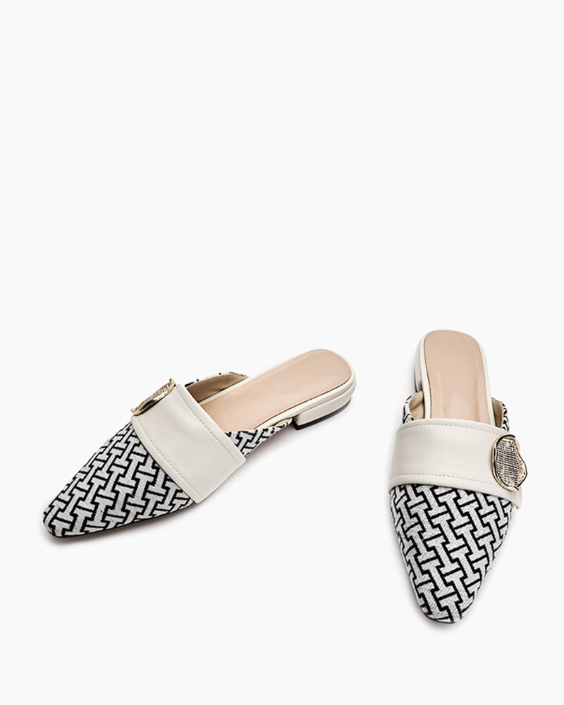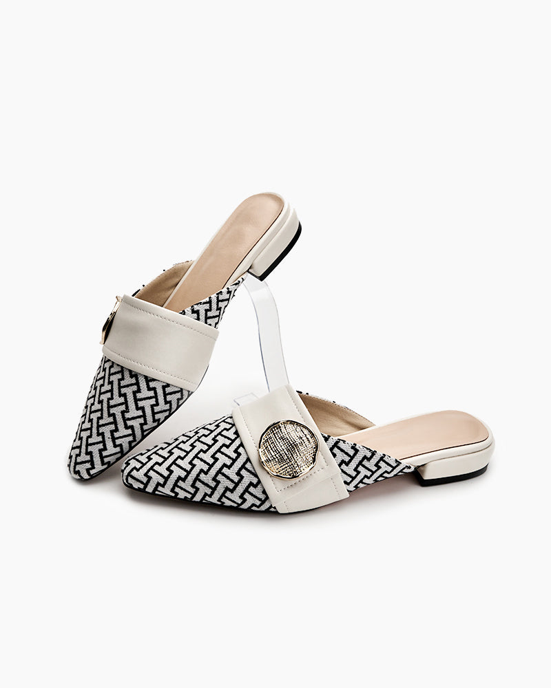 Unique Round Metal Decor Houndstooth Pattern Mules