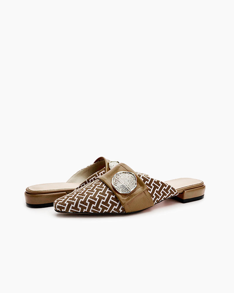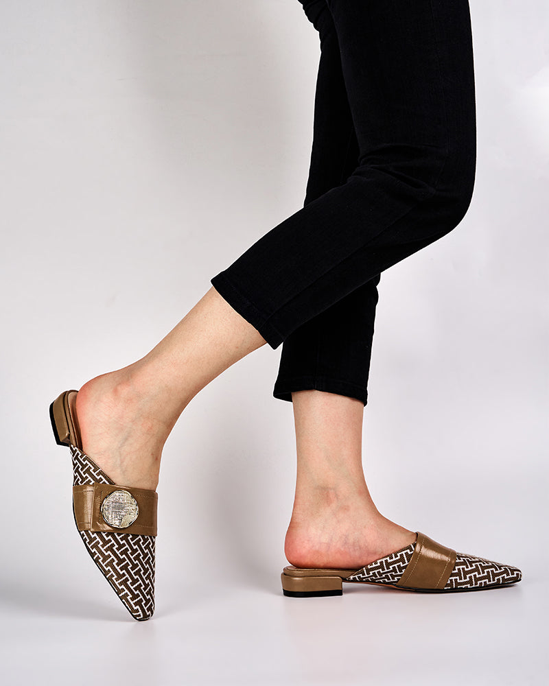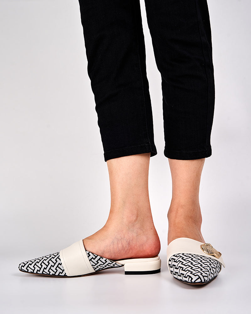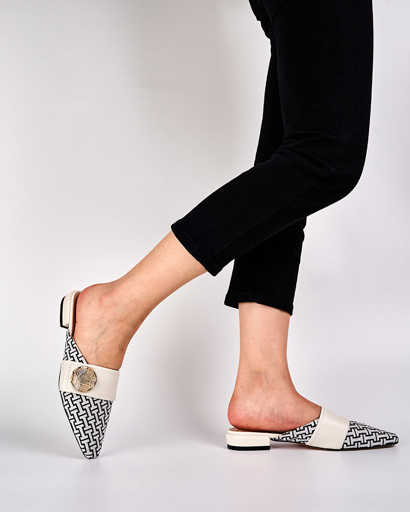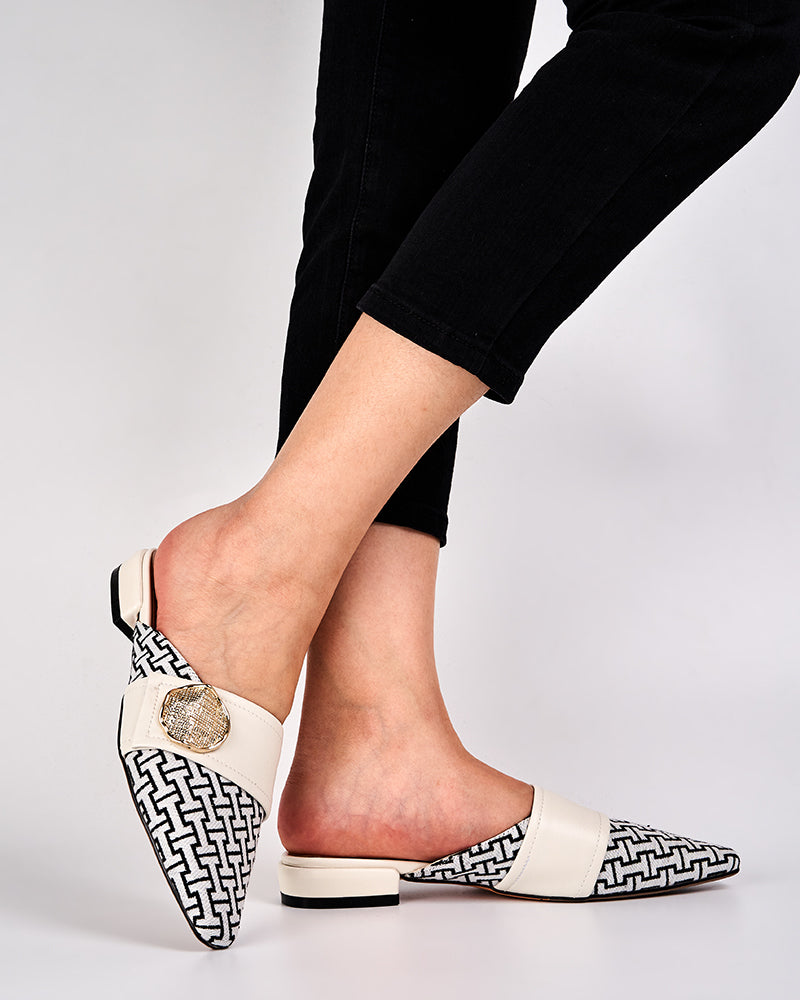 Unique Round Metal Decor Houndstooth Pattern Mules